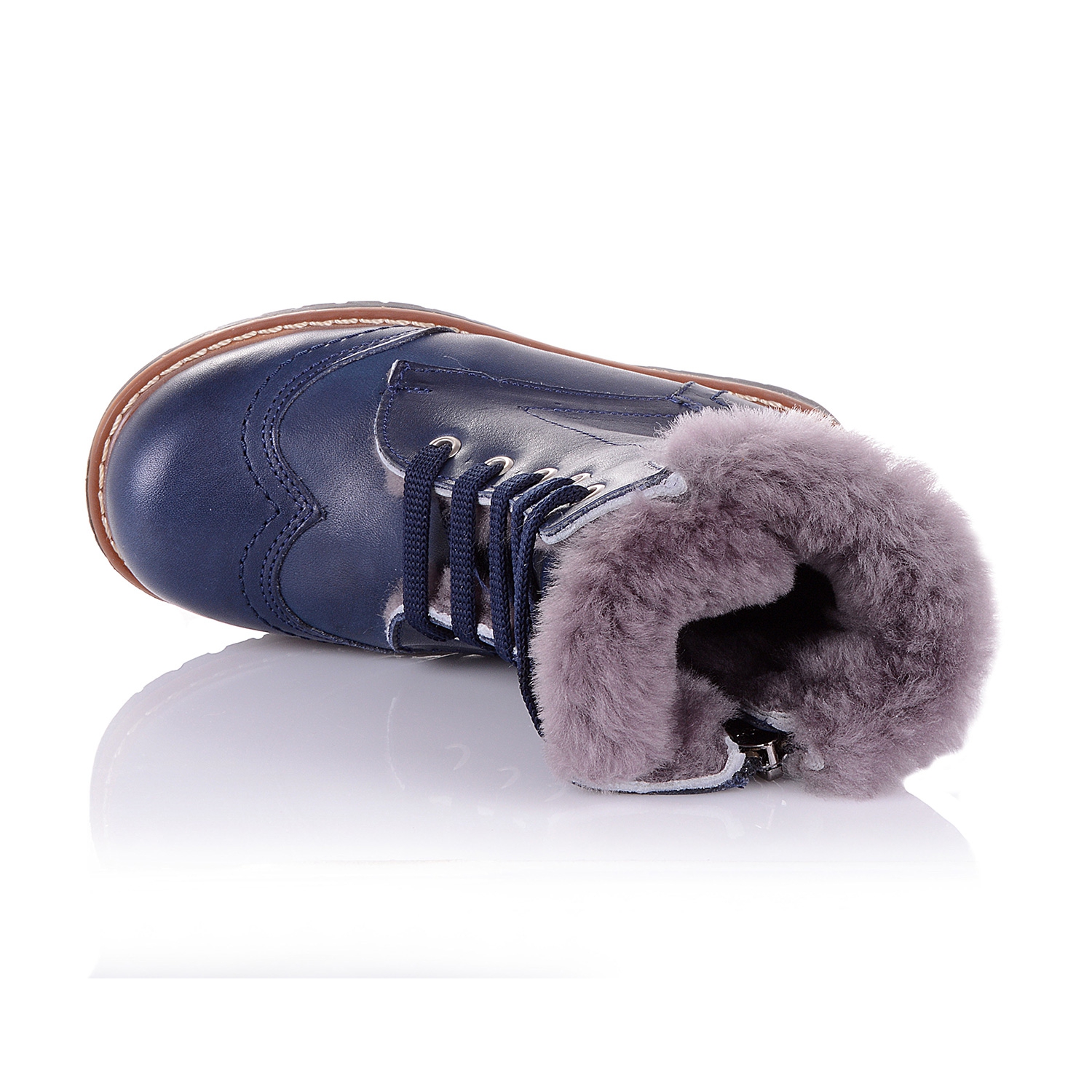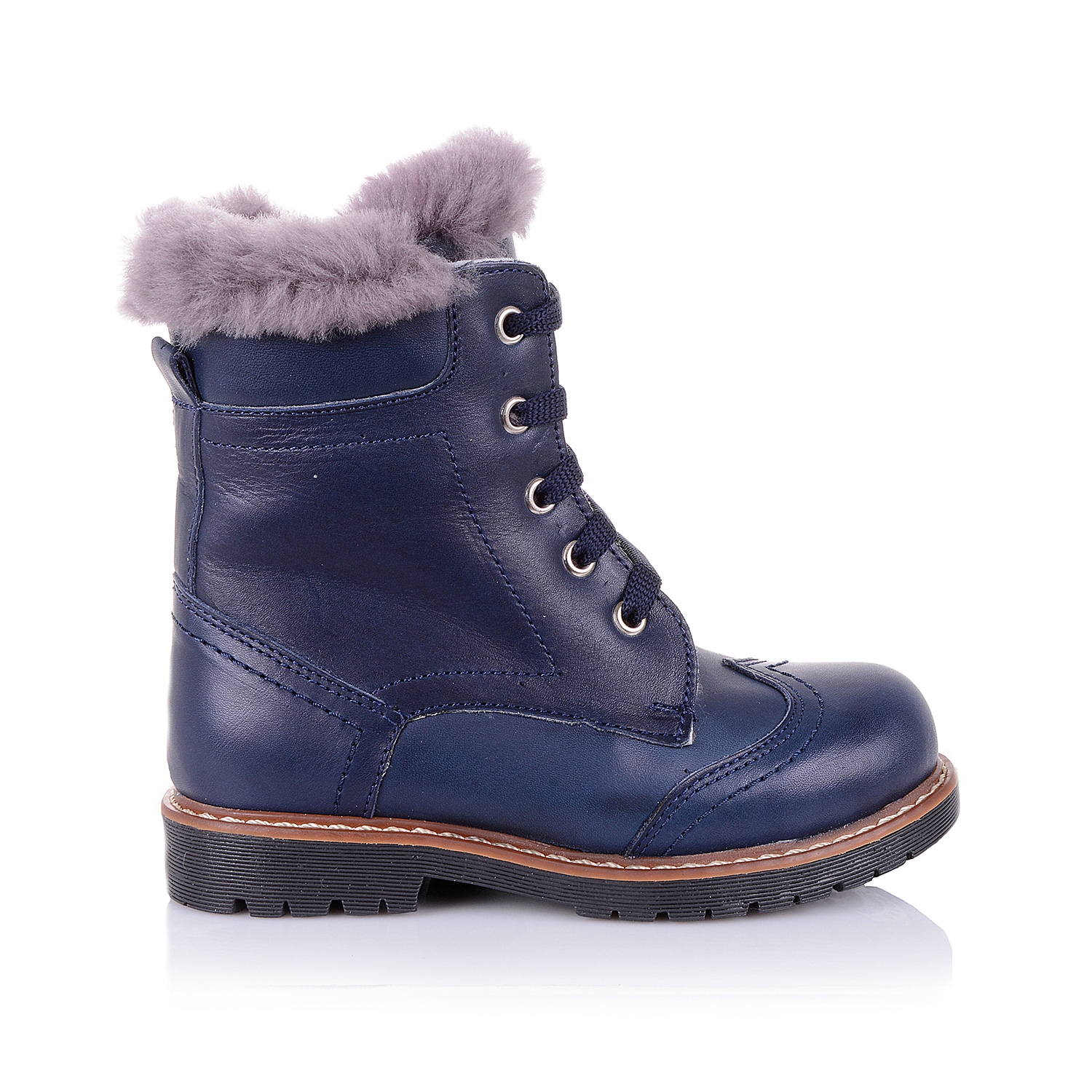 Практичные и аккуратные ортопедические ботинки сезон зима. Снаружи ботинки выполнены из натуральной кожи (имеет водоотталкивающее свойство) синего цвета. Высокий широкий язычок защищает от попадания снега и влаги. Надевать такие ботинки - секундное дело, ведь помимо шнурков в них есть ещё и молния сбоку. Каблук Томаса с удлиненным внутренним краем обеспечит правильную постановку ноги. Анатомическая стелька с супинатором поддержит свод стопы и поспособствует здоровому развитию мышц. О фиксации голенища и щиколотки позаботятся укрепленные берцы и жесткий задник. А хрупкие суставы будут защищены от чрезмерных нагрузок благодаря амортизации термопластичной тракторной подошвы. Эта пара подходит для профилактики плосковальгусной деформации стопы. В такой обуви класса премиум +, ребенок будет чувствовать себя эксклюзивно!