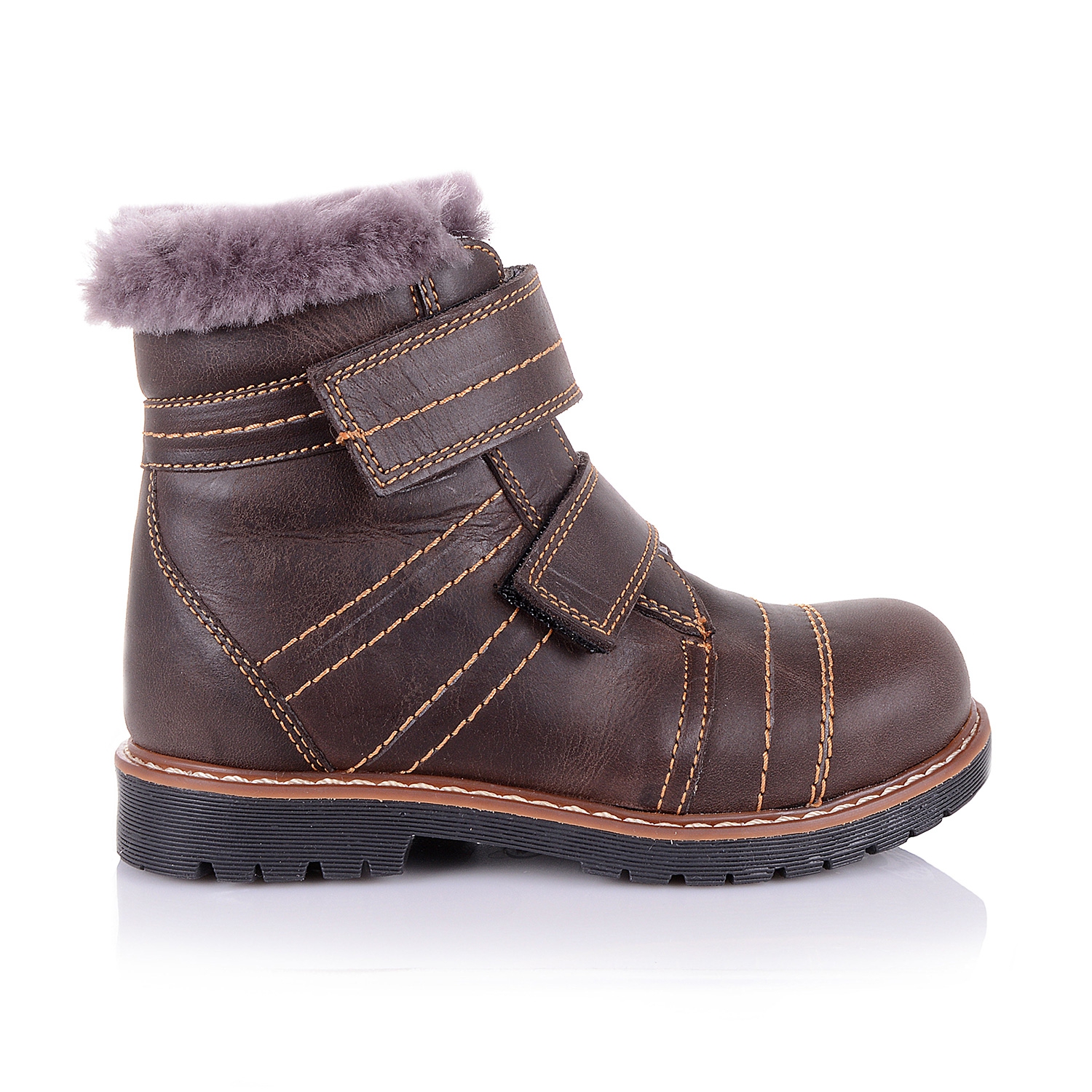Практичные и удобные ортопедические зимние ботинки- идеальны для города! Снаружи ботинки выполнены из натуральной кожи (имеет заводское водоотталкивающее покрытие) коричневого цвета с отстрочкой, внутри- натуральная плотная цигейка. Удобная фиксация на две липучки позволяет подобрать обувь на ногу разной полноты и высоты свода. Каблук Томаса с удлиненным внутренним краем обеспечит правильную постановку ноги. Анатомическая стелька с супинатором поддержит свод стопы и поспособствует здоровому развитию мышц. О фиксации голенища и щиколотки позаботятся укрепленные берцы и жесткий задник. А хрупкие суставы будут защищены от чрезмерных нагрузок благодаря амортизационной вставке и высокому протектору на подошве. Не отказывайте своему сокровищу носить правильную ортопедическую обувь класса премиум+.