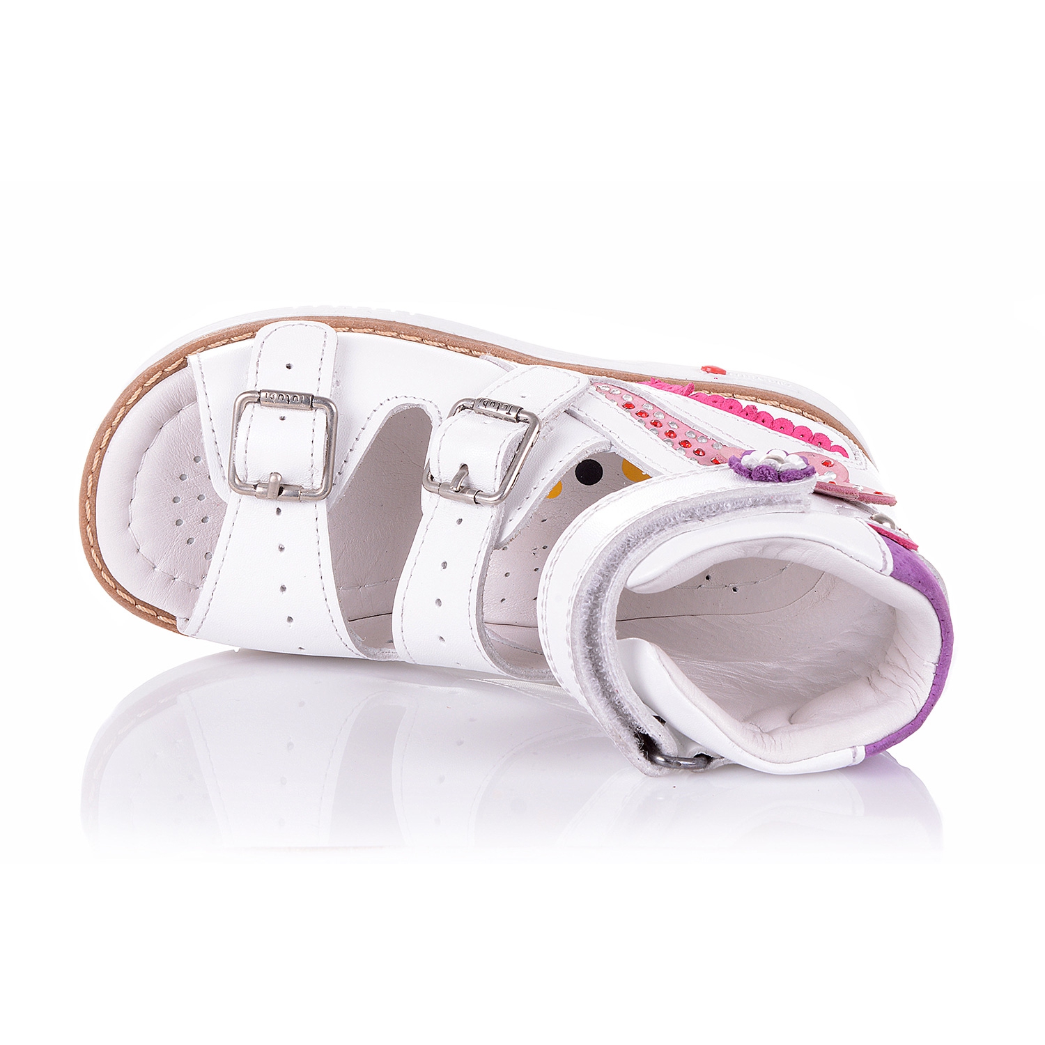 Ортопедические берцы из натуральной кожи белого цвета с разноцветными вставками, позволят малышу наслаждаться прогулками, забыв, что он обут! А удобная фиксация в трех точках (оптимальный вариант фиксации, рекомендованный ортопедами) позволяет подобрать обувь на ногу разной полноты и высоты свода. Обувь выполнена в натуральной коже как внутри, так и снаружи. Высокий жесткий берец фиксирует таранно-пяточный и голеностопный сустав, что при постоянном ношении этой обуви формирует правильное развитие суставных поверхностей и препятствует дальнейшему развитию деформации. Специальный ортопедический каблук Томаса позволяет устранить инверсионный (вращение стопы) компонент деформации. Ортопедическая несъемная стелька с супинатором способствует правильной физиологической постановке стопы и профилактике деформации у ребёнка. Обувь практичная и удобная в носке, Ваш ребенок останется доволен.