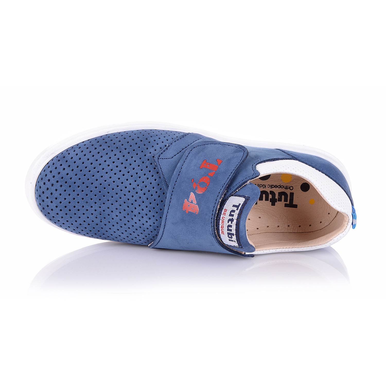 Перфорированные ортопедические мокасины синего цвета из натурального нубука с контрастной белой подошвой, подойдут практически под любой гардероб на сезон весна-лето. Нога фиксируется липучкой. Внутренняя мягкая кожаная стелька "SOFT EFFECT" с супинатором и твердый задник обеспечивают физиологически правильное положение ножки. Подошва износостойкая из термокаучука, обеспечивает амортизацию, комфортную походку и хорошее сцепление с твердой поверхностью. Обувь такого качества и дизайна приковывает взгляды!