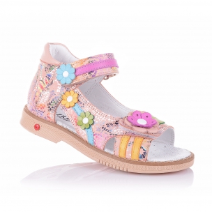 Модная новинка- ортопедические босоножки из натурального разноцветного нубука смотрятся очень оригинально. Удобная фиксация двумя липучками позволяет подобрать обувь на ногу разной полноты и высоты свода. Кожаная стелька с супинатором и твердый задник обеспечивают физиологически правильное положение ножки. Подошва, износостойкая из термокаучука, со скошенным каблуком Томаса и антишоковыми вставками, которые снимают ударную нагрузку на пяточную кость. Обувь прочная и износостойкая, ваш ребенок будет чувствовать себя в ней комфортно и уверенно.