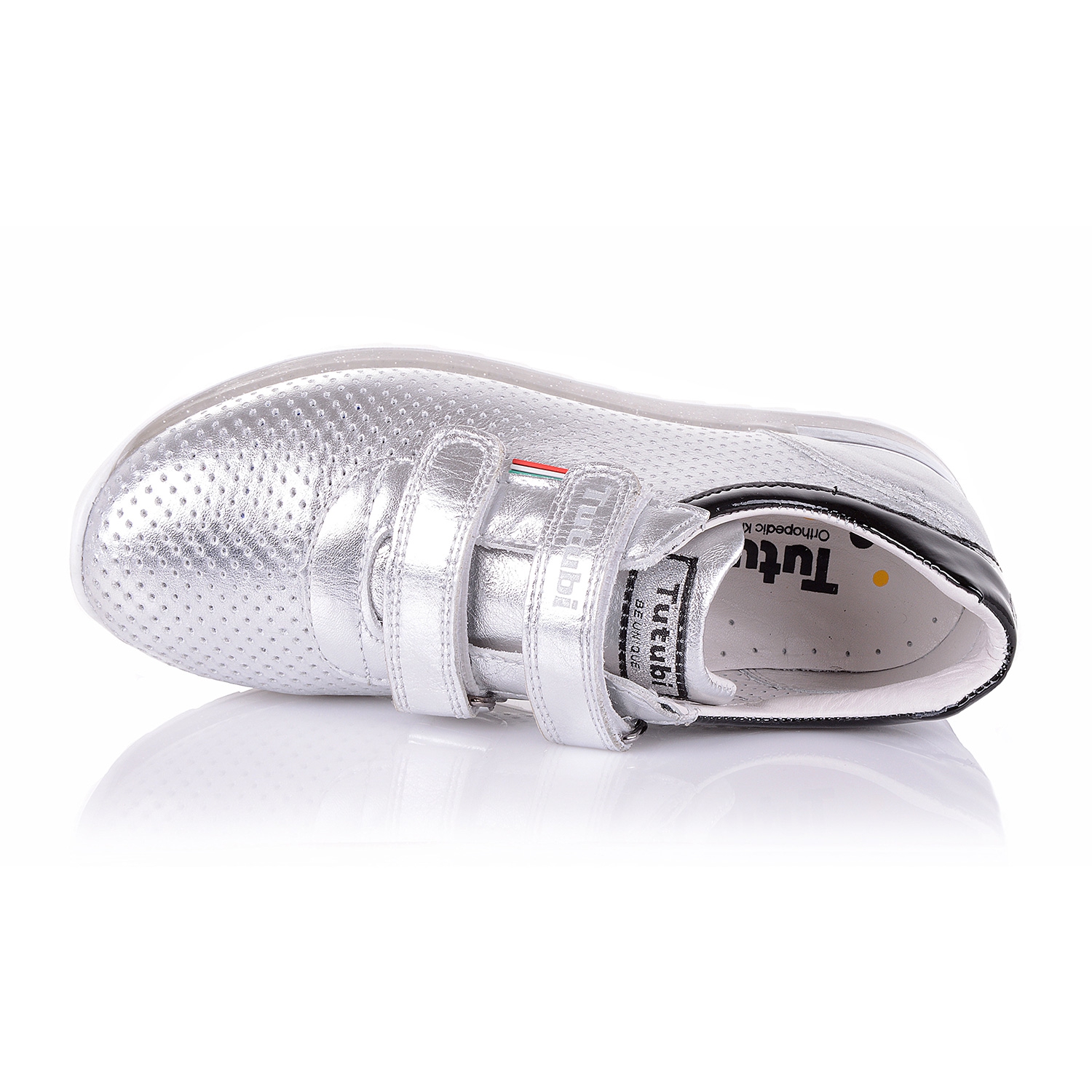 Прекрасная альтернатива закрытым босоножкам- перфорированные насквозь кроссовки на ребристой подошве, выполнены из натуральной кожи серебристого цвета. Внутренняя мягкая кожаная стелька "SOFT EFFECT" с супинатором и твердый задник обеспечивают физиологически правильное положение ноги, а удобная фиксация на две липучки позволит выбрать обувь на ногу разной полноты и высоты свода. Анатомическая износостойкая подошва из термокаучука, очень мягкая и амортизирует, обеспечивая комфортную походку. Обувь прочная и качественная подходит на сезон весна-лето.
