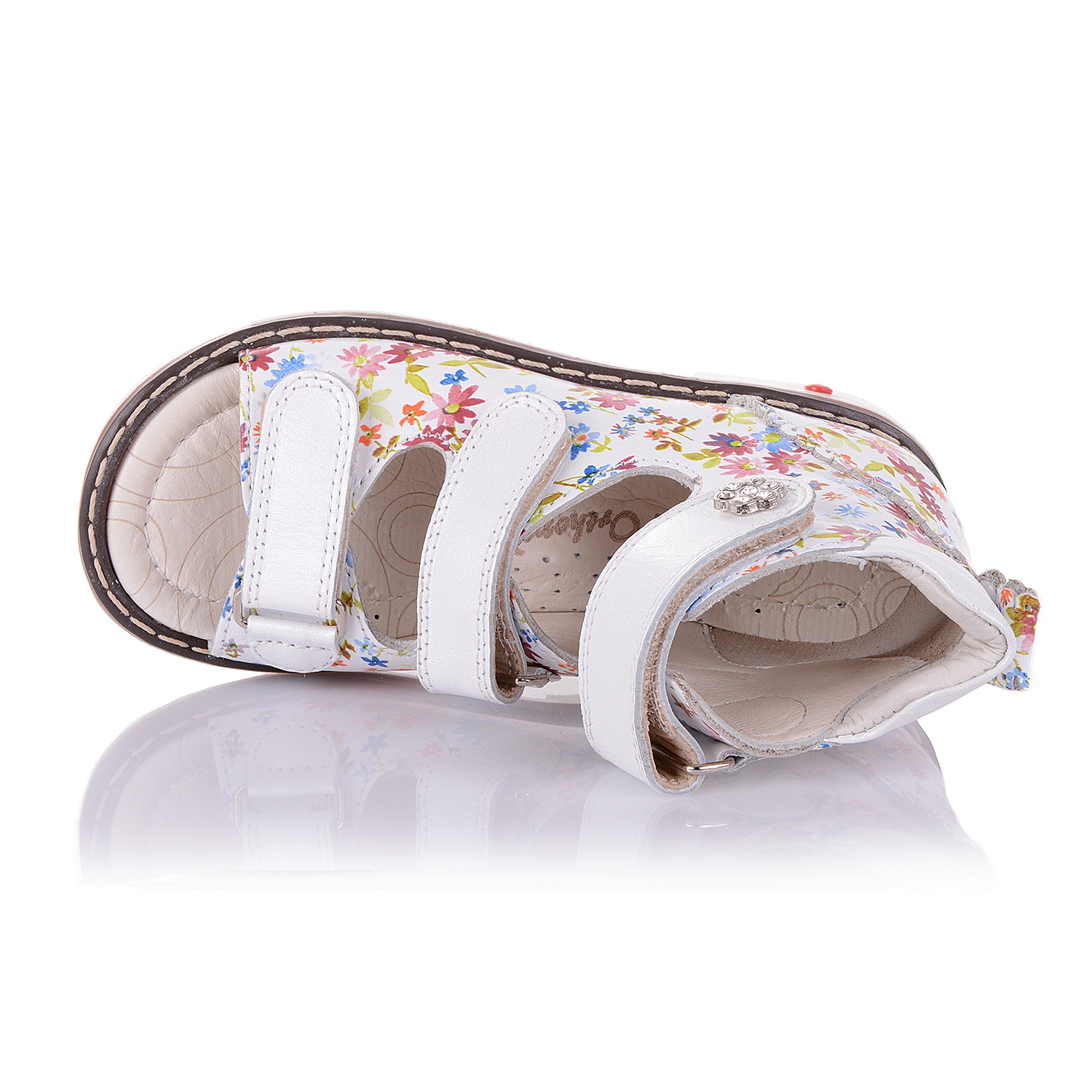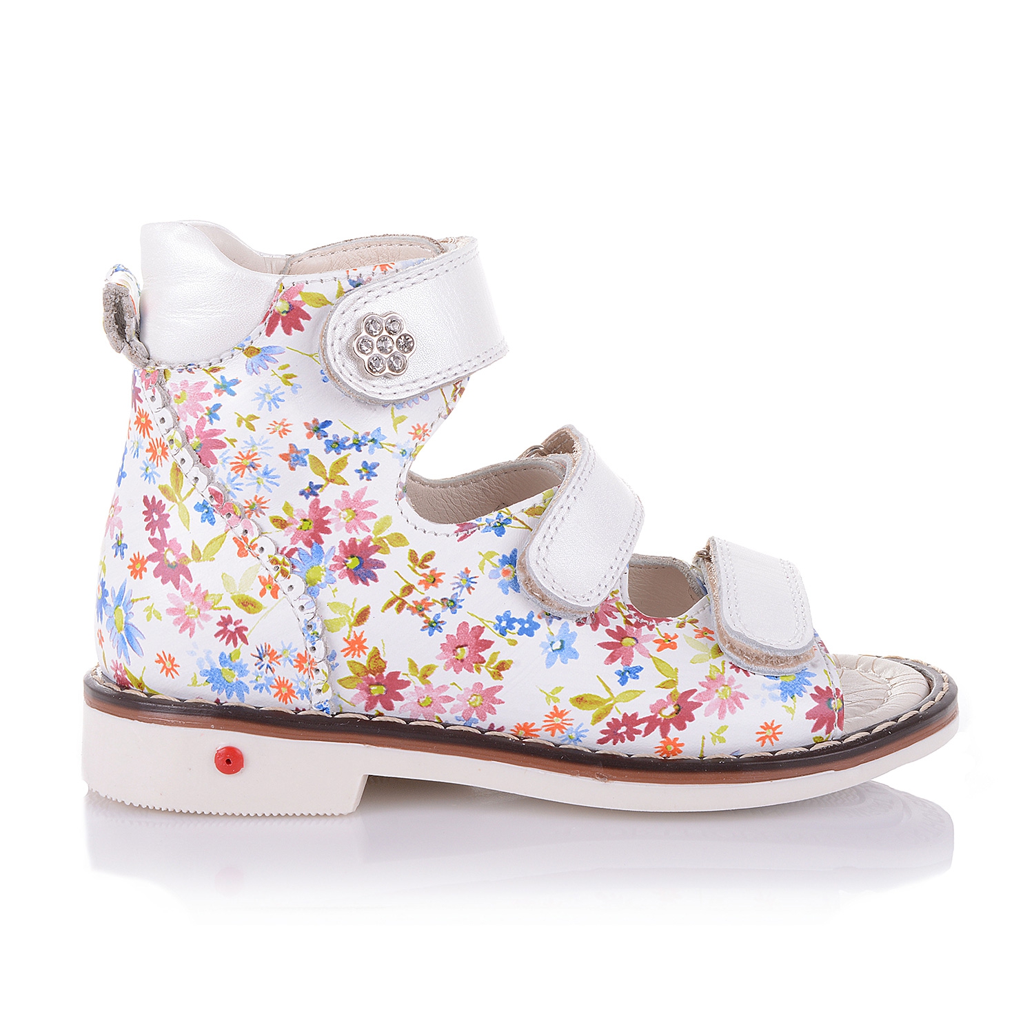 Ортопедические берцы из натуральной кожи белого цвета с цветочным принтом, позволят малышу наслаждаться прогулками, забыв, что он обут! А удобная фиксация в трех точках (оптимальный вариант фиксации, рекомендованный ортопедами) позволяет подобрать обувь на ногу разной полноты и высоты свода. Обувь выполнена в натуральной коже как внутри, так и снаружи. Высокий жесткий берец фиксирует таранно-пяточный и голеностопный сустав, что при постоянном ношении этой обуви формирует правильное развитие суставных поверхностей и препятствует дальнейшему развитию деформации. Специальный ортопедический каблук Томаса позволяет устранить инверсионный (вращение стопы) компонент деформации. Ортопедическая несъемная стелька с супинатором способствует правильной физиологической постановке стопы и профилактике деформации у ребёнка. Обувь практичная и удобная в носке, Ваш ребенок останется доволен.