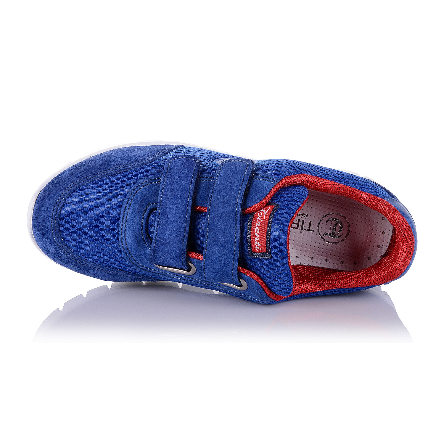 Супер-стильные кроссовки на ребристой подошве, выполнены из эксклюзивного итальянского текстиля синего цвета. Внутренняя мягкая кожаная стелька "SOFT EFFECT" с супинатором и твердый задник обеспечивают физиологически правильное положение ноги, а удобная фиксация на две липучки позволит выбрать обувь на ногу разной полноты и высоты свода. Анатомическая износостойкая подошва из термокаучука, очень мягкая и амортизирует, обеспечивая комфортную походку. Обувь прочная и качественная.