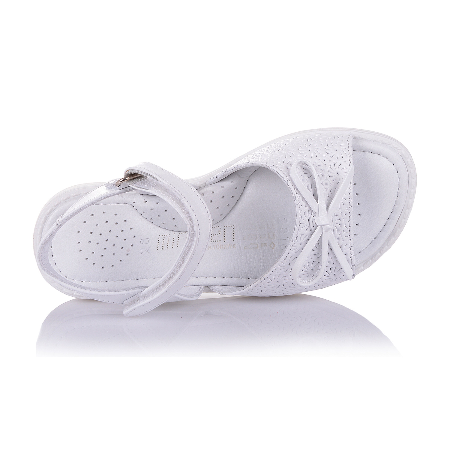 Новинка нынешнего сезона, босоножки для девочки из натуральной кожи белого цвета, станут украшением гардероба Вашей маленькой модницы. Внутренняя мягкая кожаная стелька "SOFT EFFECT" с супинатором обеспечивает физиологически правильное положение ножки. Подошва износостойкая из термокаучука, обеспечивает амортизацию, комфортную походку и хорошее сцепление с твердой поверхностью. Обувь такого качества и дизайна приковывает взгляды!
