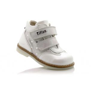Ботинки Tiflani ортопедические белого цвета. Фиксируются двумя липучками, снаружи кожа + нубук, внутри флис. Высокая твердая пятка, супинатор и ортопедический каблук Томаса.
