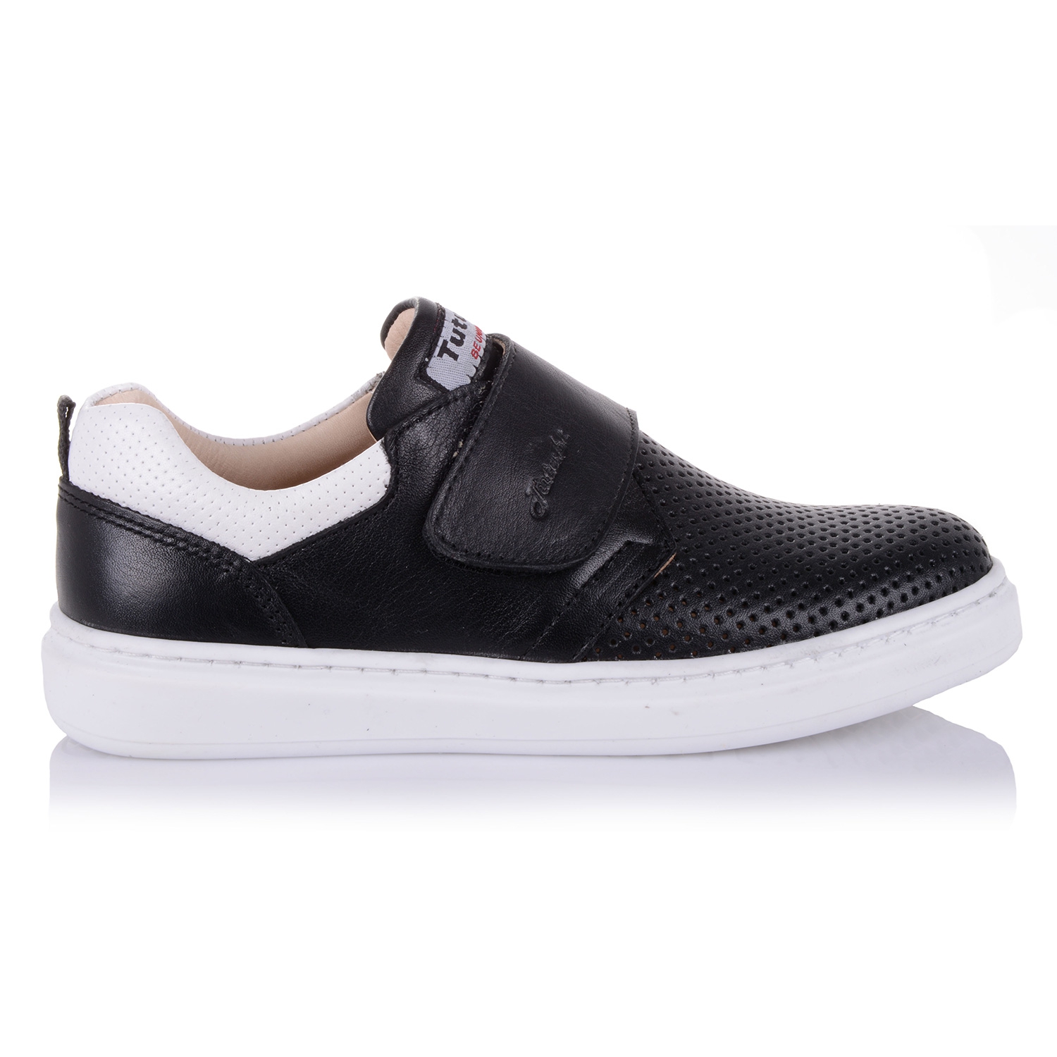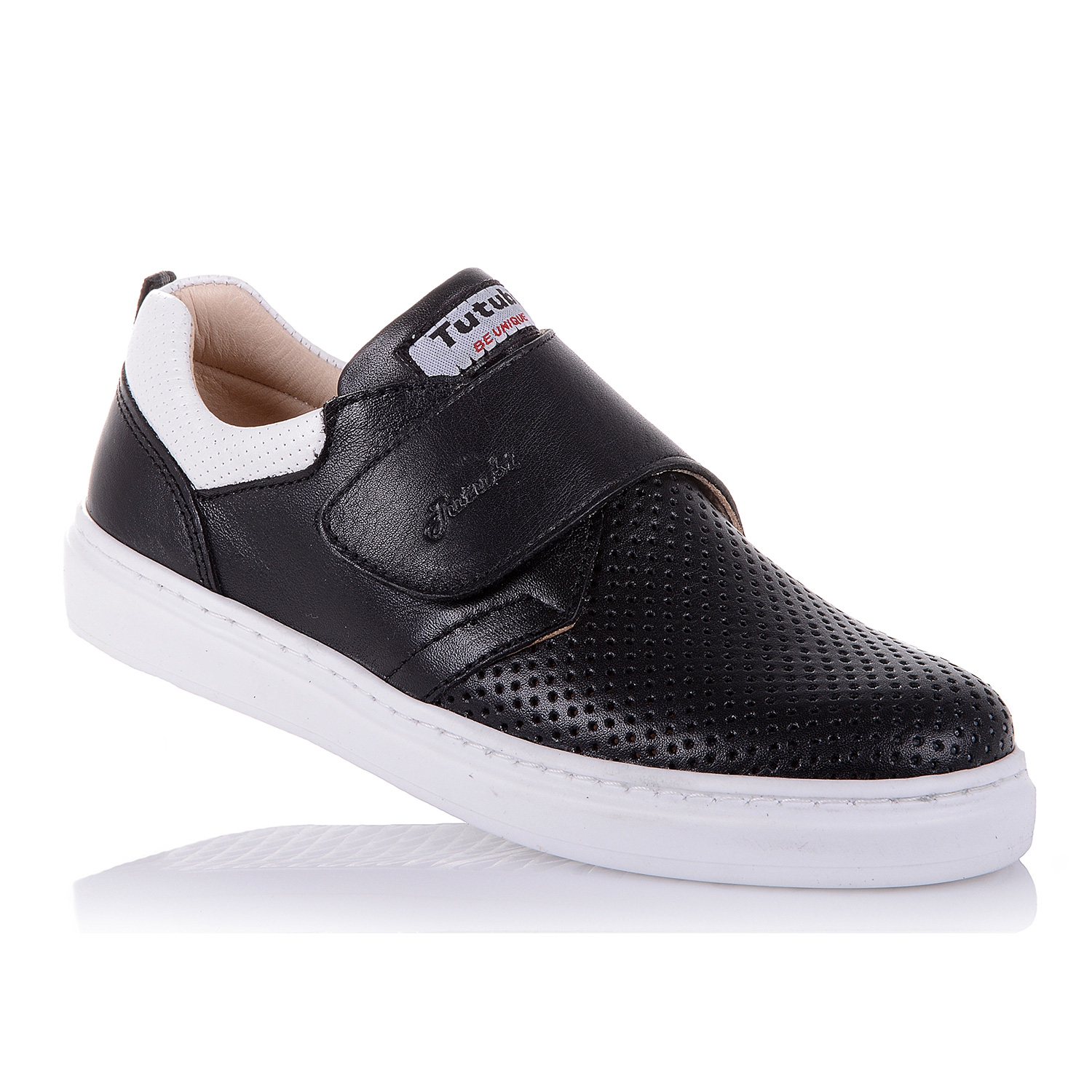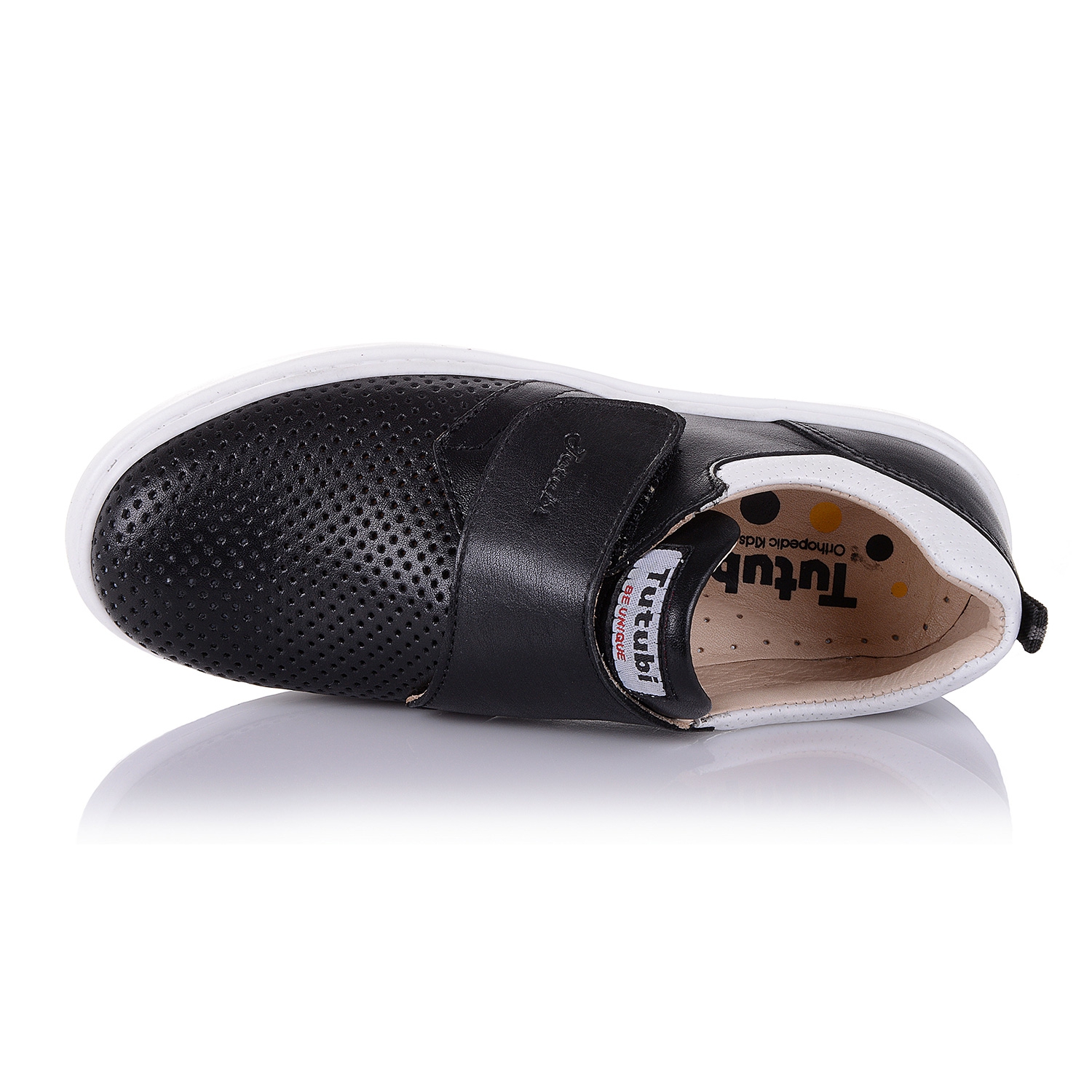 Перфорированные насквозь ортопедические мокасины черного цвета из натуральной кожи с контрастной белой подошвой, подойдут практически под любой гардероб на сезон весна-лето. Нога фиксируется липучкой. Внутренняя мягкая кожаная стелька "SOFT EFFECT" с супинатором и твердый задник обеспечивают физиологически правильное положение ножки. Подошва износостойкая из термокаучука, обеспечивает амортизацию, комфортную походку и хорошее сцепление с твердой поверхностью. Обувь такого качества и дизайна приковывает взгляды!