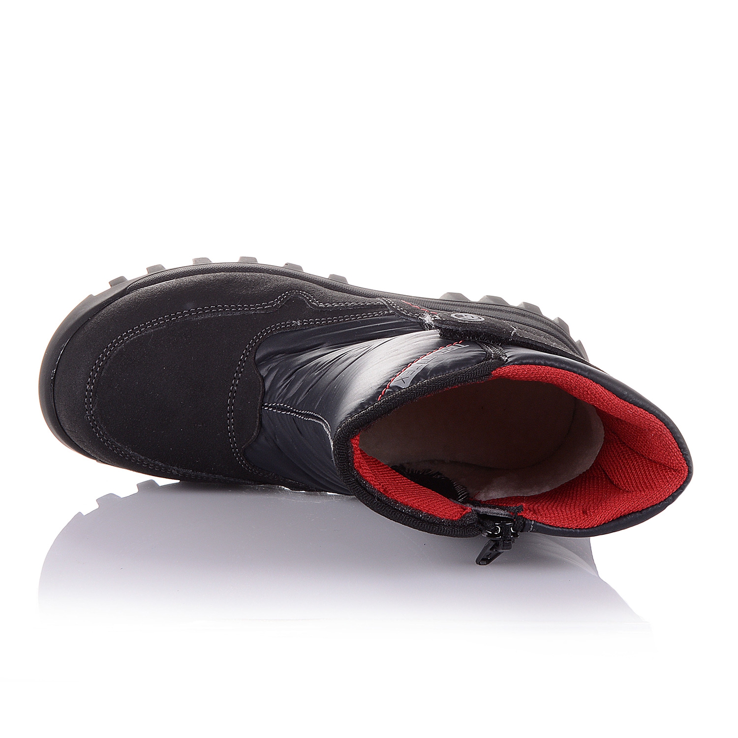 Зимние ботинки фирмы Tirenti черного цвета из жирного нубука со вставками из мембранного текстиля,согреют в холодную погоду ножки ребенка! Подошва из термопласта, дополнительно прошита, разработана специально для холодного времени года, не скользит по мокрой поверхности за счет специальной тракторной подошвы. Надевать такие ботинки - секундное дело, ведь они на молнии.Внутри: анатомическая стелька, утеплитель-натуральная шерсть. Мембранная ткань не промокает, но помогает ноге "дышать". Усилены носок и пятка для поддержания стопы в правильном положении (препятствует развитию плоскостопия). При выборе ортопедической и ортопрофилактической обуви очень важна уверенность в качестве, ведь Ваш ребенок достоин самого лучшего. Рекомендовано по всем показателям ортопедами!