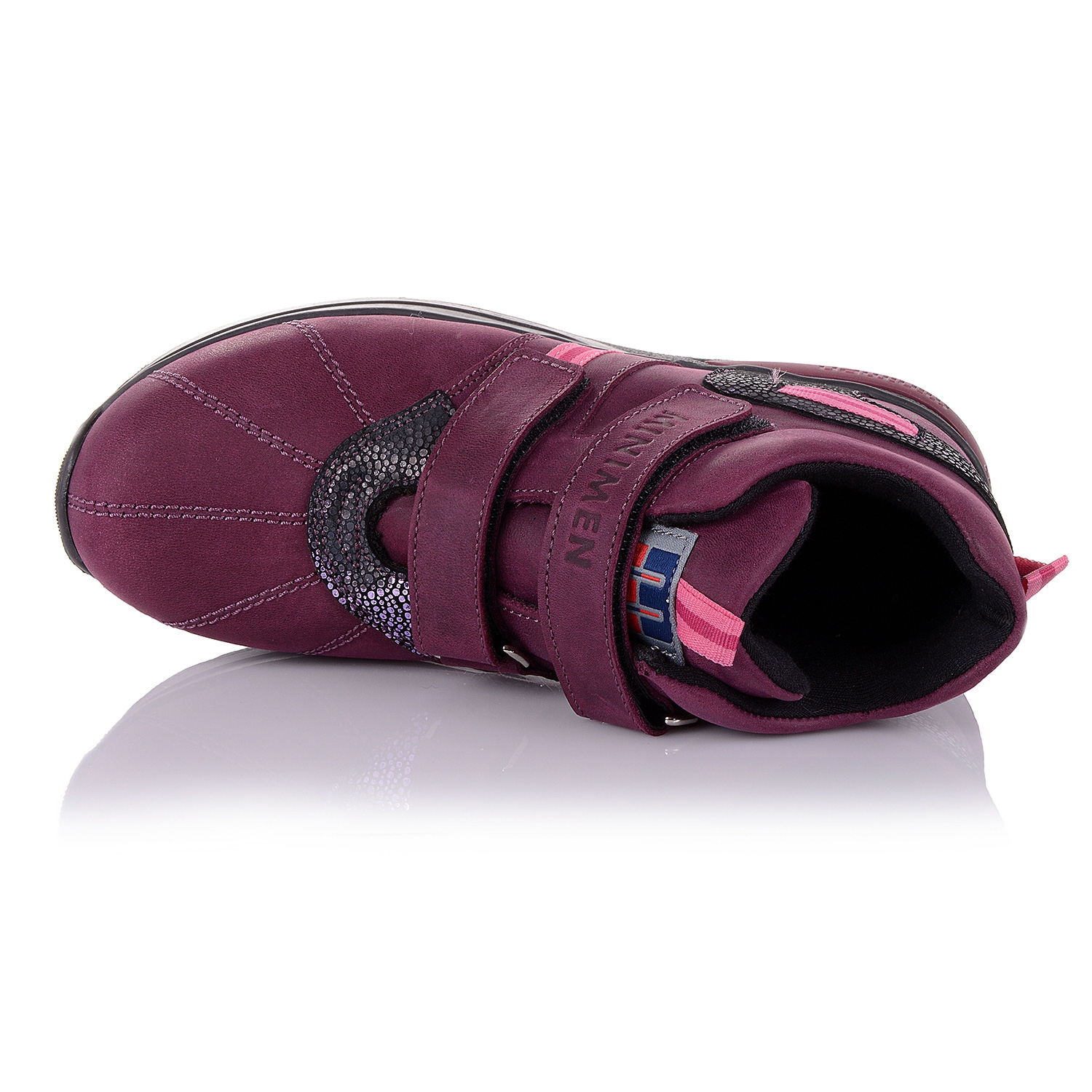 Яркие ботинки фирмы Minimen. Снаружи обувь выполнена из натурального жирного нубука бурячково-фиолетового цвета, внутри теплый флис. Фиксируется эта модель с помощью двух липучек. Анатомическая стелька с супинатором поддержит свод стопы и поспособствует здоровому развитию мышц. О фиксации голенища и щиколотки позаботятся укрепленные берцы и жесткий задник. А хрупкие суставы будут защищены от чрезмерных нагрузок благодаря амортизации термопластичной подошвы. В такой обуви класса премиум +, ребенок будет чувствовать себя эксклюзивно!