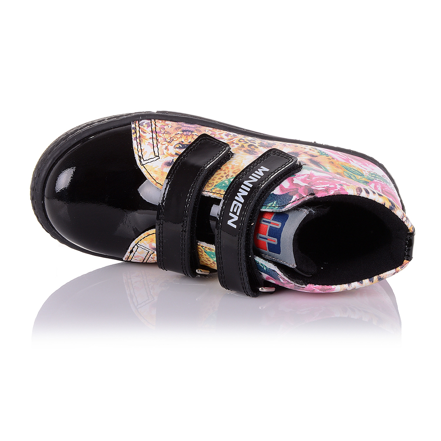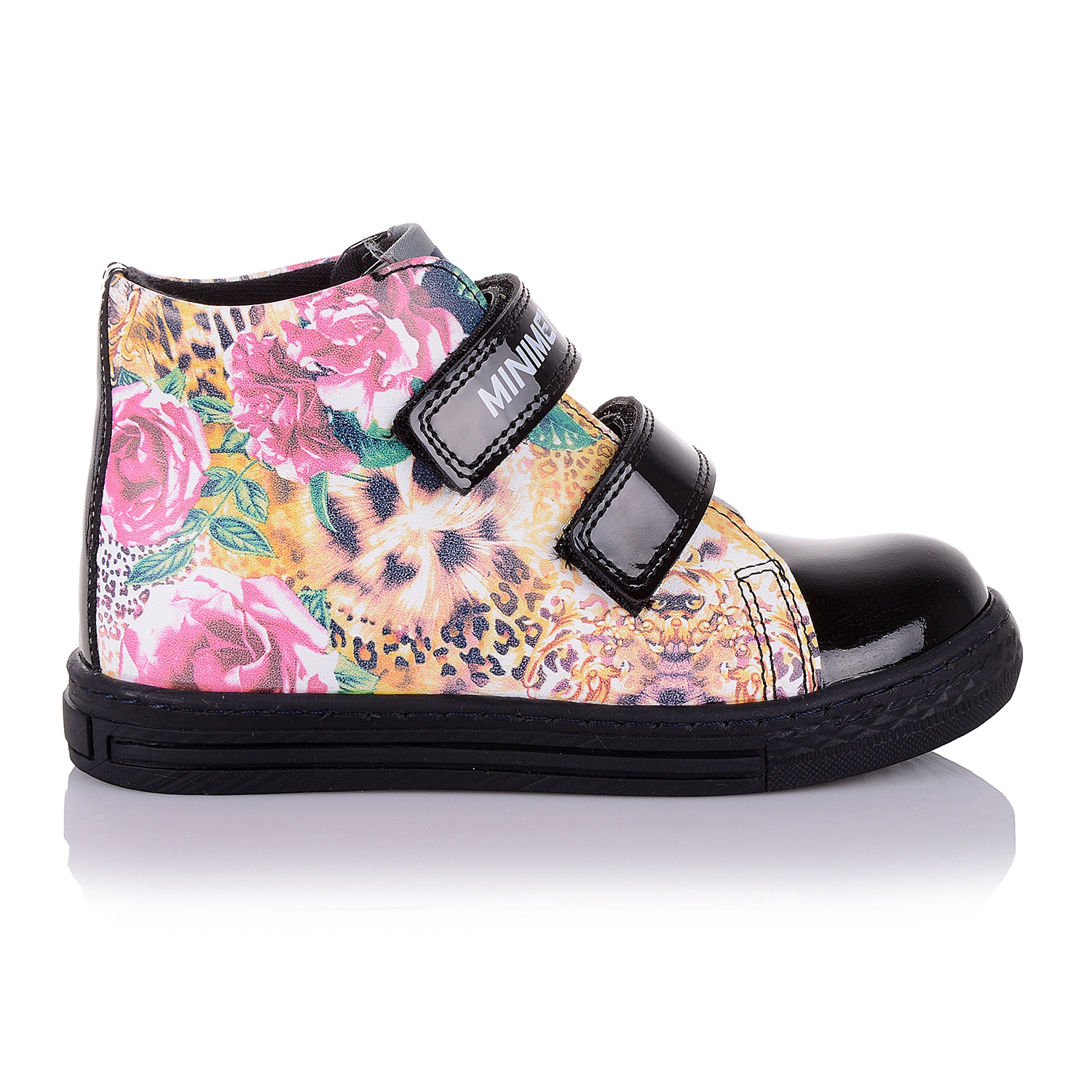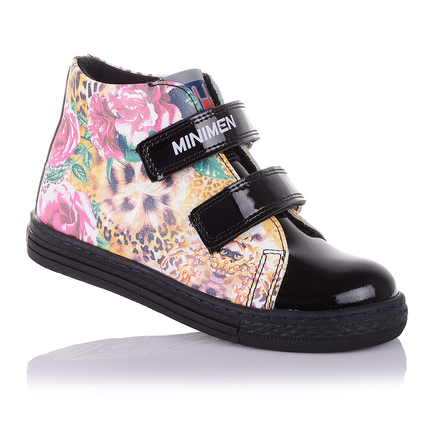 Удобные ботинки фирмы Minimen. Снаружи обувь выполнена из натуральной кожи с цветочным принтом, в сочетании с лаковой кожей на носке, внутри плотный флис. Фиксируется эта модель с помощью двух липучек. Анатомическая стелька с супинатором поддержит свод стопы и поспособствует здоровому развитию мышц. О фиксации голенища и щиколотки позаботятся укрепленные берцы и жесткий задник. А хрупкие суставы будут защищены от чрезмерных нагрузок благодаря амортизации термопластичной подошвы. В такой обуви класса премиум +, ребенок будет чувствовать себя эксклюзивно!
