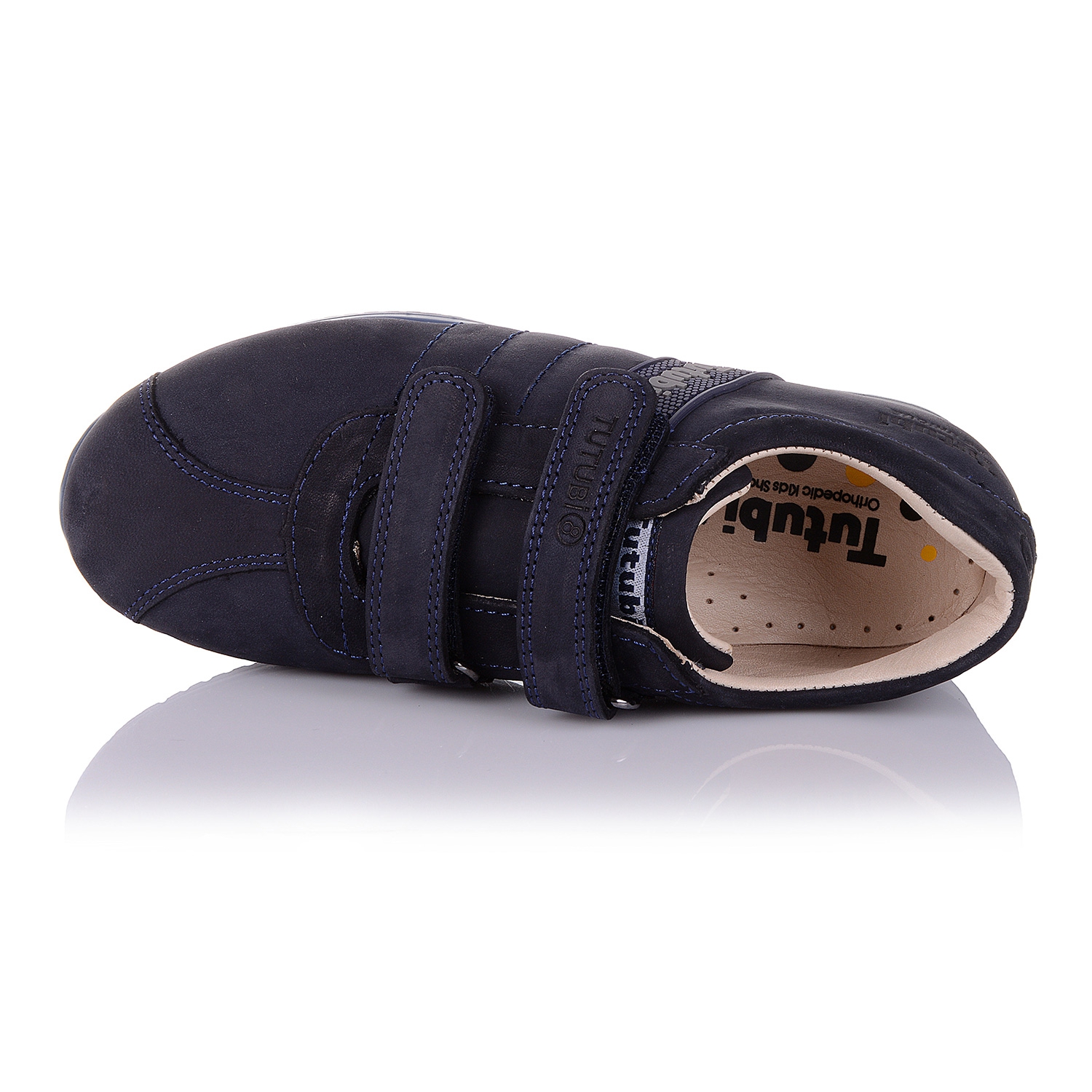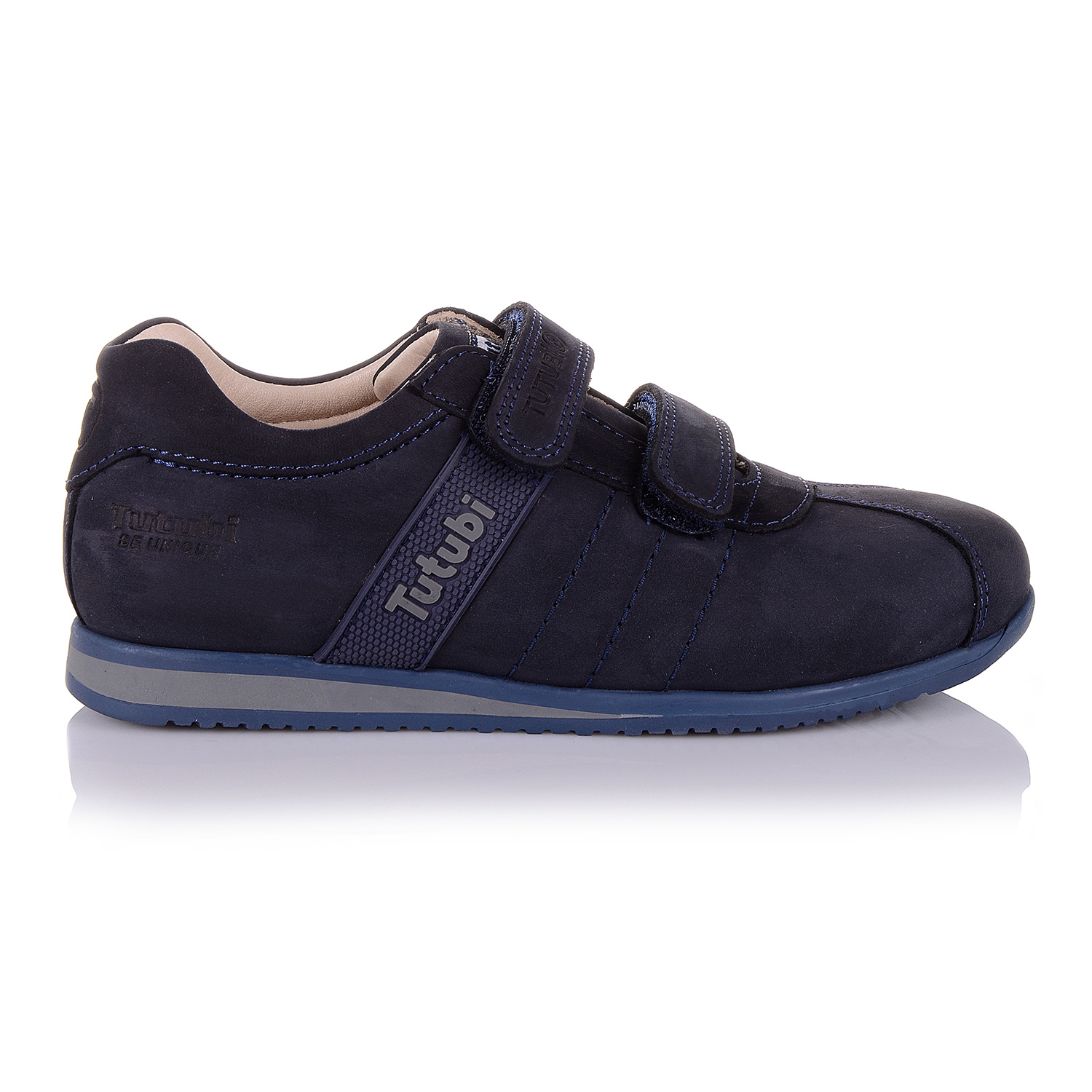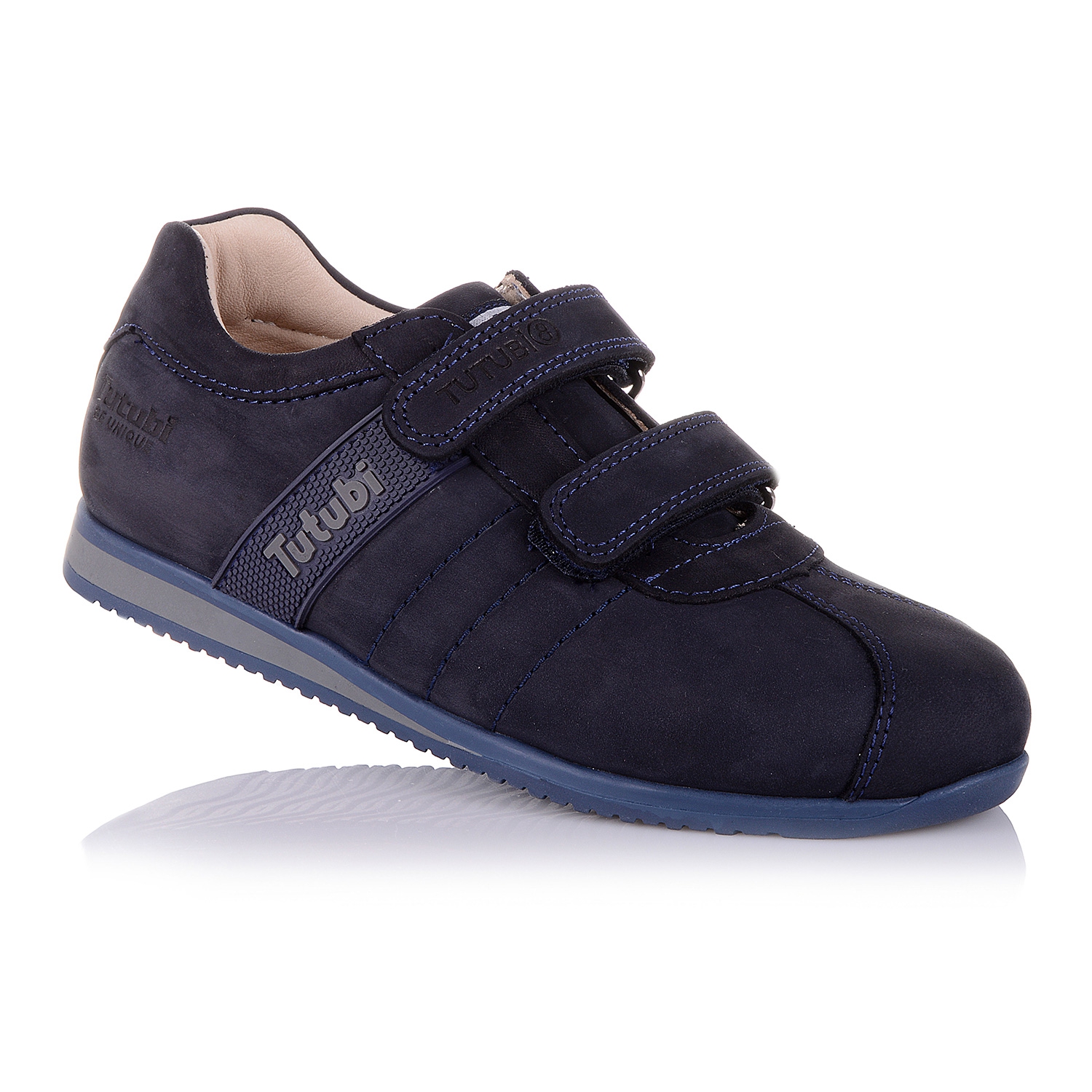 Очень стильные и практичные кроссовки из натурального нубука темно-синего цвета с неброским логотипом производителя сбоку, придает модели необычную оригинальность. Нога любого обьема отлично фиксируется двумя липучками. Анатомическая стелька с твердым супинатором и мягкой прослойкой в пяточной части, поддержит свод стопы и поспособствует здоровому развитию мышц. О фиксации щиколотки позаботится жесткий задник. Подошва, ребристая износостойкая из термокаучука- мягкая, при ходьбе амортизирует. Шикарный выбор как для спорта, так и для ежедневных прогулок. Ваш ребенок останется доволен.