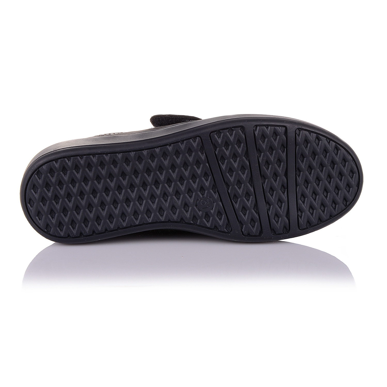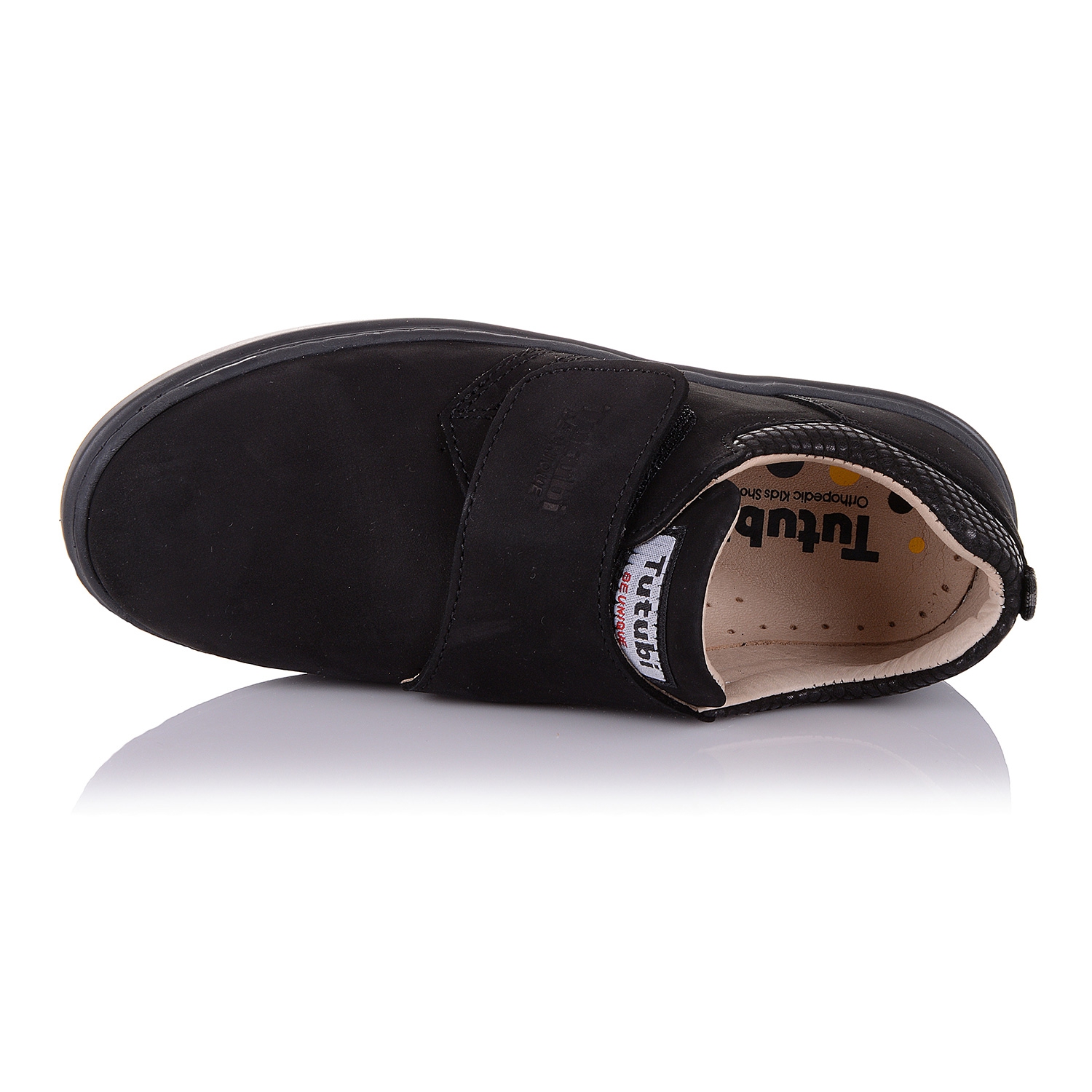 Новая разработка турецких дизайнеров- стильные и универсальные слипоны, с которыми можно создать огромное количество образов. Обувь выполнена из натурального нубука черного цвета. Нога отлично фиксируется широкой липучкой, которая несет в себе также и декоративную функцию. Кожаная анатомическая стелька с твердым супинатором и мягкой прослойкой в пяточной части, поддержит свод стопы и поспособствует здоровому развитию мышц и мягкой походке. Подошва плотная из термокаучука, достаточно хорошо гнется. Экспериментируйте и создавайте самые красивые образы с обувью Тутуби.