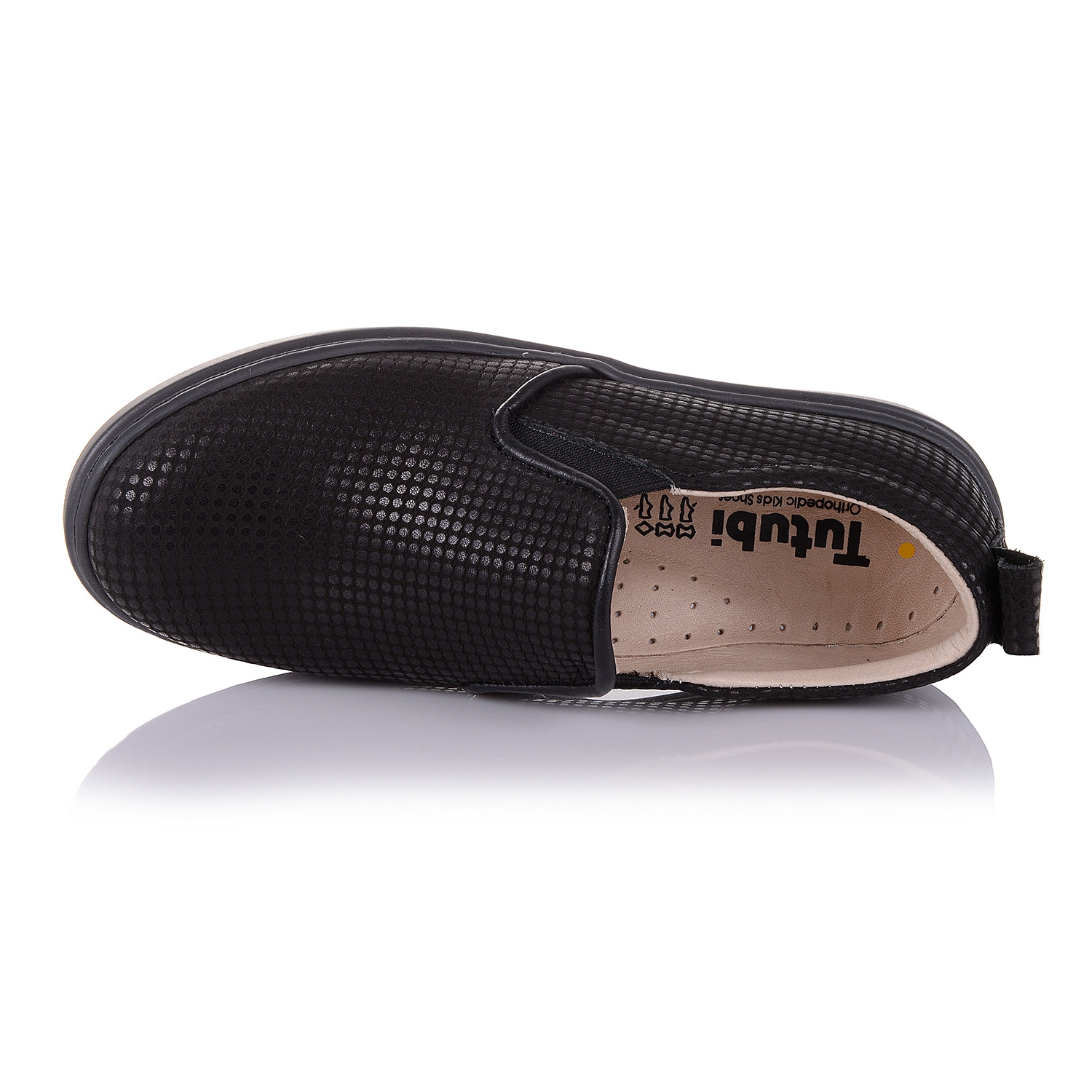 Шикарные ортопедические мокасины черного цвета из натурального нубука с тисненным принтом смотрятся очень необычно и дорого. Внутренняя мягкая кожаная стелька "SOFT EFFECT" с супинатором и твердый задник обеспечивают физиологически правильное положение ножки. Анатомическая износостойкая подошва из термокаучука очень мягкая и амортизирует, обеспечивая комфортную походку и хорошее сцепление с твердой поверхностью. Обувь такого качества и дизайна приковывает взгляды!