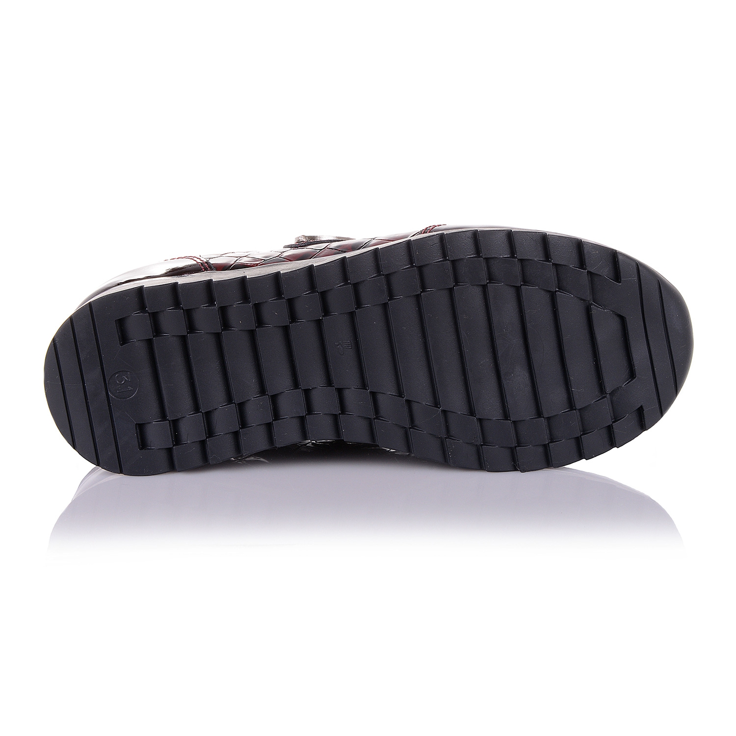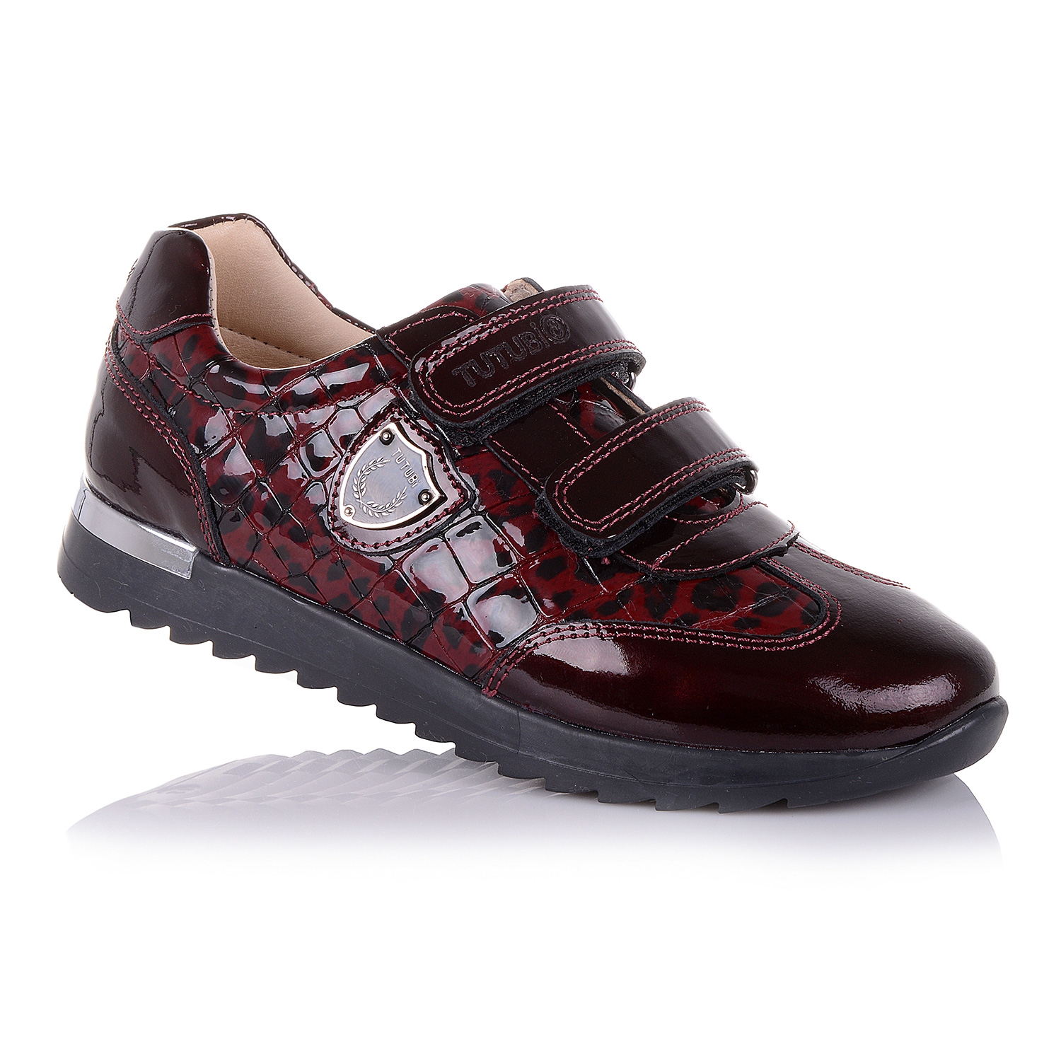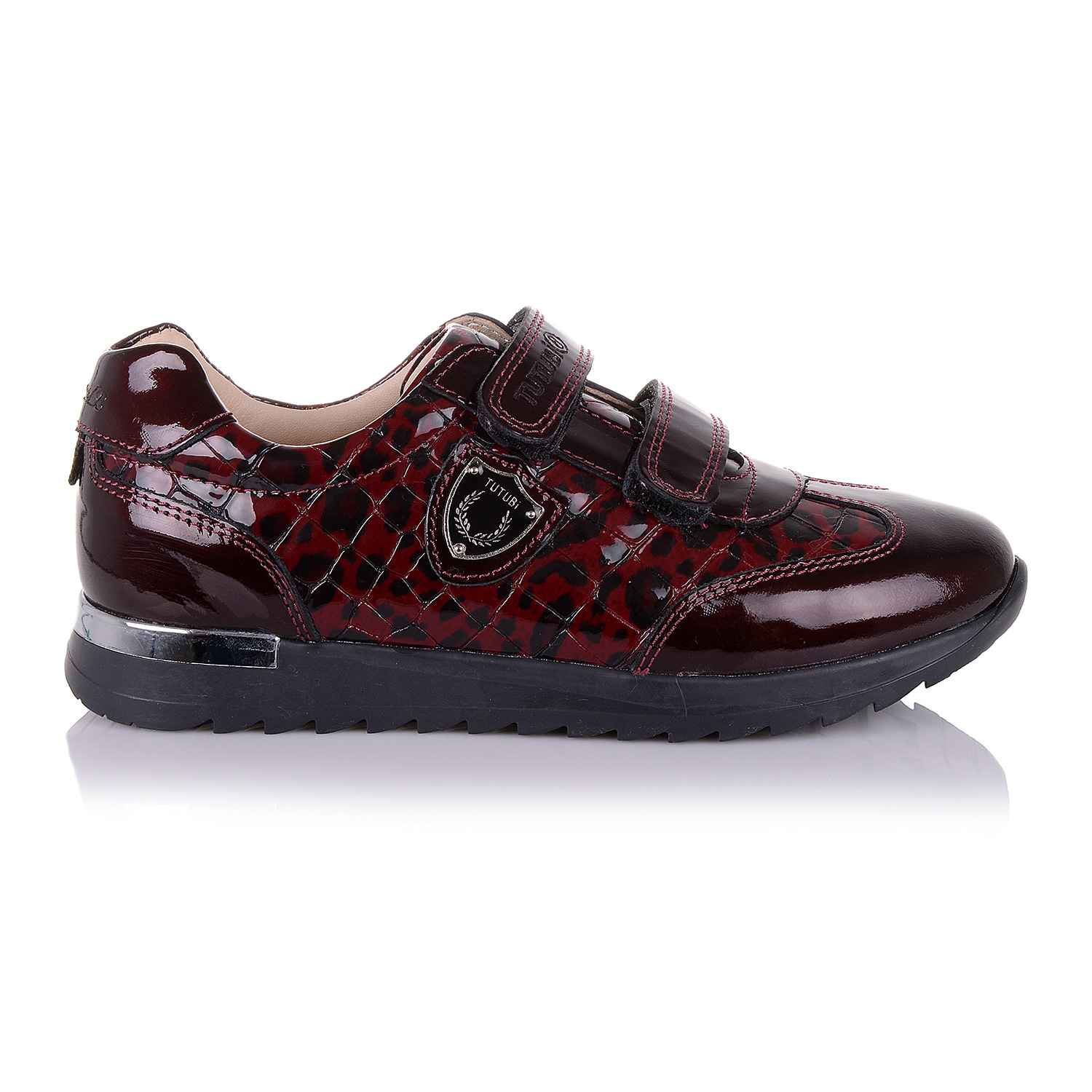 Шикарные кроссовки на ребристой подошве, выполнены из натуральной лаковой кожи бордового цвета с анималистическим принтом. Обувь очень красиво и аккуратно смотрится на ножке. Нога любого обьема отлично фиксируется двумя липучками. Анатомическая стелька с твердым супинатором и мягкой прослойкой в пяточной части, поддержит свод стопы и поспособствует здоровому развитию мышц. О фиксации щиколотки позаботится жесткий задник. Подошва, ребристая износостойкая из термокаучука- мягкая, при ходьбе амортизирует. Не отказывайте своему сокровищу в удовольствии носить правильную ортопедическую обувь класса премиум+.