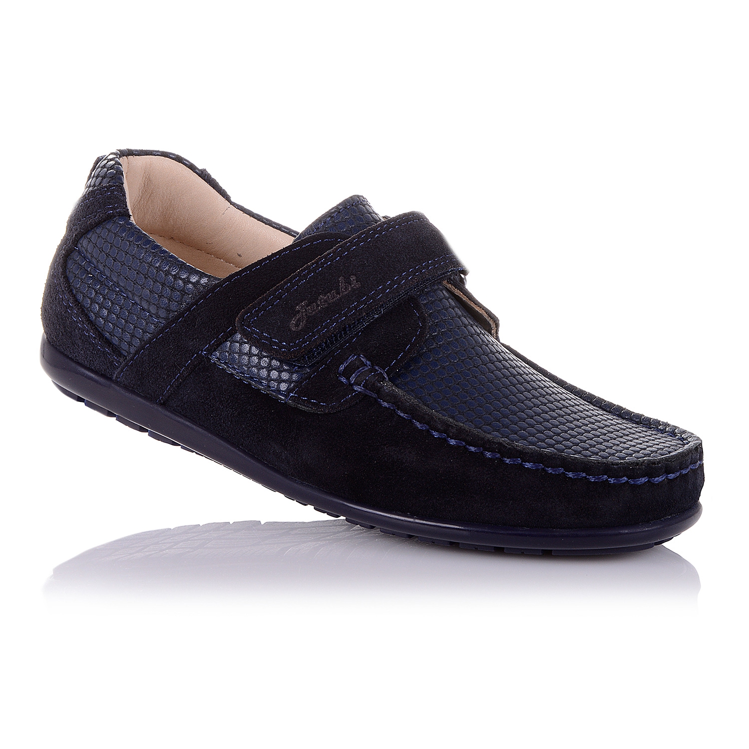 Очень мягкие и удобные мокасины темно-синего цвета из натуральной замши и нубука с тисненным принтом, смотрятся очень достойно и дорого. Нога отлично фиксируется липучкой. Внутренняя кожаная стелька "SOFT EFFECT" с супинатором, мягкой прослойкой в пяточной части поддержит свод стопы и поспособствует здоровому развитию мышц, а твердый задник обеспечивают физиологически правильное положение ножки. Анатомическая износостойкая подошва из термокаучука очень мягкая и амортизирует, обеспечивая комфортную походку и хорошее сцепление с твердой поверхностью. Обувь такого качества и дизайна приковывает взгляды!