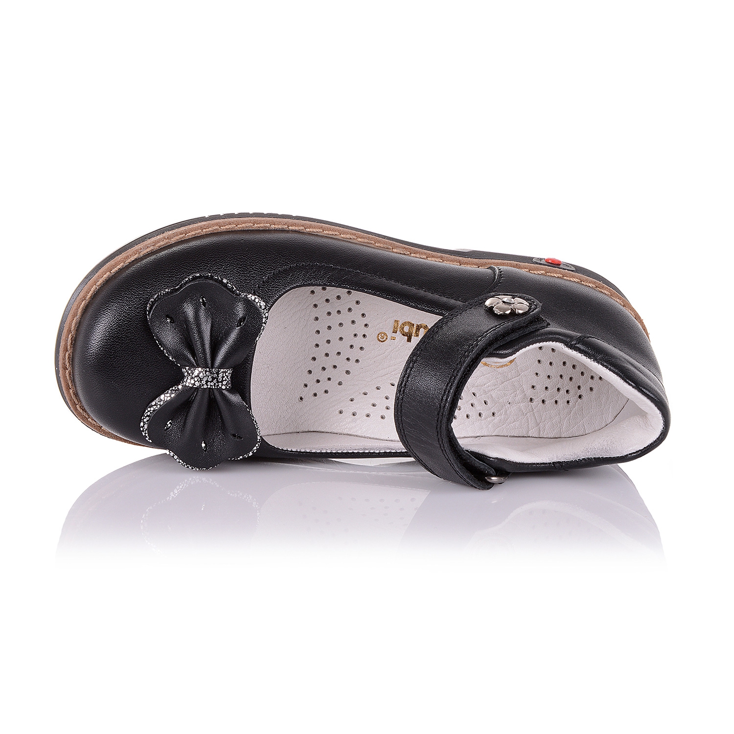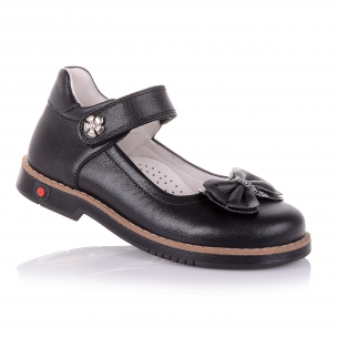 Ортопедические туфельки для девочки из натуральной кожи черного цвета. Удобная фиксация на липучку позволяет подобрать обувь на ногу разной полноты и высоты свода. Дышащая стелька с супинатором и твердый задник обеспечивают физиологически правильное положение ножки. Подошва, износостойкая из термокаучука, со скошенным каблуком Томаса и антишоковыми вставками, которые снимают ударную нагрузку на пяточную кость. Одевая такую пару обуви, Ваш ребенок будет чувствовать себя комфортно и эксклюзивно.