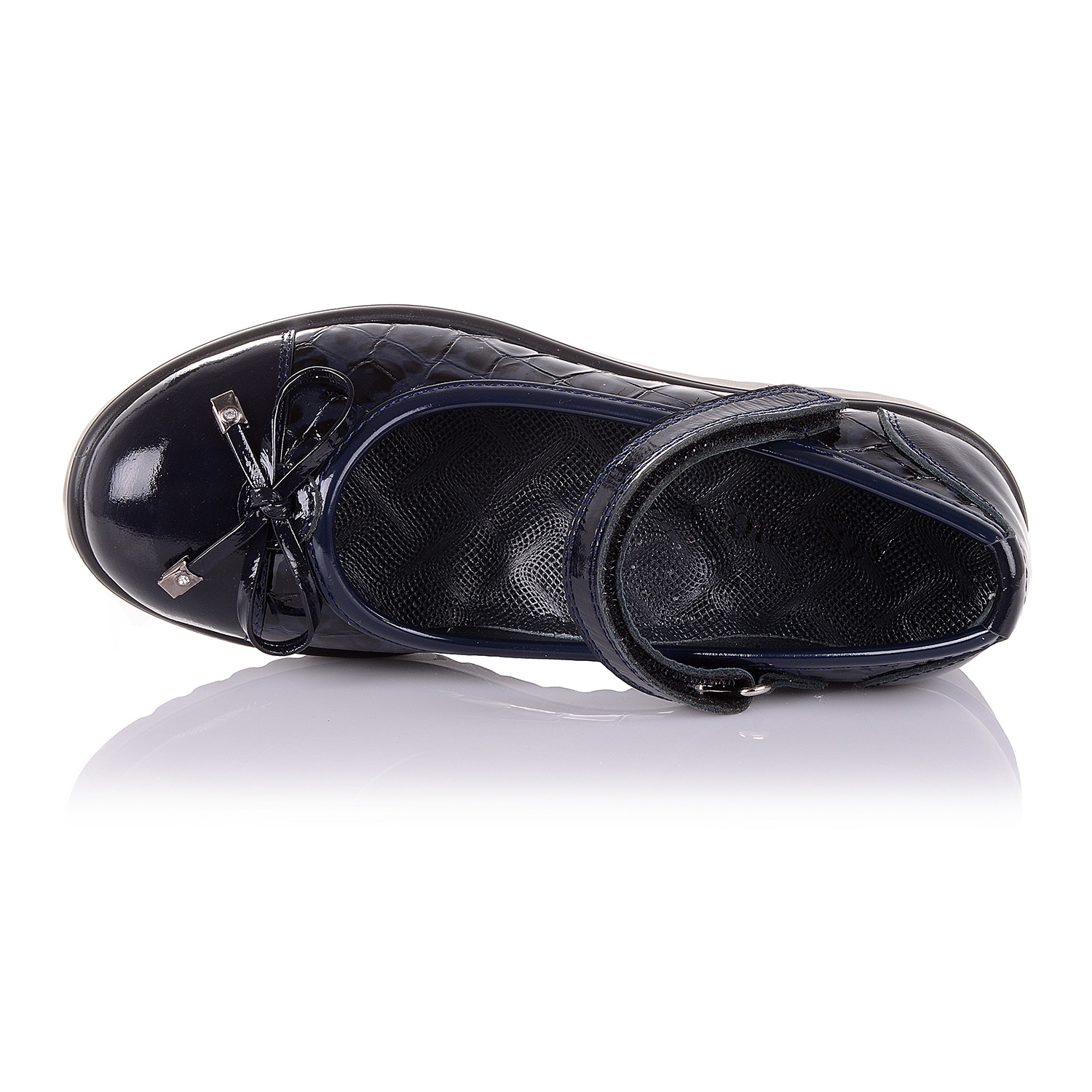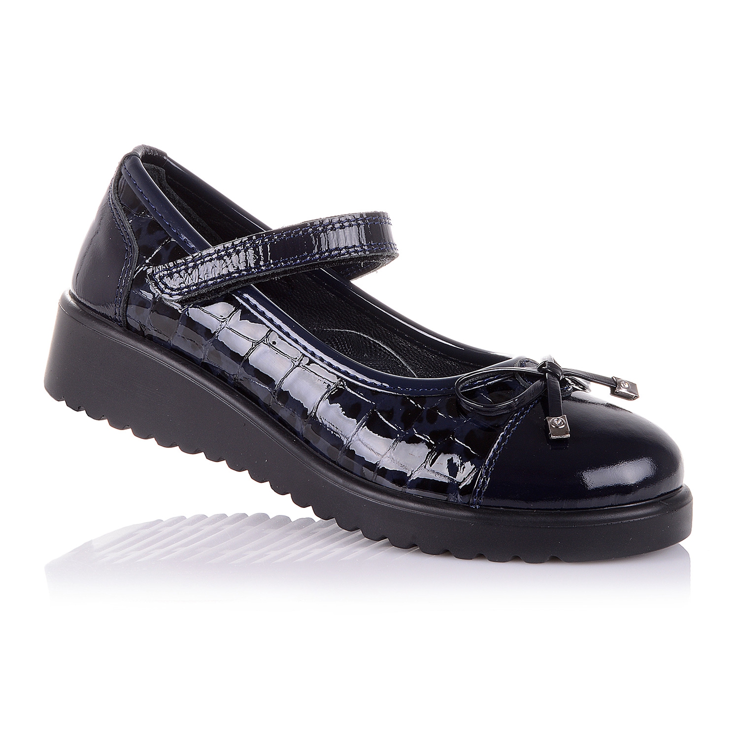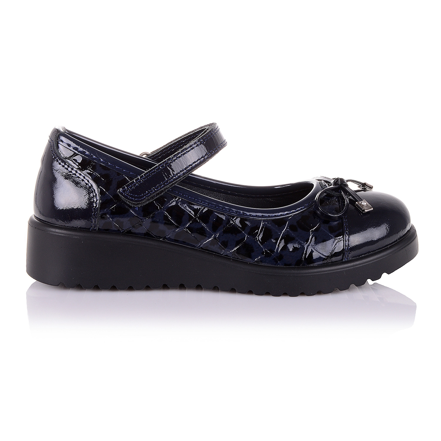 Новая модная разработка турецких дизайнеров- ортопедические туфли на девочку из лаковой кожи темно-синего цвета с анималистическим принтом и супер-оригинальной лазерной отделкой под питона, украшена бантиком. Внутренняя часть выполнена в коже, внешняя часть- из натуральной лаковой, очень мягкой кожи. Удобная фиксация на липучку позволяет подобрать туфли на ногу разной полноты и высоты свода. Анатомическая стелька с твердым супинатором поддержит свод стопы и поспособствует здоровому развитию мышц. О фиксации голенища и щиколотки позаботится жесткий задник. Подошва, износостойкая из термокаучука- мягкая, при ходьбе амортизирует, что позволяет ребенку чувствовать себя комфортно в данной обуви. Эти туфли станут неотьемлемой частью гардероба вашего ребенка, а трендовое сочетание лакового верха обуви с толстой подошвой создаст самый стильный образ!