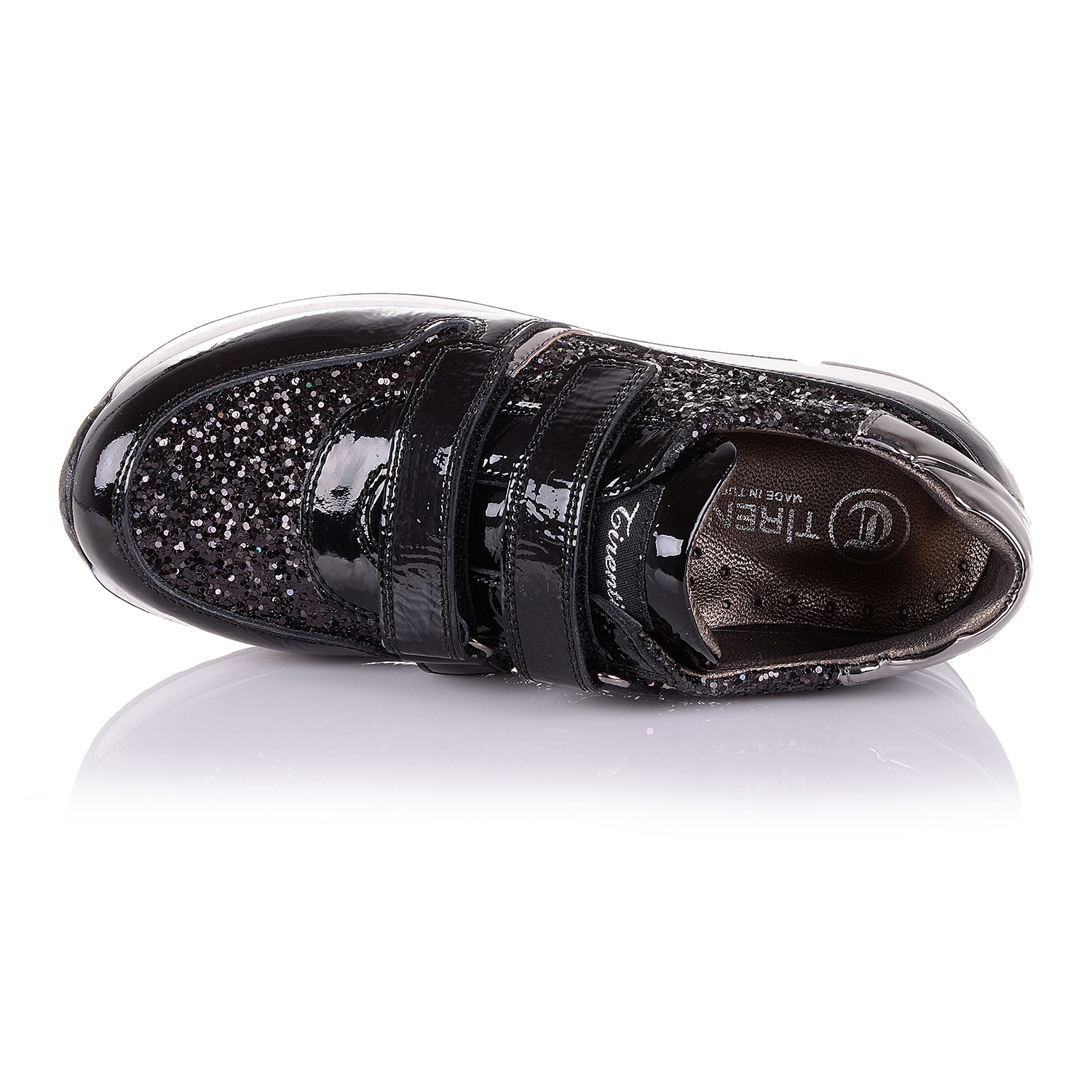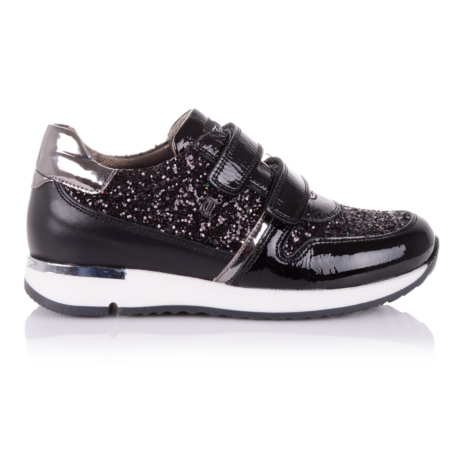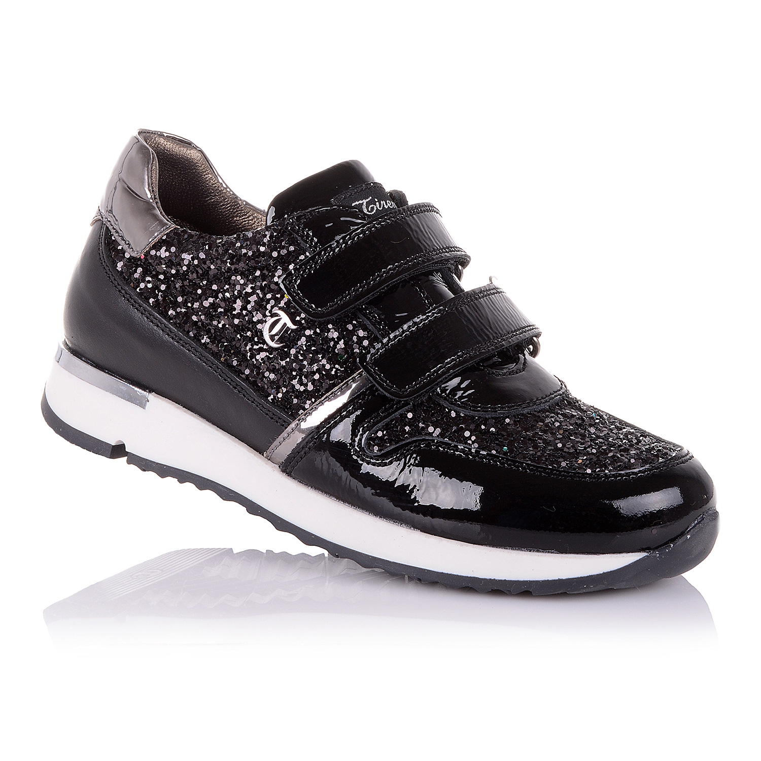 Эффектные ортопедические кроссовки на завышенной подошве, выполнены из натуральной лаковой кожи черного цвета со вставками из нубука с мерцающими пайетками. Обувь очень красиво и аккуратно смотрится на ножке. Нога любого обьема отлично фиксируется двумя липучками. Анатомическая стелька с твердым супинатором и мягкой прослойкой в пяточной части, поддержит свод стопы и поспособствует здоровому развитию мышц. О фиксации щиколотки позаботится жесткий задник. Подошва, ребристая износостойкая из термокаучука- мягкая, при ходьбе амортизирует. Не отказывайте своему сокровищу в удовольствии носить правильную ортопедическую обувь класса премиум+.