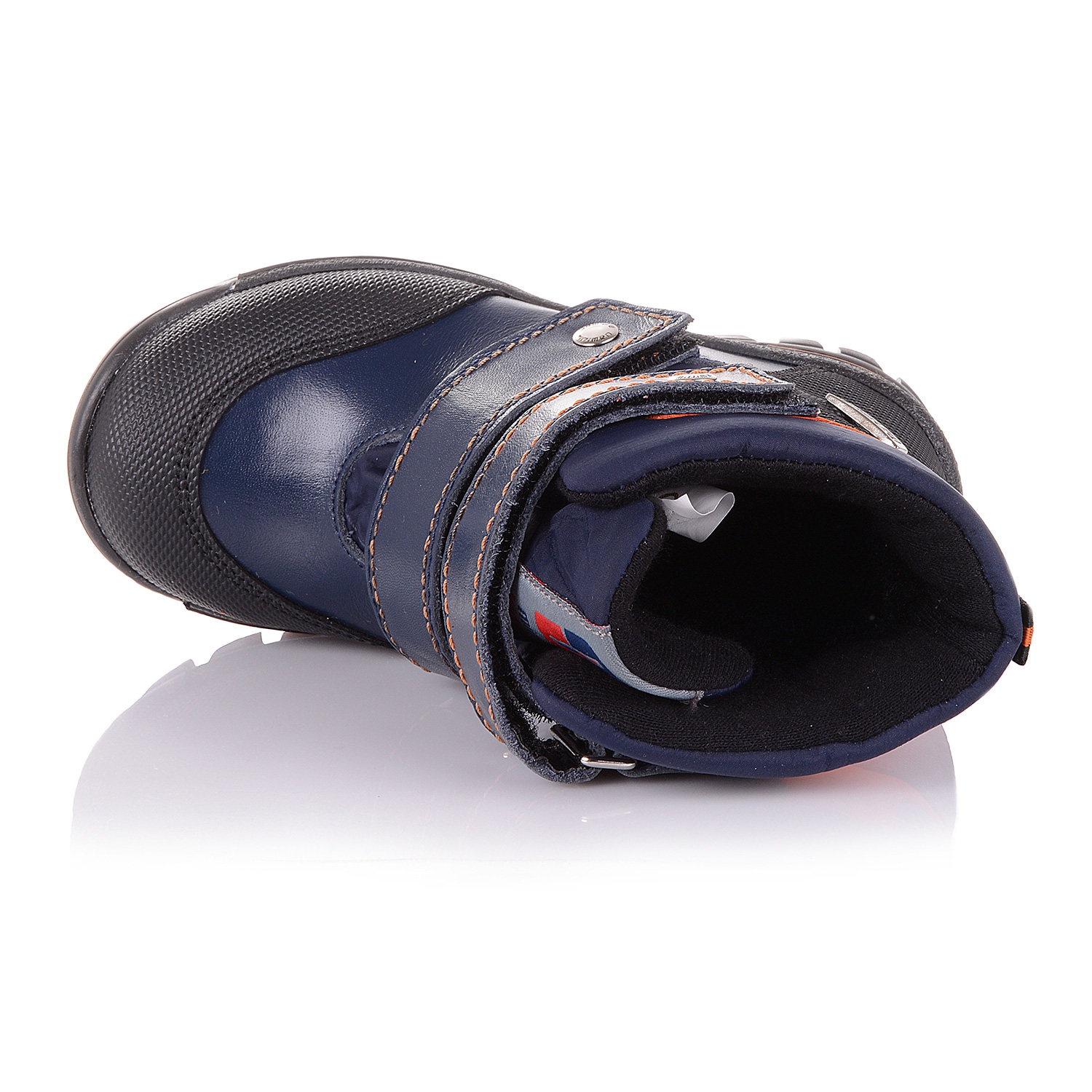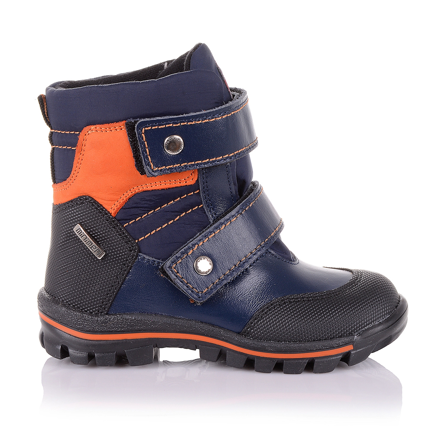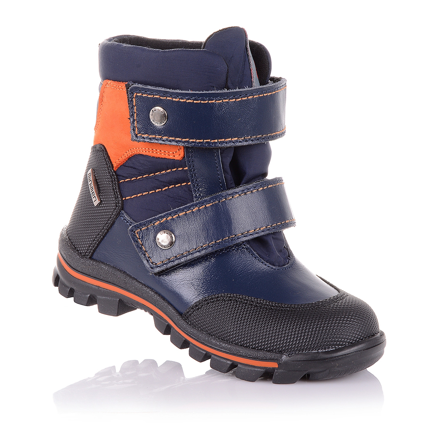 Зимние ботинки фирмы Minimen темно-синего цвета из натуральной кожи со вставками из мембранного текстиля, защитят от влаги и согреют в холодную погоду ножки ребенка! Носок впереди -прорезинен. Подошва из термопласта, дополнительно прошита, разработана специально для холодного времени года, не скользит по мокрой поверхности за счет специальной ребристой подошвы. Закрытый язык с усиленной губкой и фиксация двумя липучками значительно понижает вероятность попадания воды внутрь. Внутри: анатомическая стелька, утеплитель- теплый войлок и натуральный мех мериноса. Усилены носок и пятка для поддержания стопы в правильном положении (препятствует развитию плоскостопия). При выборе ортопедической и ортопрофилактической обуви очень важна уверенность в качестве, ведь Ваш ребенок достоин самого лучшего. Рекомендовано по всем показателям ортопедами!