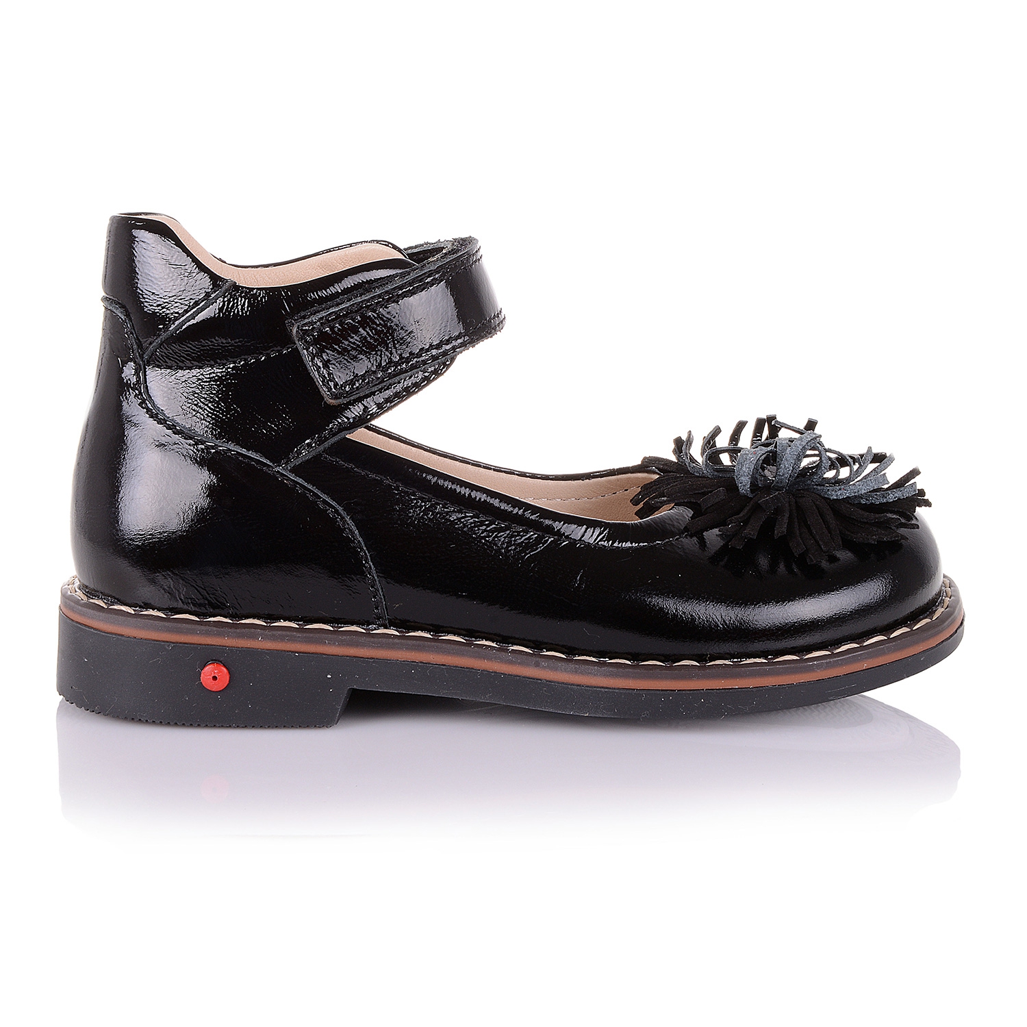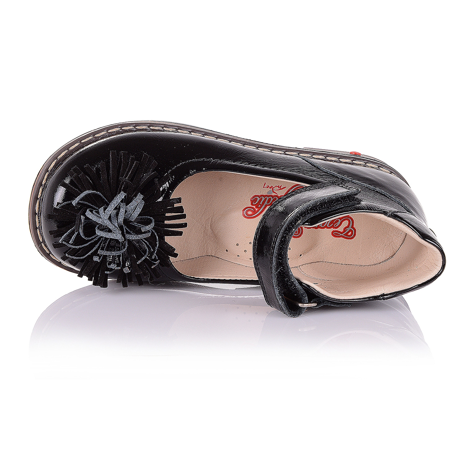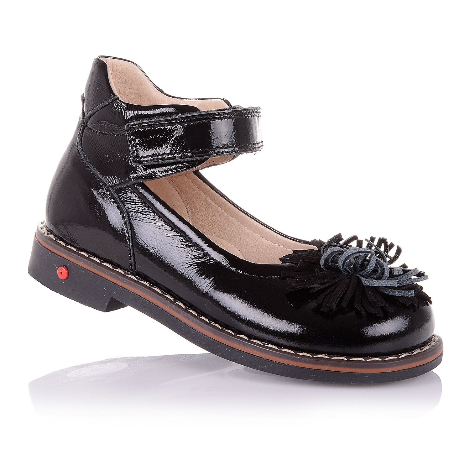 Новинка сезона, ортопедические туфли турецкой фирмы Цезара из натуральной лаковой кожи черного цвета с оригинальным цветком лапша станут идеальным дополнением к образу вашей модницы! Удобная фиксация на липучку позволяет подобрать туфли на ногу разной полноты и высоты свода. Каблук Томаса с удлиненным внутренним краем обеспечит правильную постановку ноги. Анатомическая кожаная стелька с супинатором поддержит свод стопы и поспособствует здоровому развитию мышц. О фиксации голенища и щиколотки позаботятся укрепленные берцы и жесткий задник. А хрупкие суставы будут защищены от чрезмерных нагрузок благодаря амортизационной вставке. Одевая пару обуви такого качества, Ваш ребенок будет чувствовать себя комфортно и эксклюзивно. Соответствие размера: большемерят (возьмите на размер меньше).
