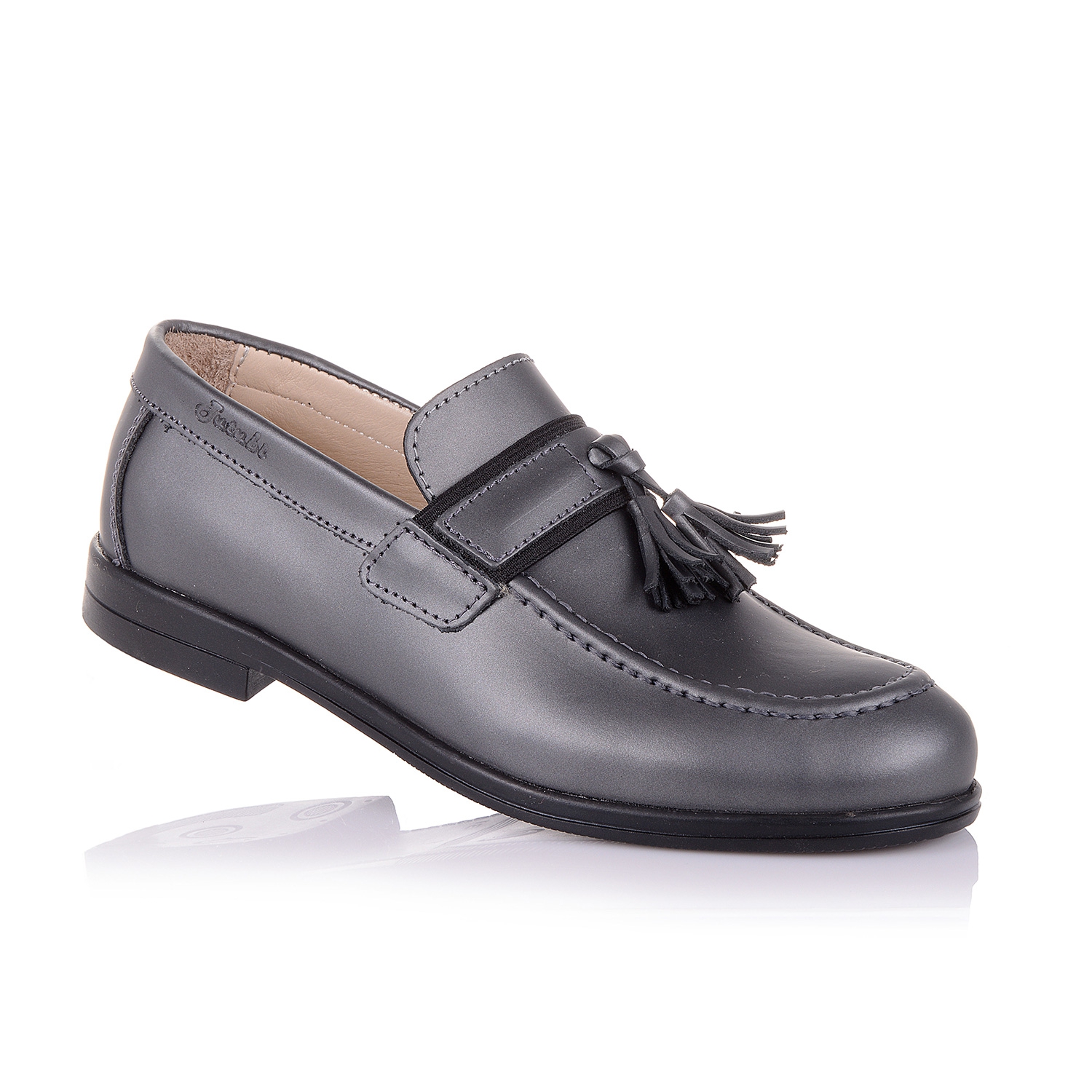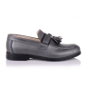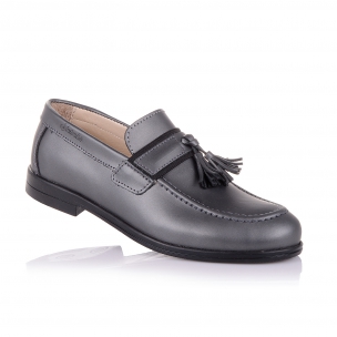 Стильные туфли лоферы с кисточками это великолепный образчик классического стиля с вплетением модных тенденций, что вместе создало гармоничную и красивую модель. Обувь выполнена из натуральной матовой кожи серого цвета. Контрастная анатомическая стелька с твердым супинатором и мягкой прослойкой в пяточной части, поддержит свод стопы и поспособствует здоровому развитию мышц и мягкой походке. О фиксации щиколотки позаботится жесткий задник. Подошва плотная из термокаучука отлично амортизирует при походке. Позвольте вашему ребенку роскошь носить качественную ортопедическую обувь, привлекая восторженные взгляды окружающих.