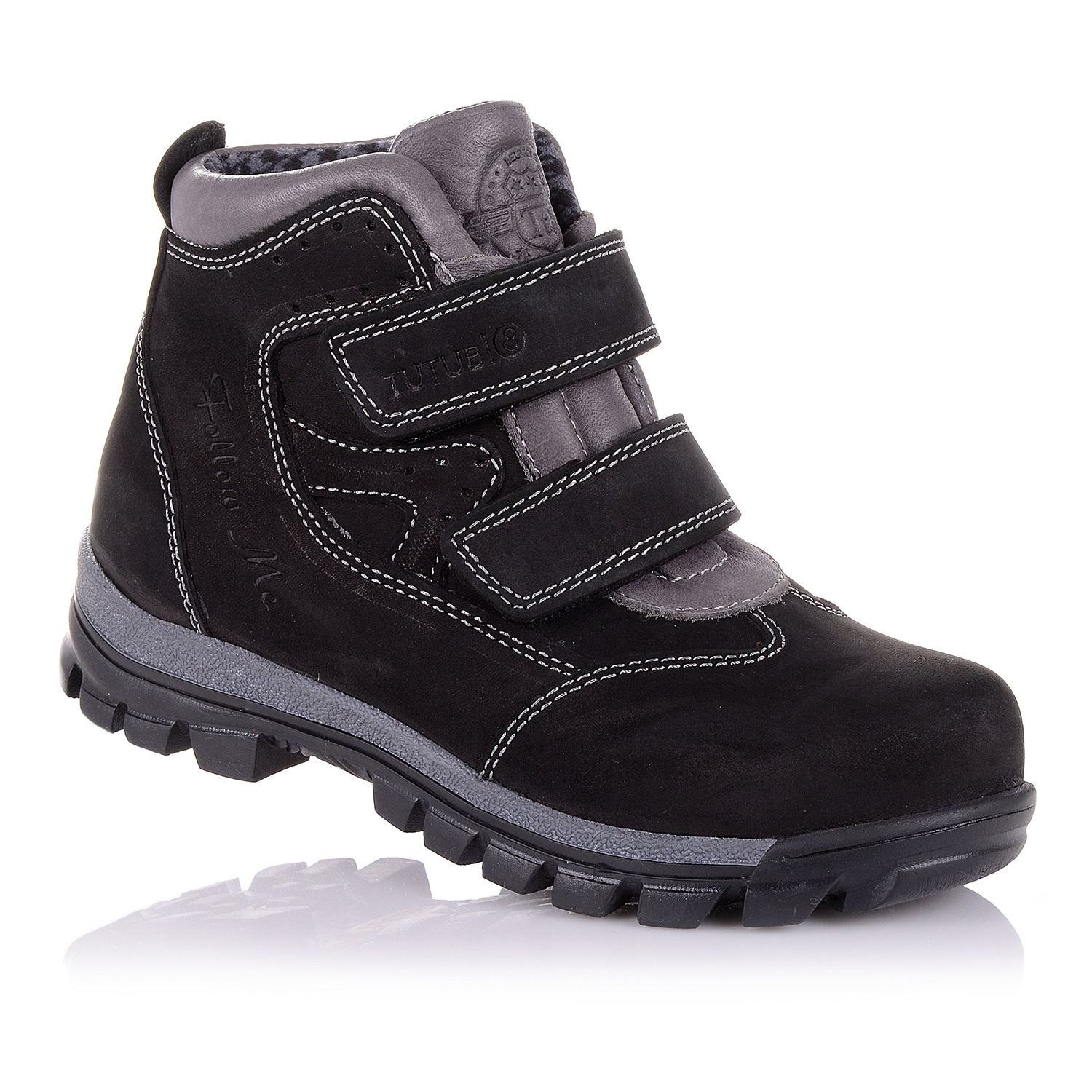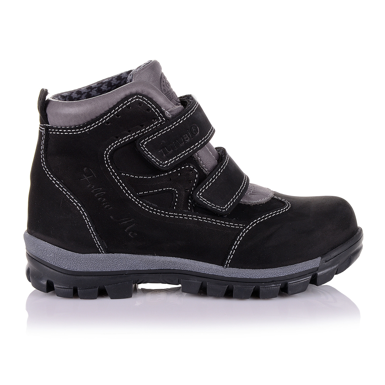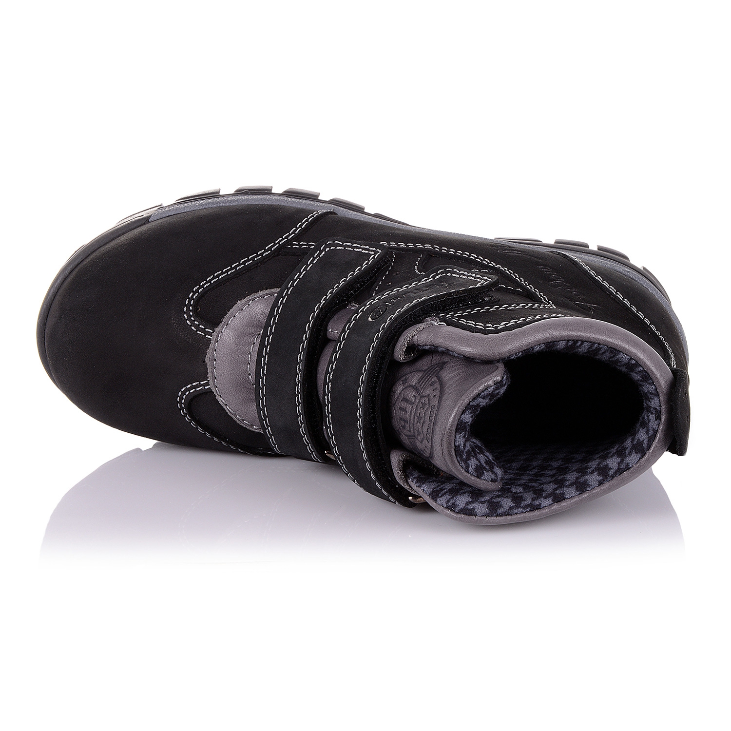 Стильные и удобные демисезонные ботинки- идеальны для города! Снаружи ботинки выполнены из натурального нубука черного цвета, внутри- плотный флис. Удобная фиксация на две липучки позволяет подобрать обувь на ногу разной полноты и высоты свода. Анатомическая стелька с супинатором поддержит свод стопы и поспособствует здоровому развитию мышц. О фиксации голенища и щиколотки позаботятся укрепленные берцы и жесткий задник. А хрупкие суставы будут защищены от чрезмерных нагрузок благодаря амортизационной вставке и высокому протектору на подошве. Не отказывайте своему сокровищу носить правильную ортопедическую обувь класса премиум+.