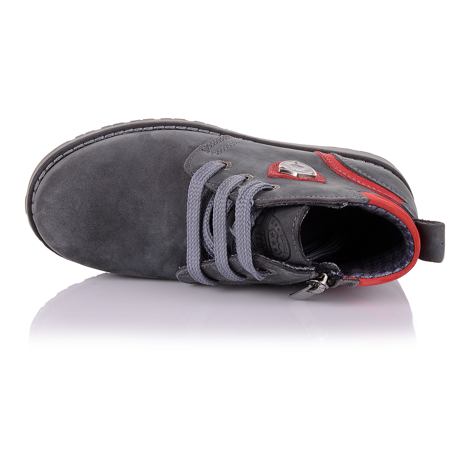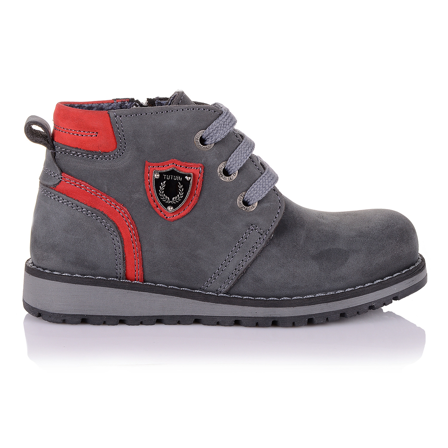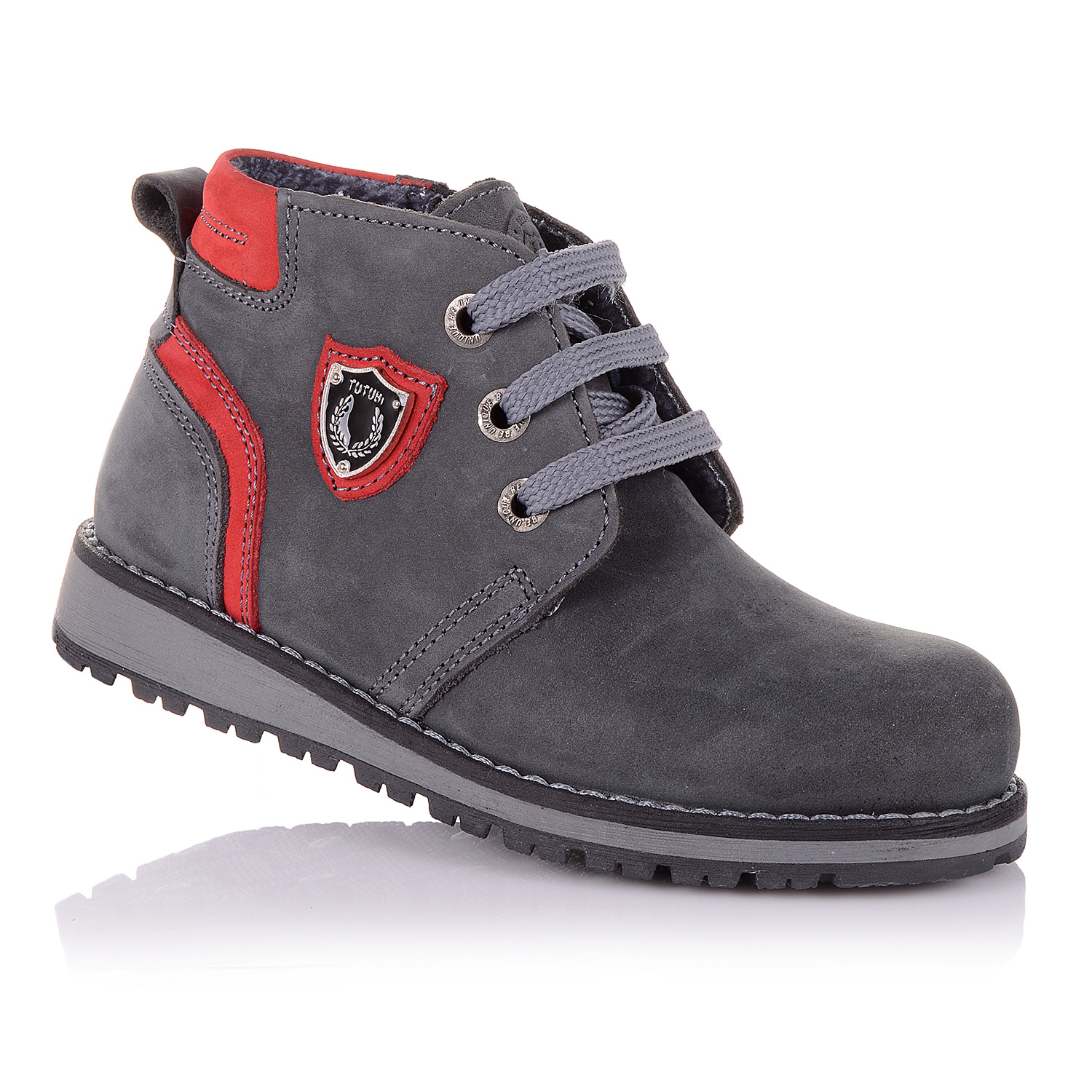 Невероятно стильные и удобные ортопедические полуботинки. Модель выполнена из натурального нубука серого цвета с неброским логотипом производителя сбоку, выглядят достойно и сразу бросаются в глаза. Внутри- плотный флис. Надевать такие ботинки - секундное дело, ведь помимо шнурков в них есть ещё и молния сбоку. Анатомическая стелька с твердым супинатором и мягкой прослойкой в пяточной части, поддержит свод стопы и поспособствует здоровому развитию мышц. О фиксации щиколотки позаботится жесткий задник. Подошва плотная из термокаучука, достаточно хорошо гнется. Экспериментируйте и создавайте самые красивые образы с обувью Тутуби.