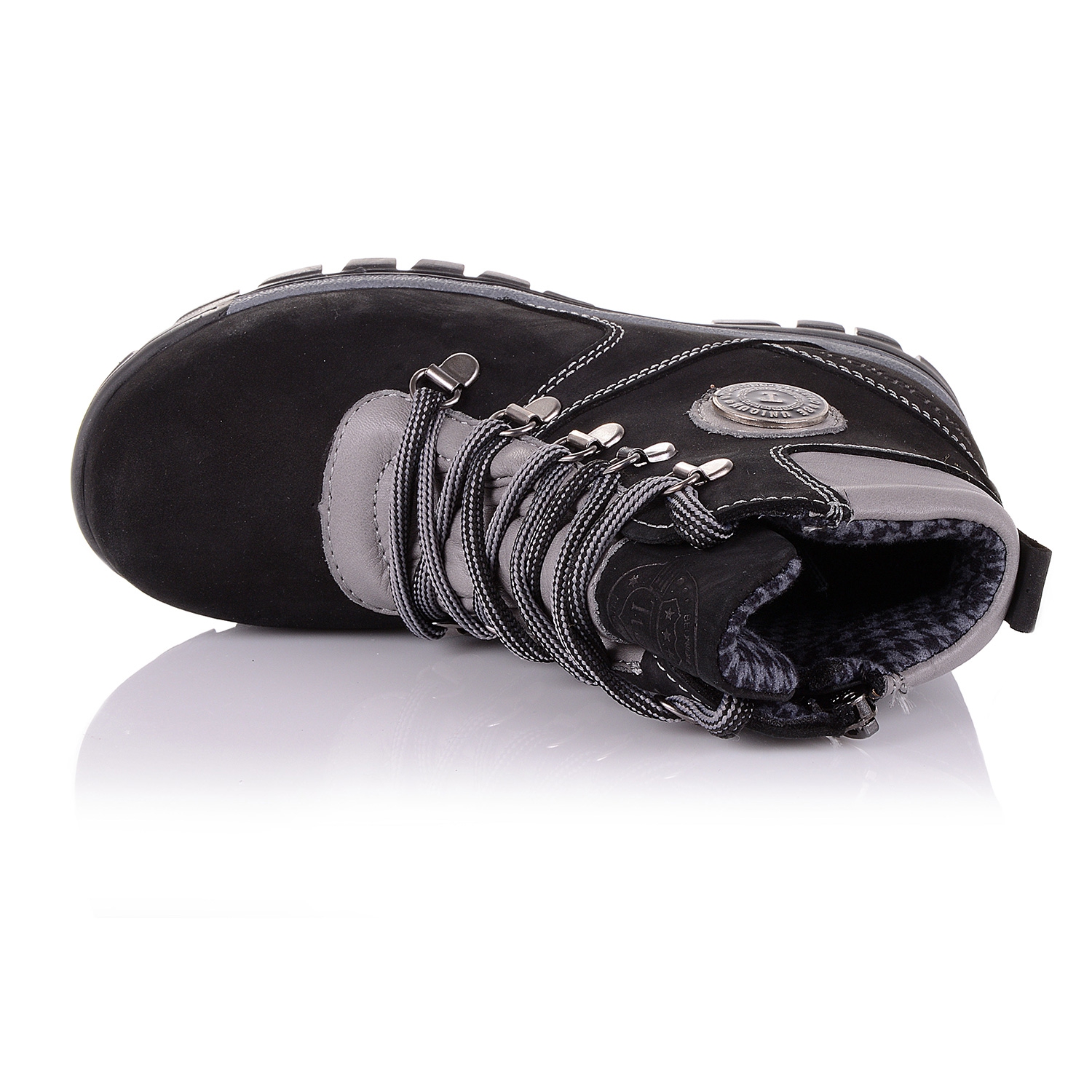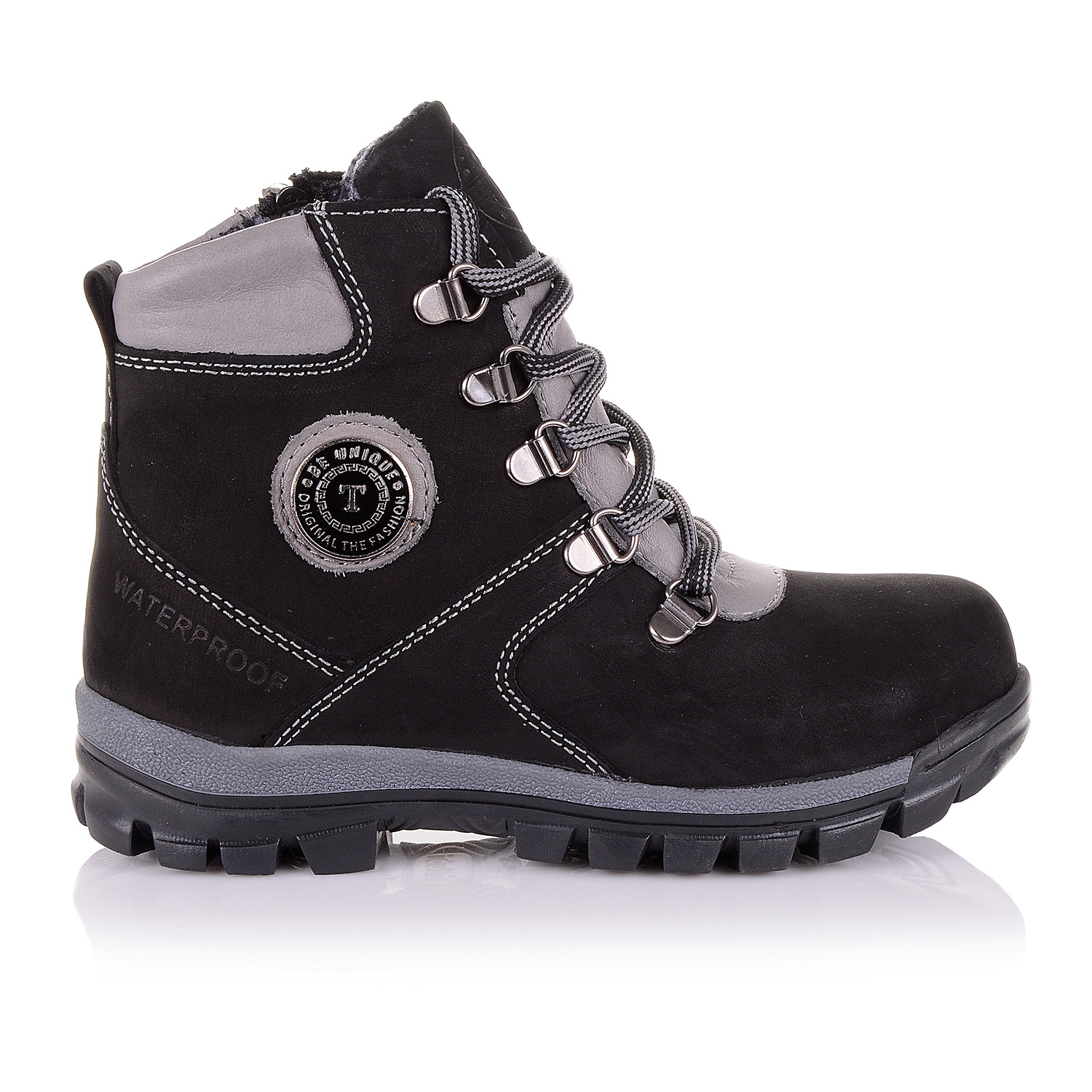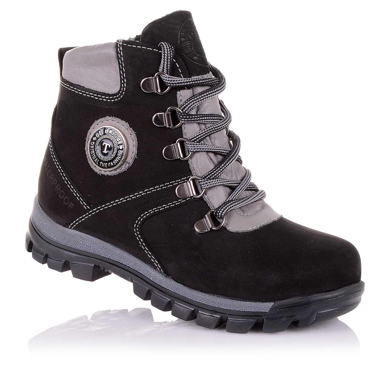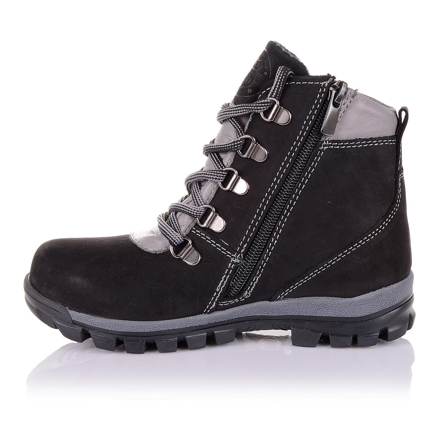 Красивые и аккуратные ботинки сезон осень-весна. Снаружи ботинки выполнены из натурального нубука черного цвета, внутри плотный флис. Высокий сплошной язычок защищает от попадания влаги. Надевать такие ботинки - секундное дело, ведь помимо шнурков в них есть ещё и молния сбоку. Анатомическая стелька с супинатором поддержит свод стопы и поспособствует здоровому развитию мышц. О фиксации голенища и щиколотки позаботятся укрепленные берцы и жесткий задник. А хрупкие суставы будут защищены от чрезмерных нагрузок благодаря амортизации термопластичной тракторной подошвы. В такой обуви класса премиум +, ребенок будет чувствовать себя удобно и эксклюзивно.