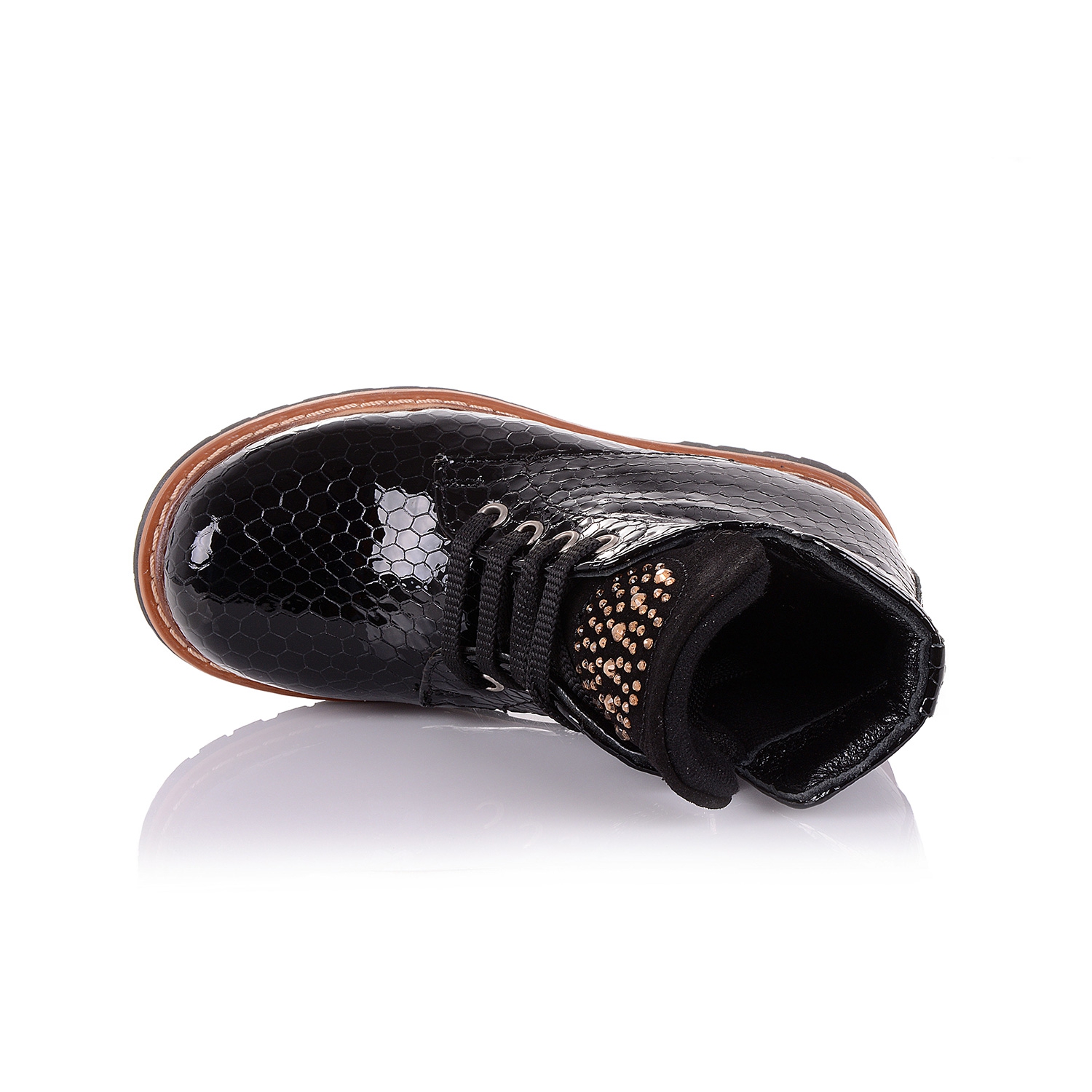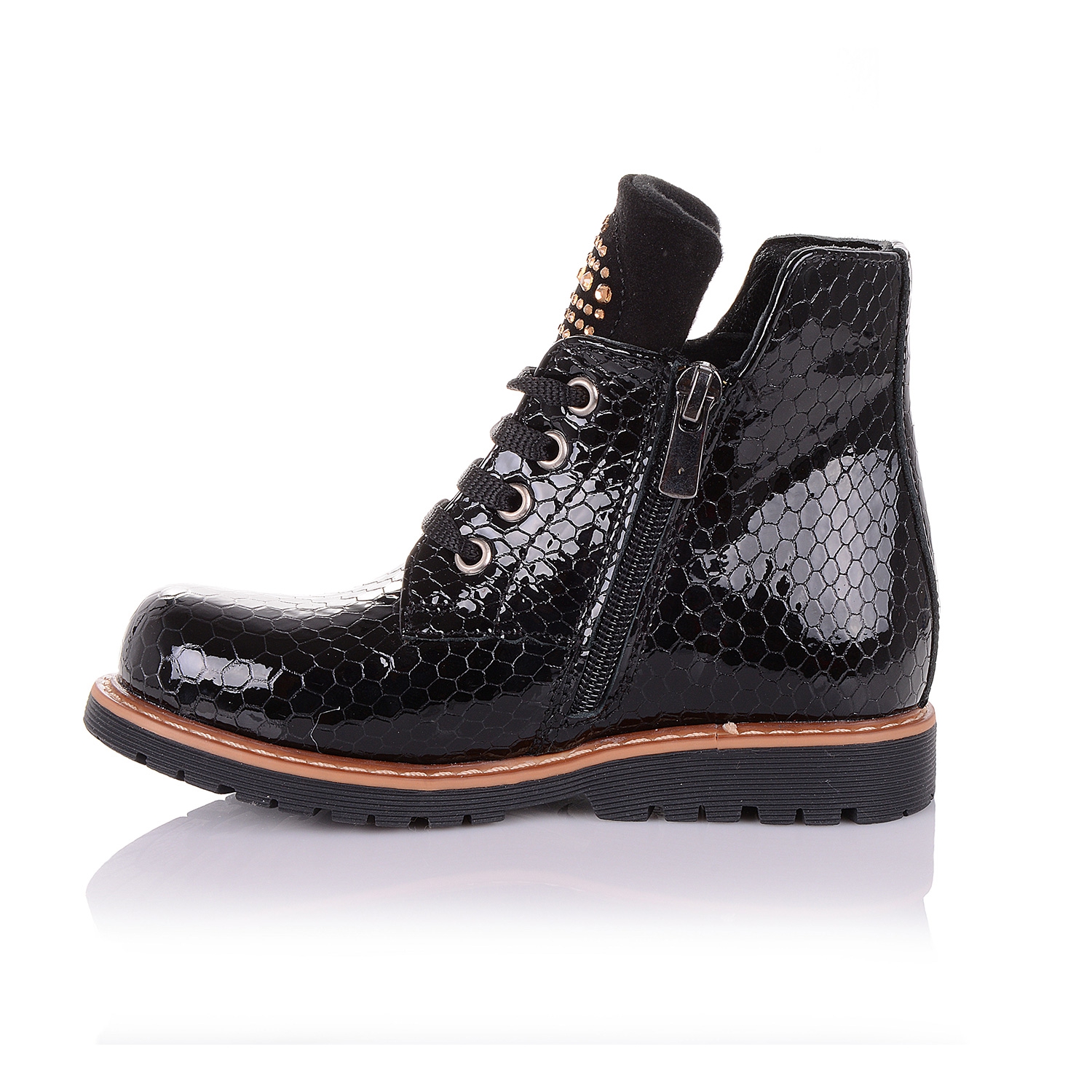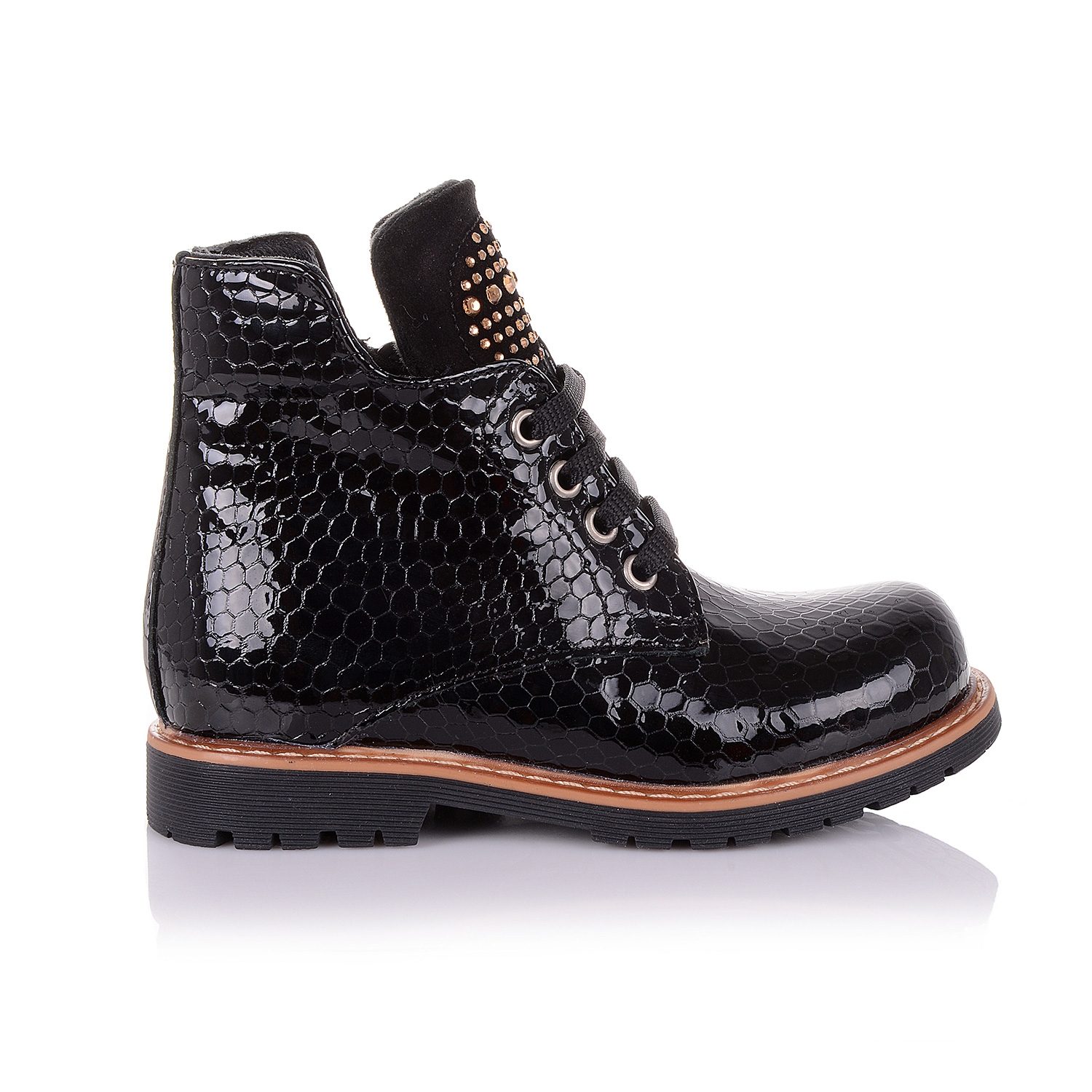 Шикарные ортопедические ботинки сезон осень 2017г. для незабываемого образа Вашей модницы. Ботинки выполнены из натуральной лаковой кожи черного цвета. Высокий язычок черного цвета со стразами придает образу оригинальности. Надевать такие ботинки - секундное дело, ведь помимо шнурков в них есть ещё и молния сбоку. Каблук Томаса с удлиненным внутренним краем обеспечит правильную постановку ноги. Анатомическая стелька с супинатором поддержит свод стопы и поспособствует здоровому развитию мышц. О фиксации голенища и щиколотки позаботятся укрепленные берцы и жесткий задник. А хрупкие суставы будут защищены от чрезмерных нагрузок благодаря амортизации термопластичной тракторной подошвы. В такой обуви класса премиум +, ребенок будет чувствовать себя эксклюзивно!