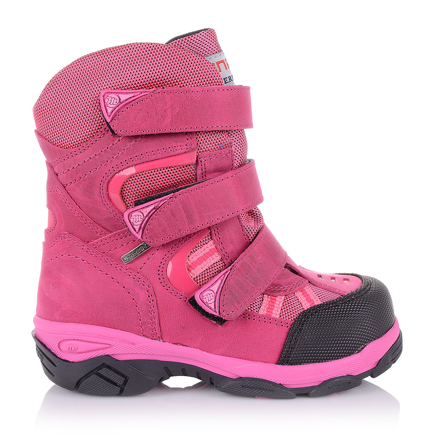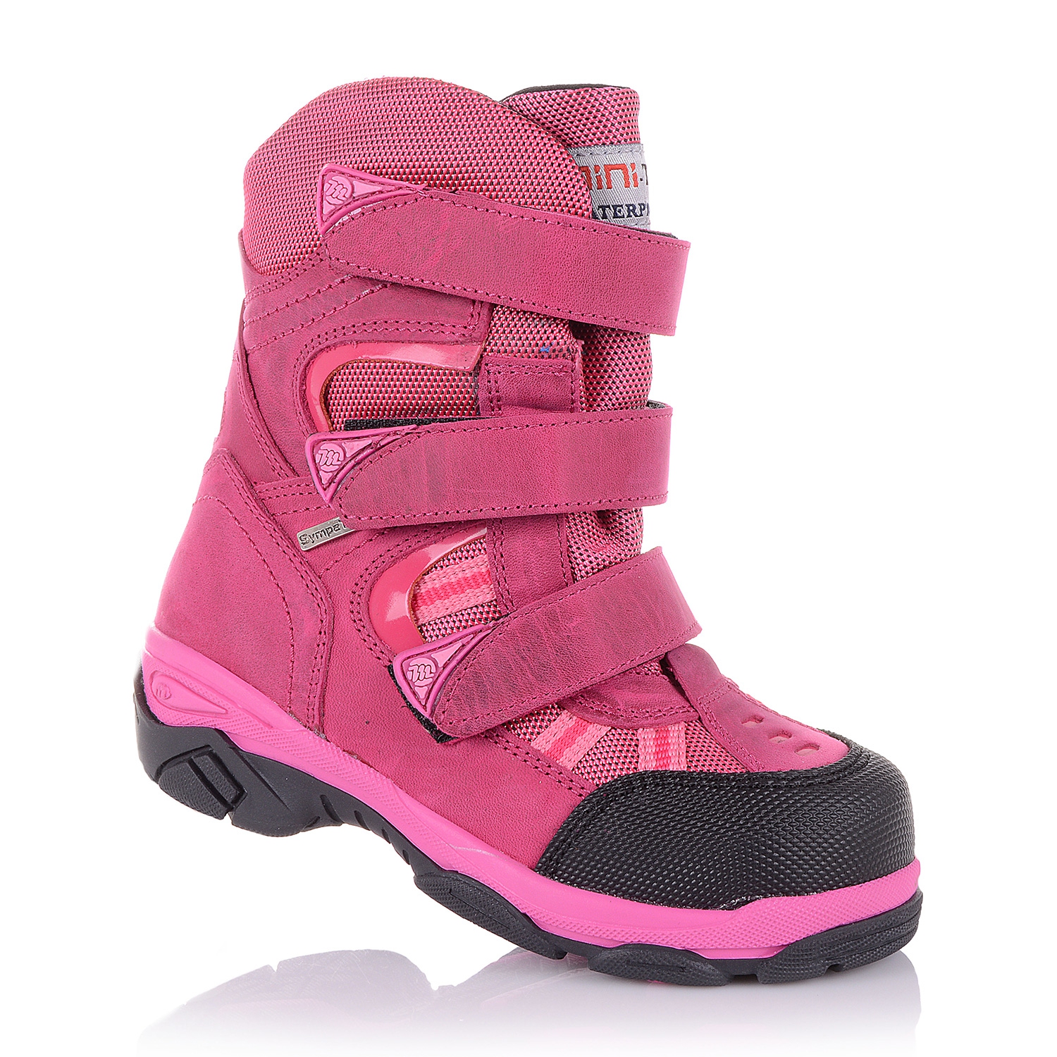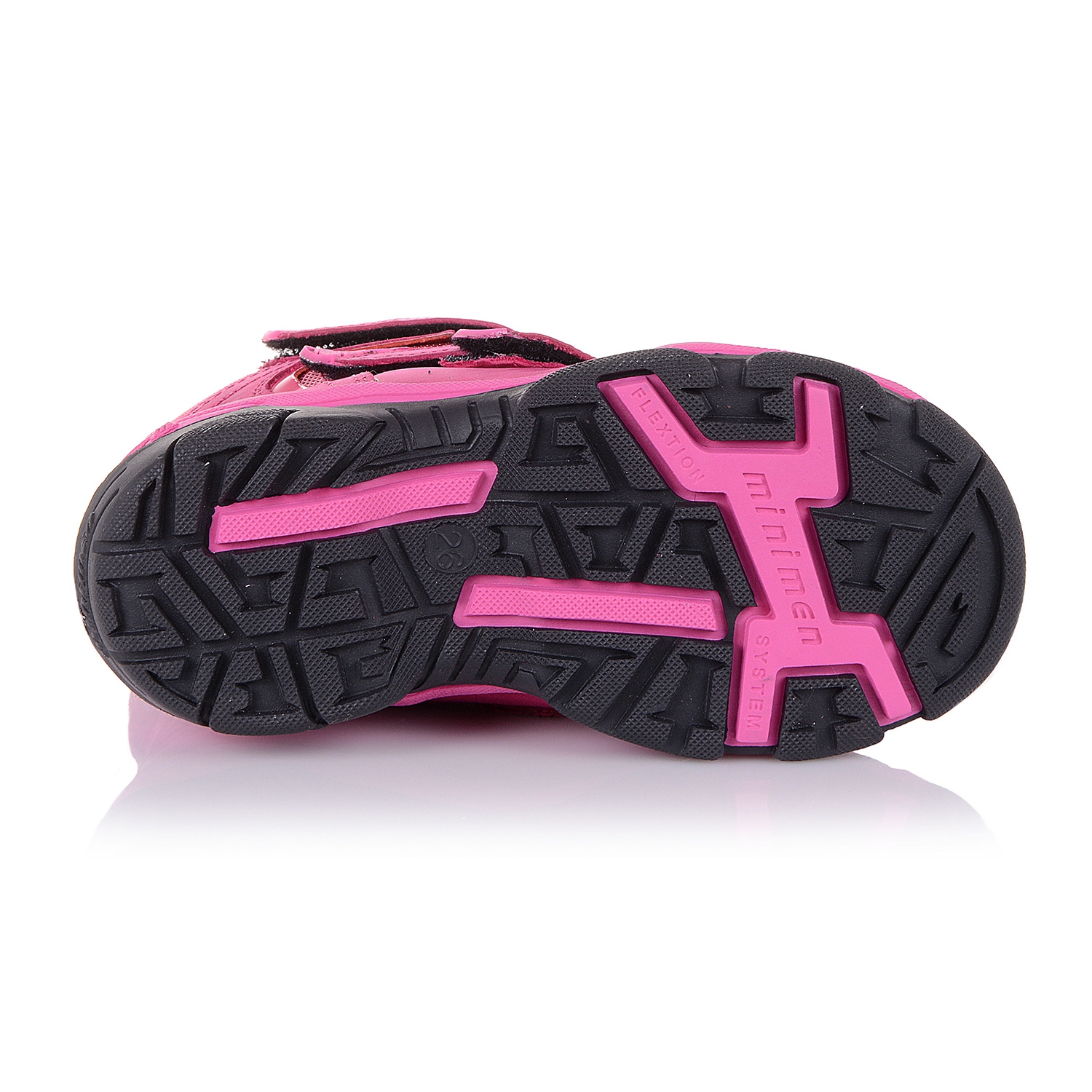 Термоботинки фирмы Minimen ярко-розового цвета из натурального жирного нубука со вставками из мембранного текстиля, защитят от влаги и согреют в холодную погоду ножки ребенка! Подошва из термопласта, дополнительно прошита, разработана специально для холодного времени года, не скользит по мокрой поверхности за счет специальной ребристой подошвы. Закрытый язык с усиленной губкой и фиксация тремя липучками значительно понижает вероятность попадания воды внутрь. Носок - прорезиненный. Температурный режим до -30. Внутри: анатомическая стелька, утеплитель- теплый войлок. Кожа снаружи хромового дубления, а мембранная ткань GORE-TEX не промокает, но помогает ноге "дышать". Усилены носок и пятка для поддержания стопы в правильном положении (препятствует развитию плоскостопия). При выборе ортопедической и ортопрофилактической обуви очень важна уверенность в качестве, ведь Ваш ребенок достоин самого лучшего. Рекомендовано по всем показателям ортопедами!