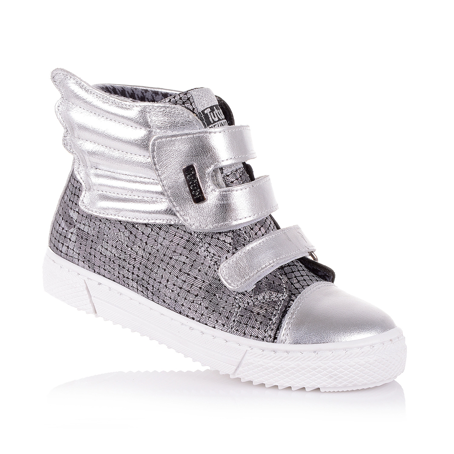 Шикарные демисезонные ботинки сезон осень 2017г. для незабываемого образа Вашей модницы. Ботинки выполнены из натуральной кожи серебристого цвета. Небольшое крыло придает образу оригинальности. Фиксация двумя липучками. Анатомическая стелька с супинатором поддержит свод стопы и поспособствует здоровому развитию мышц, а твердый задник обеспечивают физиологически правильное положение ножки. В такой обуви класса премиум +, ребенок будет чувствовать себя эксклюзивно!