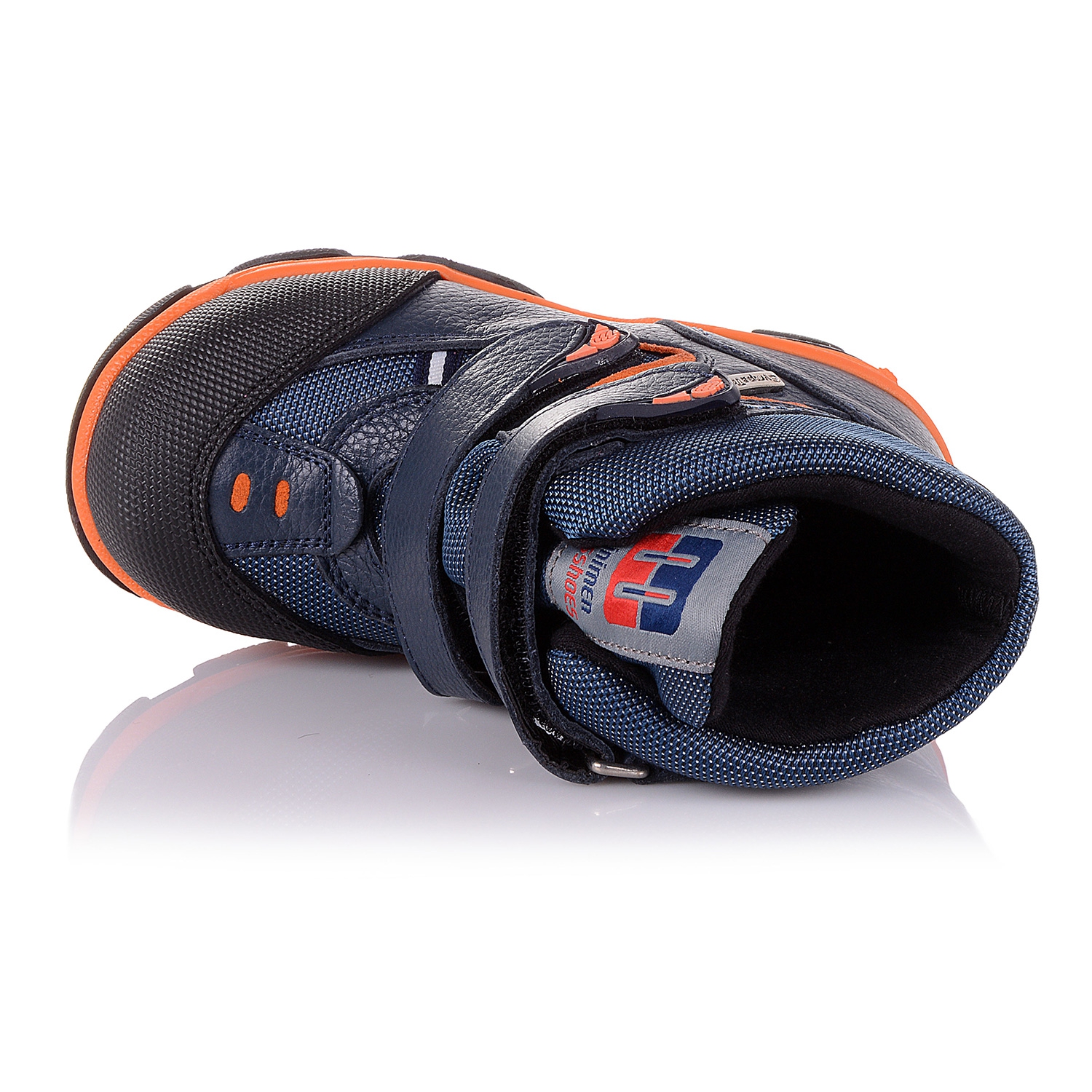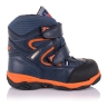 Термоботинки фирмы Minimen темно-синего цвета из натуральной кожи со вставками из мембранного текстиля, защитят от влаги и согреют в холодную погоду ножки ребенка! Подошва из термопласта, дополнительно прошита, разработана специально для холодного времени года, не скользит по мокрой поверхности за счет специальной ребристой подошвы. Закрытый язык с усиленной губкой и фиксация двумя липучками значительно понижает вероятность попадания воды внутрь. Носок - прорезиненный. Температурный режим до -30. Внутри: анатомическая стелька, утеплитель- теплый войлок. Кожа снаружи хромового дубления, а мембранная ткань GORE-TEX не промокает, но помогает ноге "дышать". Усилены носок и пятка для поддержания стопы в правильном положении (препятствует развитию плоскостопия). При выборе ортопедической и ортопрофилактической обуви очень важна уверенность в качестве, ведь Ваш ребенок достоин самого лучшего. Рекомендовано по всем показателям ортопедами!