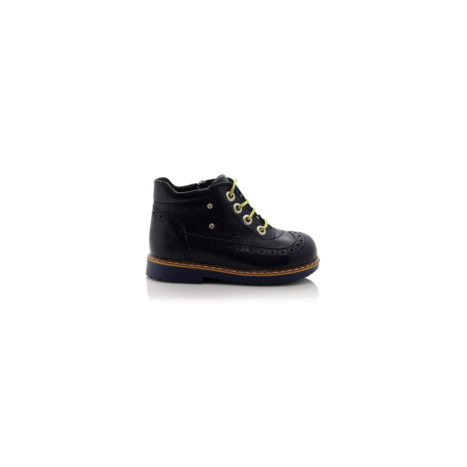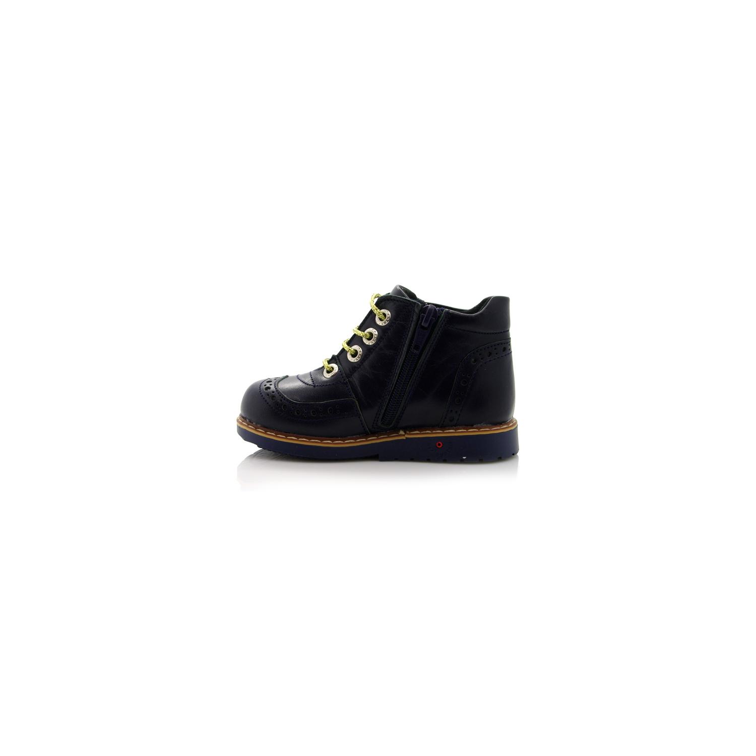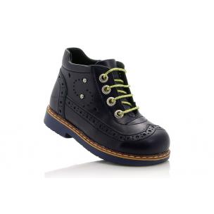 Ботинки Woopy orthopedic темно-синего (почти черного) цвета. Сверху по подъему регулируются шнурками, сбоку на молнии. Снаружи кожаные, внутри утепленные флисом. Высокая твердая пятка, супинатор и ортопедический каблук Томаса.