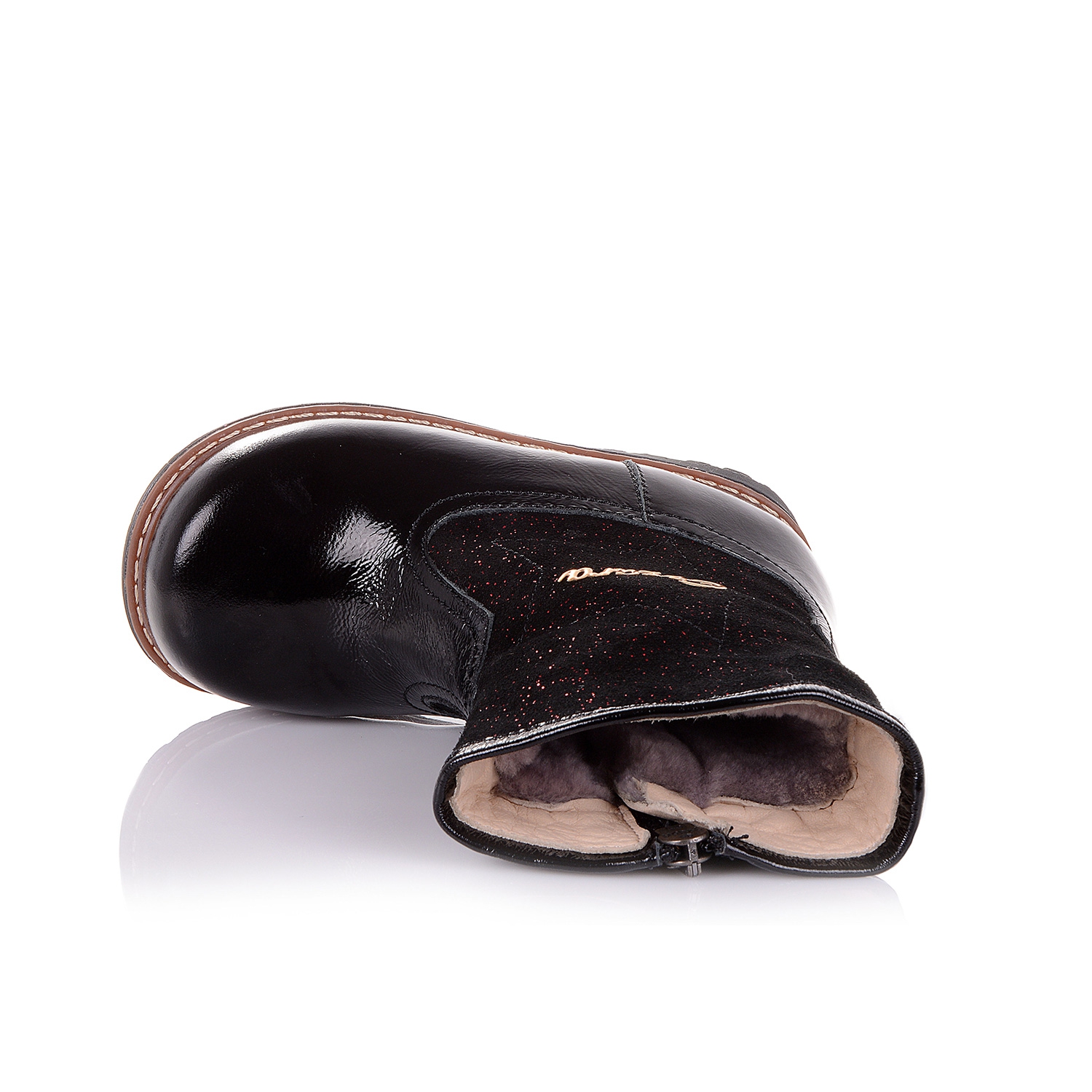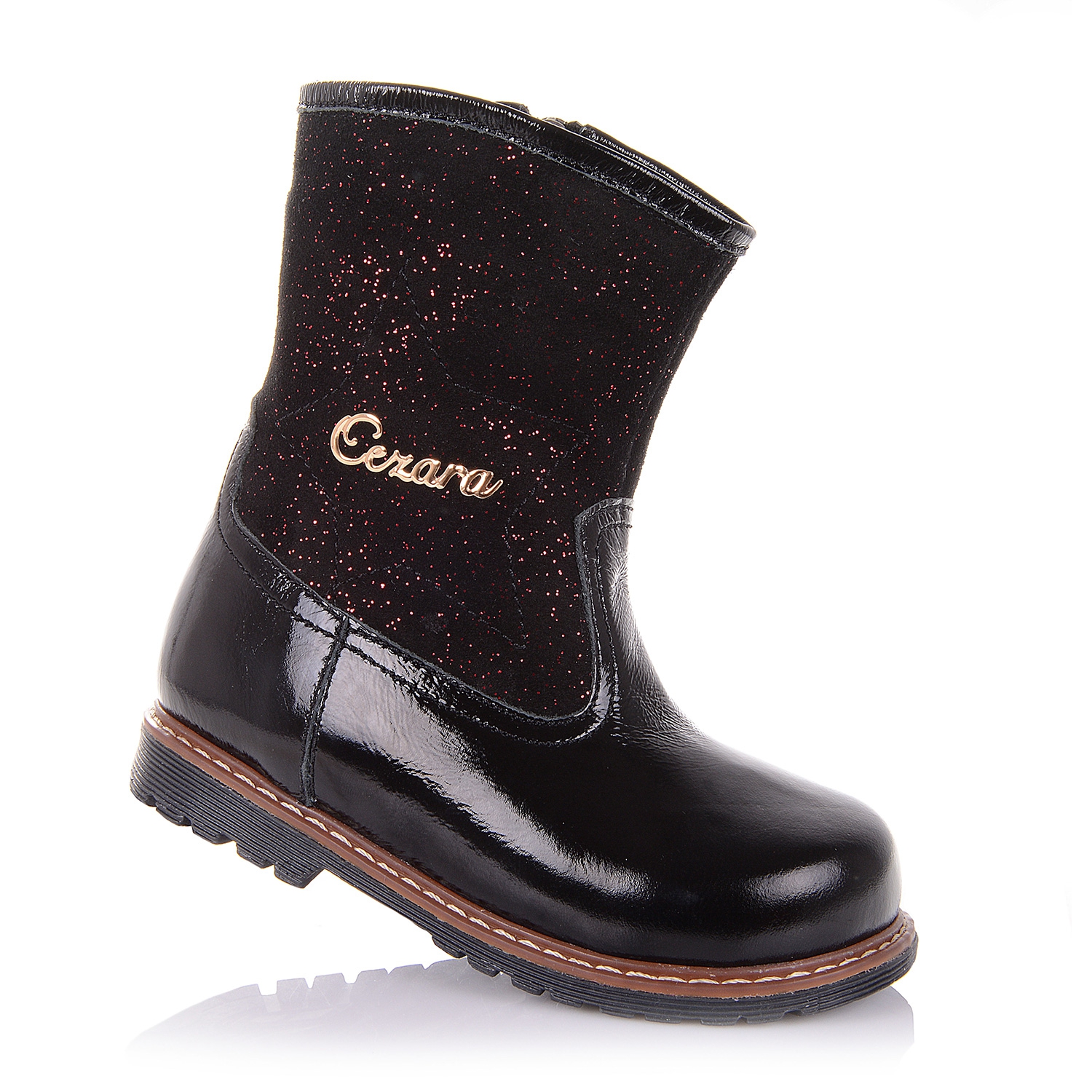 Супер-стильные ортопедические зимние ботинки для незабываемого образа Вашей модницы. Снаружи ботинки выполнены из натуральной кожи черного цвета в сочетании с натуральной замшей. Внутри- натуральный мех. Надевать такие ботинки - секундное дело, ведь они на молнии. Каблук Томаса с удлиненным внутренним краем обеспечит правильную постановку ноги. Анатомическая стелька с супинатором поддержит свод стопы и поспособствует здоровому развитию мышц. О фиксации голенища и щиколотки позаботятся укрепленные берцы и жесткий задник. В такой обуви класса премиум +, ребенок будет приковывать взгляды окружающих.