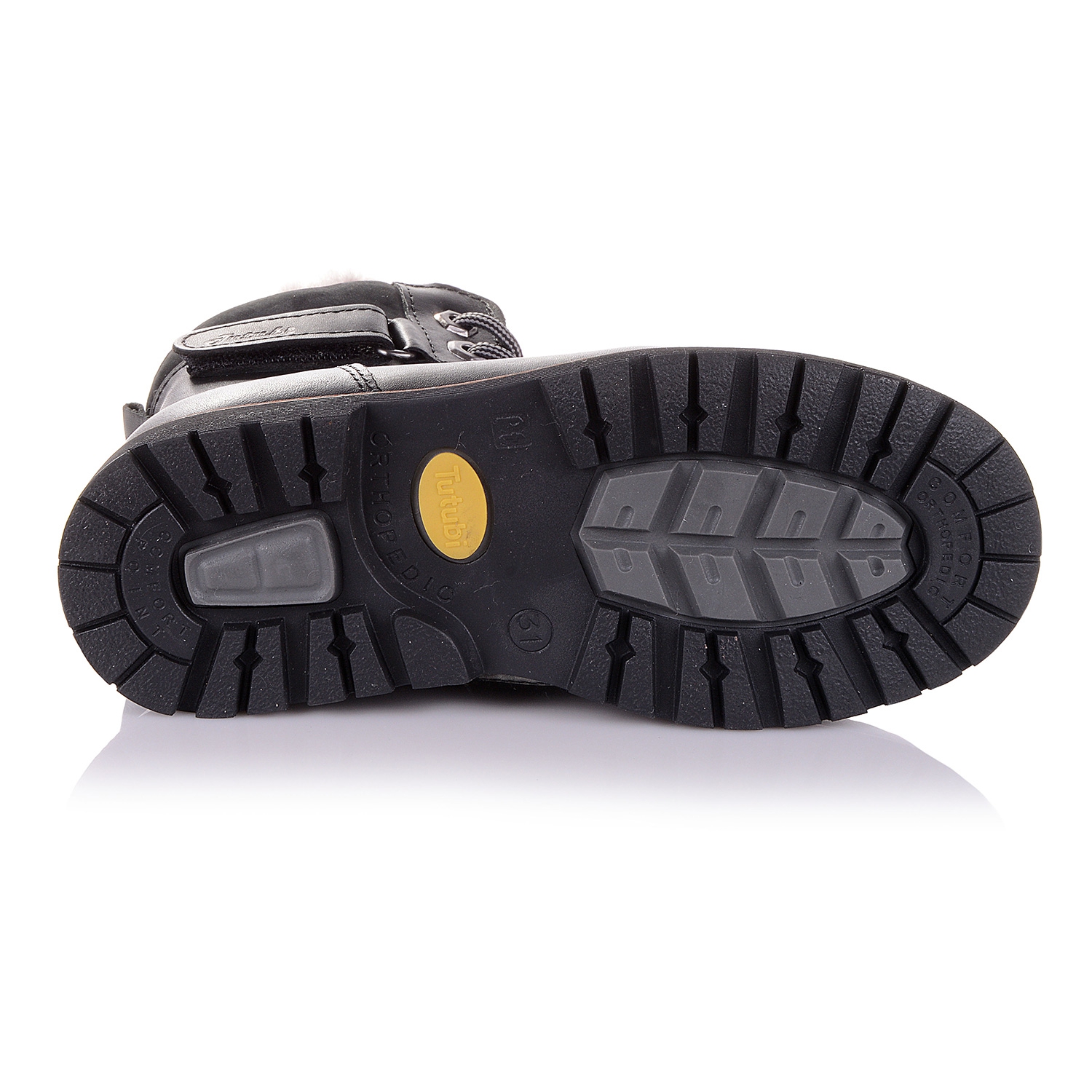 Отличного качества модель ортопедических зимних ботинок- идеальный вариант для зимы. Снаружи ботинки выполнены из натуральной кожи (имеет водоотталкивающее свойство) черного цвета. Высокий широкий язычок защищает от попадания снега и влаги. Надевать такие ботинки - секундное дело, ведь помимо шнурков в них есть ещё и молния сбоку. Каблук Томаса с удлиненным внутренним краем обеспечит правильную постановку ноги. Анатомическая стелька с супинатором поддержит свод стопы и поспособствует здоровому развитию мышц. О фиксации голенища и щиколотки позаботятся укрепленные берцы и жесткий задник. А хрупкие суставы будут защищены от чрезмерных нагрузок благодаря амортизации термопластичной тракторной подошвы. Эта пара подходит для профилактики плосковальгусной деформации стопы. В такой обуви класса премиум +, ребенок будет чувствовать себя эксклюзивно и комфортно!