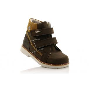 Ботинки ортопедические Woopy orthopedic шоколадного цвета. Сверху фиксируются двумя липучками, снаружи гладкий нубук, внутри - флис. Высокая твердая пятка, супинатор и ортопедический каблук Томаса.