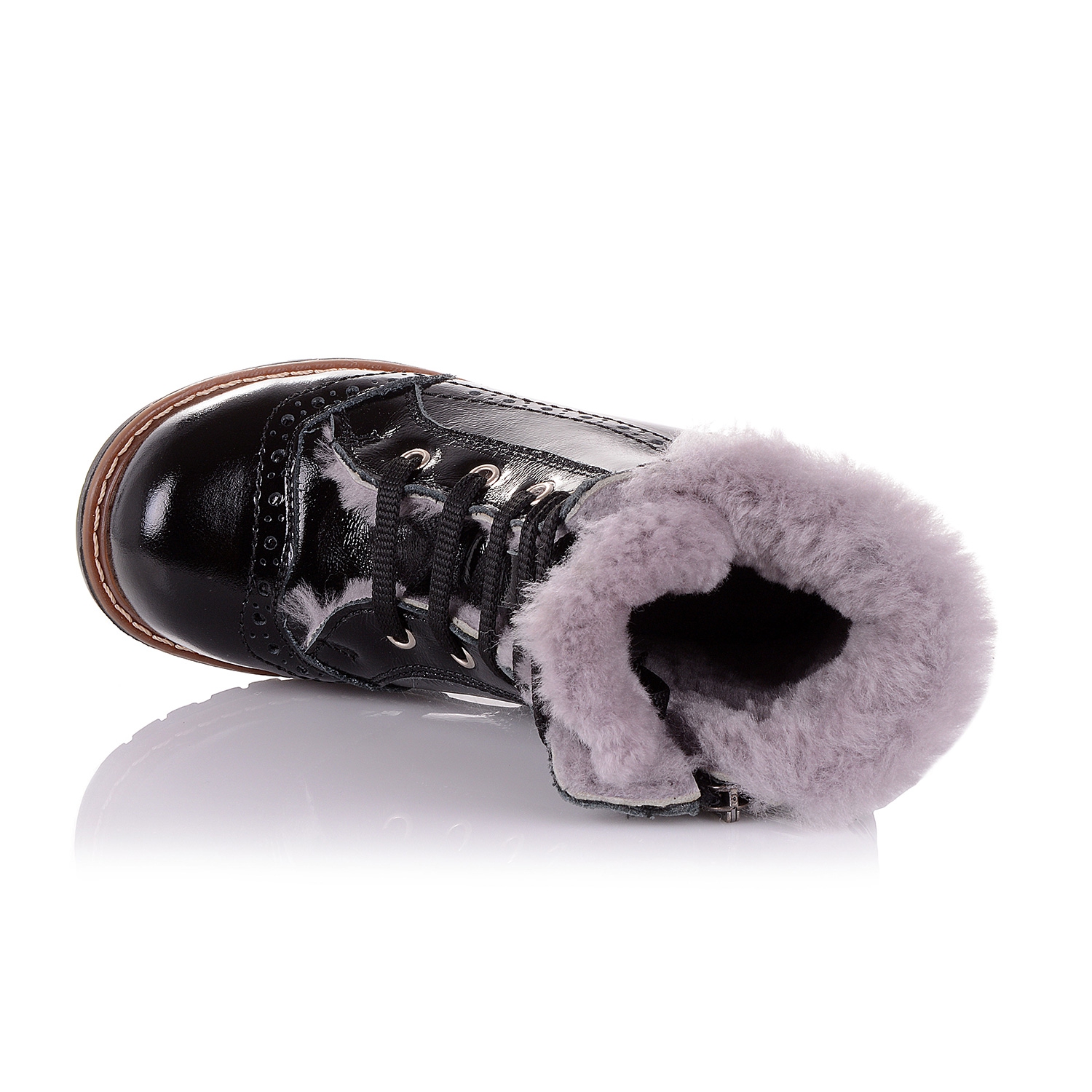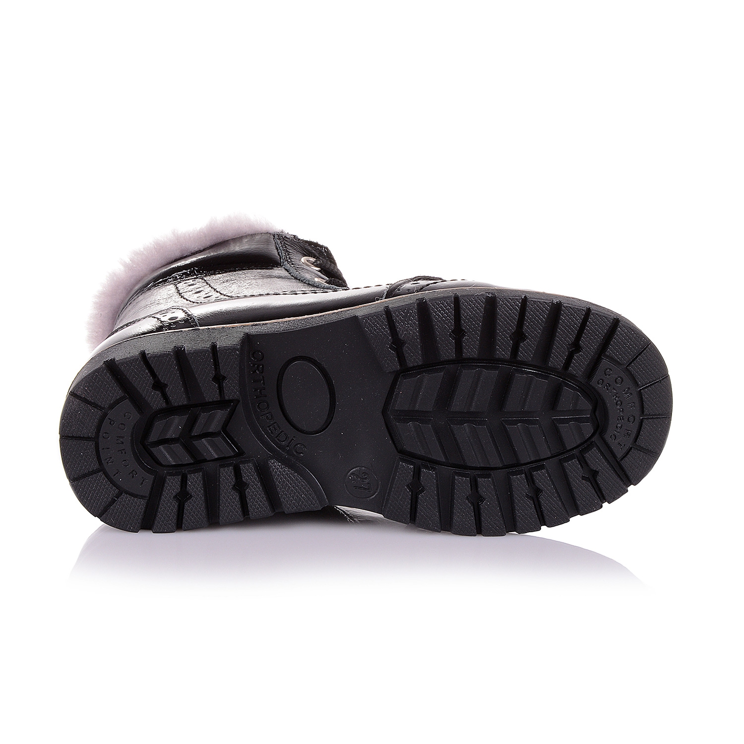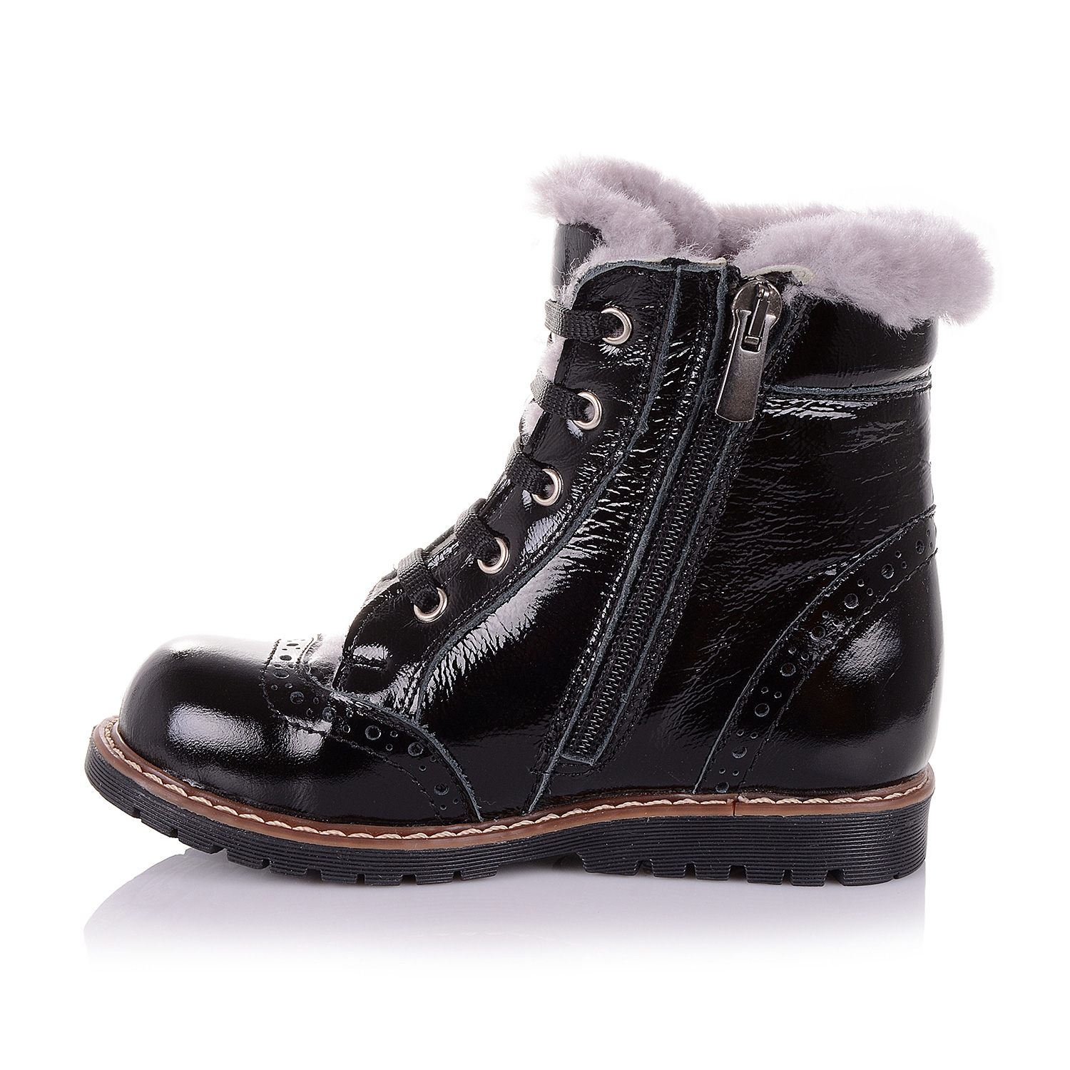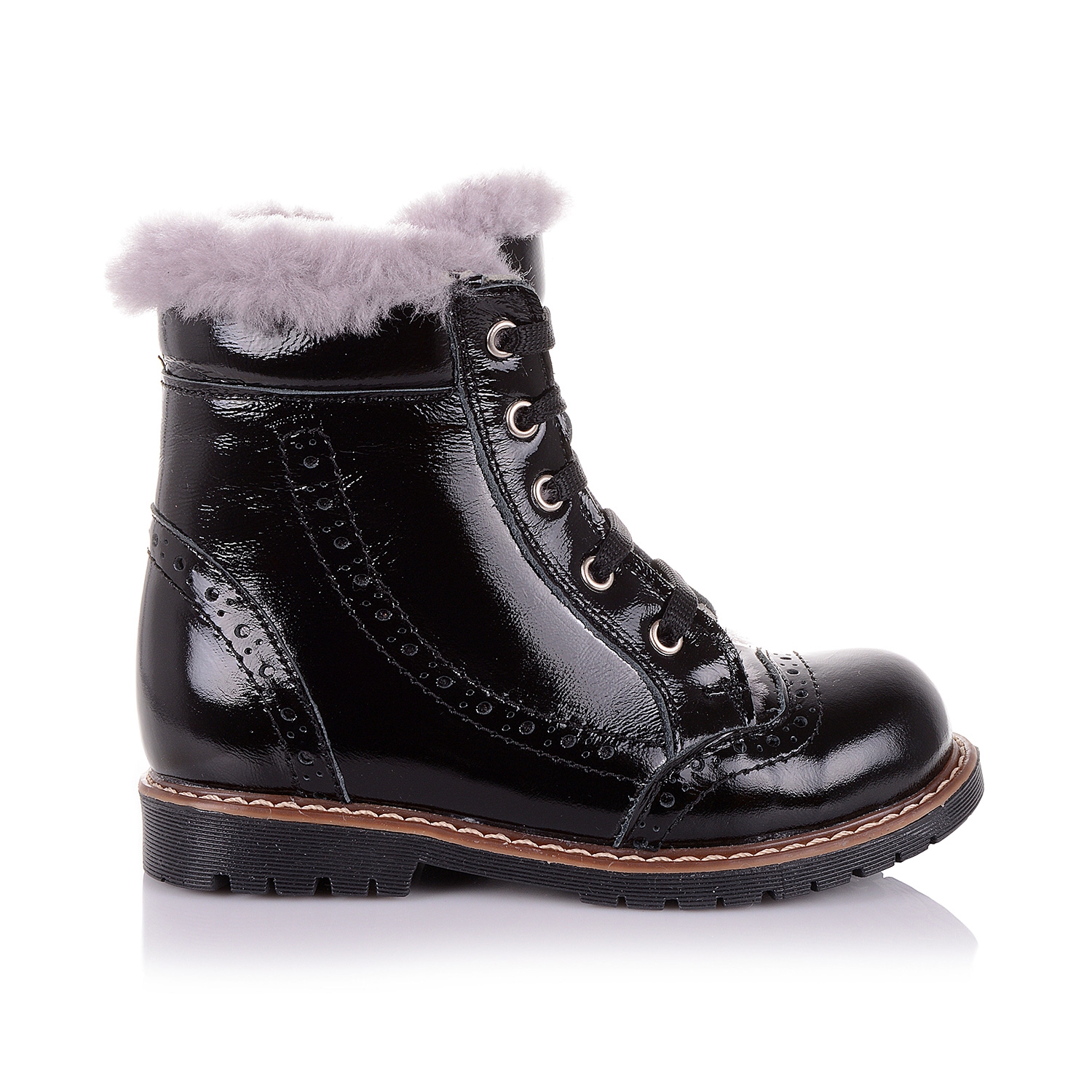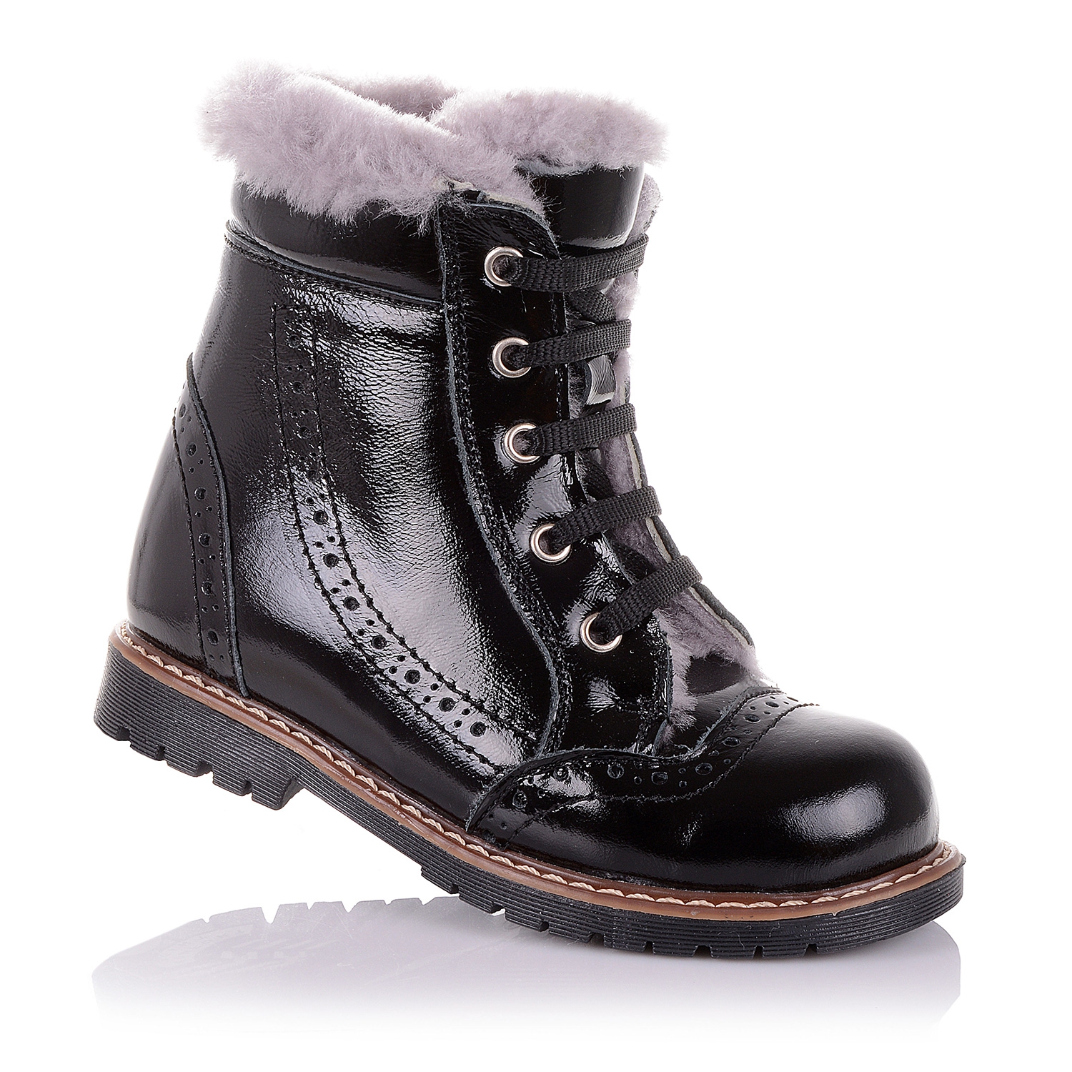 Практичные и аккуратные ортопедические ботинки сезон зима. Снаружи ботинки выполнены из натуральной лаковой кожи черного цвета. Высокий широкий язычок защищает от попадания снега и влаги. Надевать такие ботинки - секундное дело, ведь помимо шнурков в них есть ещё и молния сбоку. Каблук Томаса с удлиненным внутренним краем обеспечит правильную постановку ноги. Анатомическая стелька с супинатором поддержит свод стопы и поспособствует здоровому развитию мышц. О фиксации голенища и щиколотки позаботятся укрепленные берцы и жесткий задник. А хрупкие суставы будут защищены от чрезмерных нагрузок благодаря амортизации термопластичной тракторной подошвы. Эта пара подходит для профилактики плосковальгусной деформации стопы. В такой обуви класса премиум +, ребенок будет чувствовать себя эксклюзивно!
