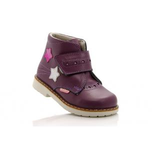 Ботинки Woopy orthopedic баклажанового цвета. Сверху по подъему регулируются широкой липучкой. Снаружи кожаные, внутри утепленные флисом. Высокая твердая пятка, супинатор и ортопедический каблук Томаса.