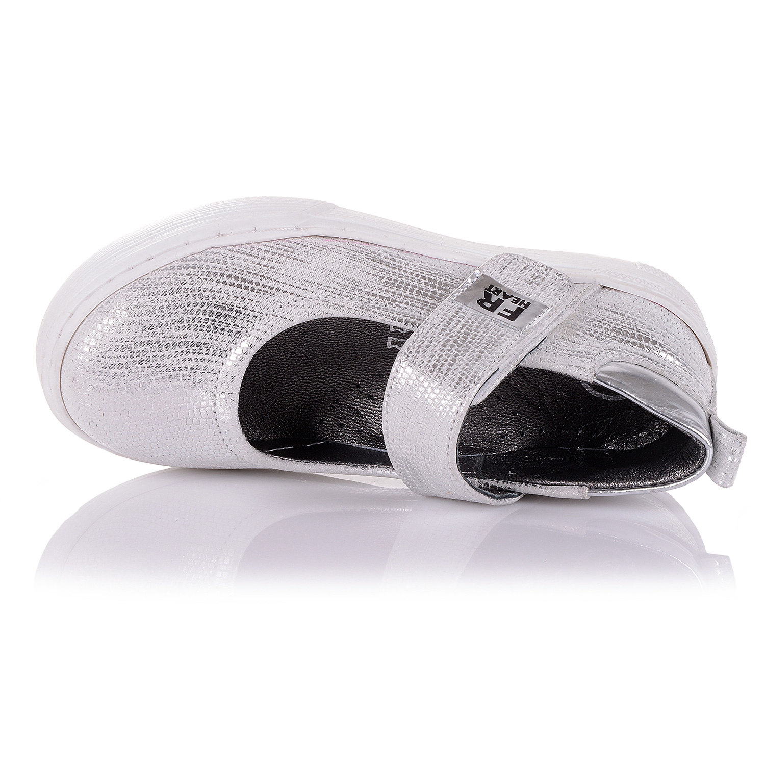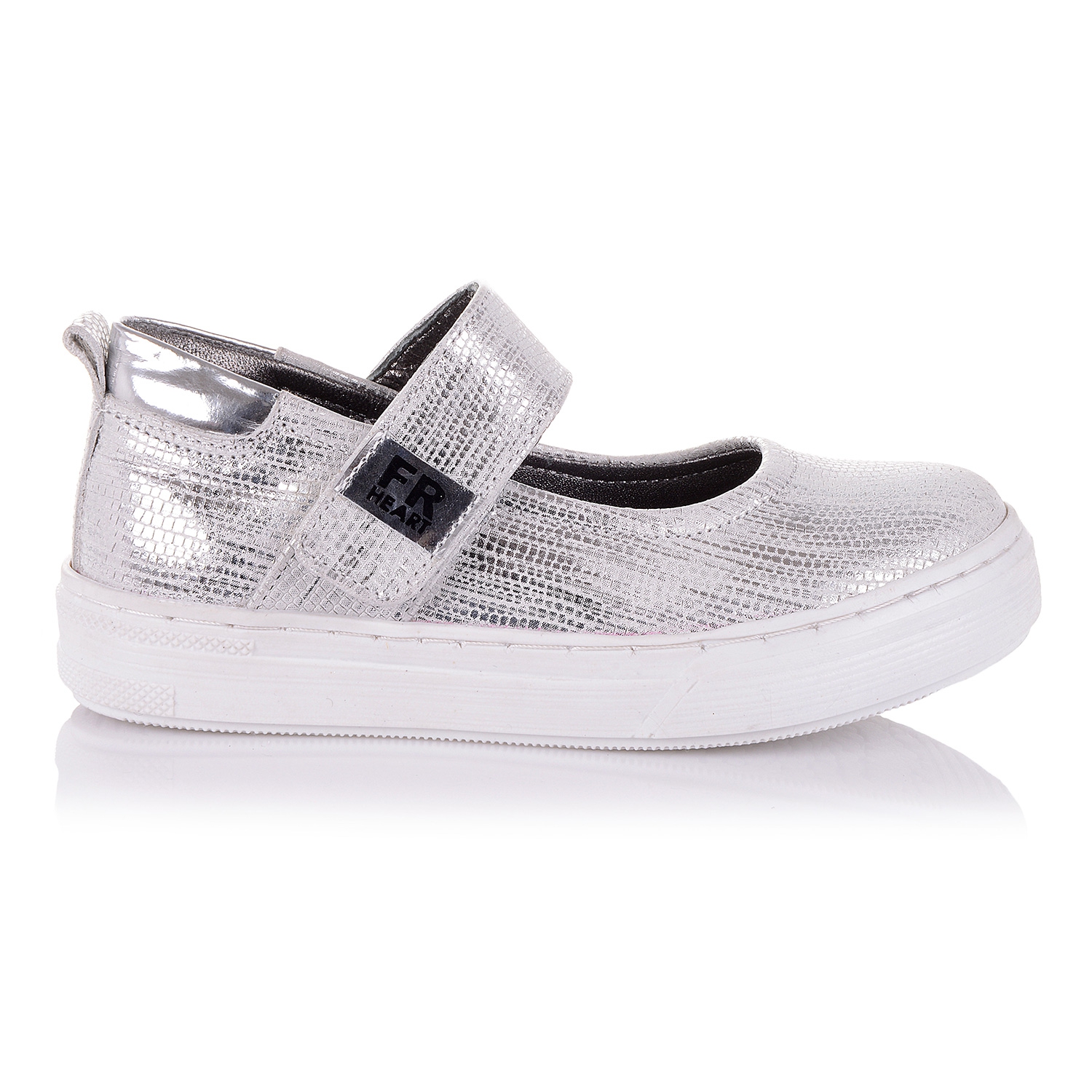 Супер-стильные туфли на модной подошве- оригинальный симбиоз удобства и красоты! Туфли выполнены из натуральной кожи с тисненным принтом серебристого цвета, подойдут практически под любой гардероб. Нога фиксируется липучкой. Внутренняя мягкая кожаная стелька "SOFT EFFECT" с супинатором и твердый задник обеспечивают физиологически правильное положение ножки. Подошва износостойкая из термокаучука, обеспечивает амортизацию, комфортную походку и хорошее сцепление с твердой поверхностью. Обувь такого качества и дизайна приковывает взгляды!