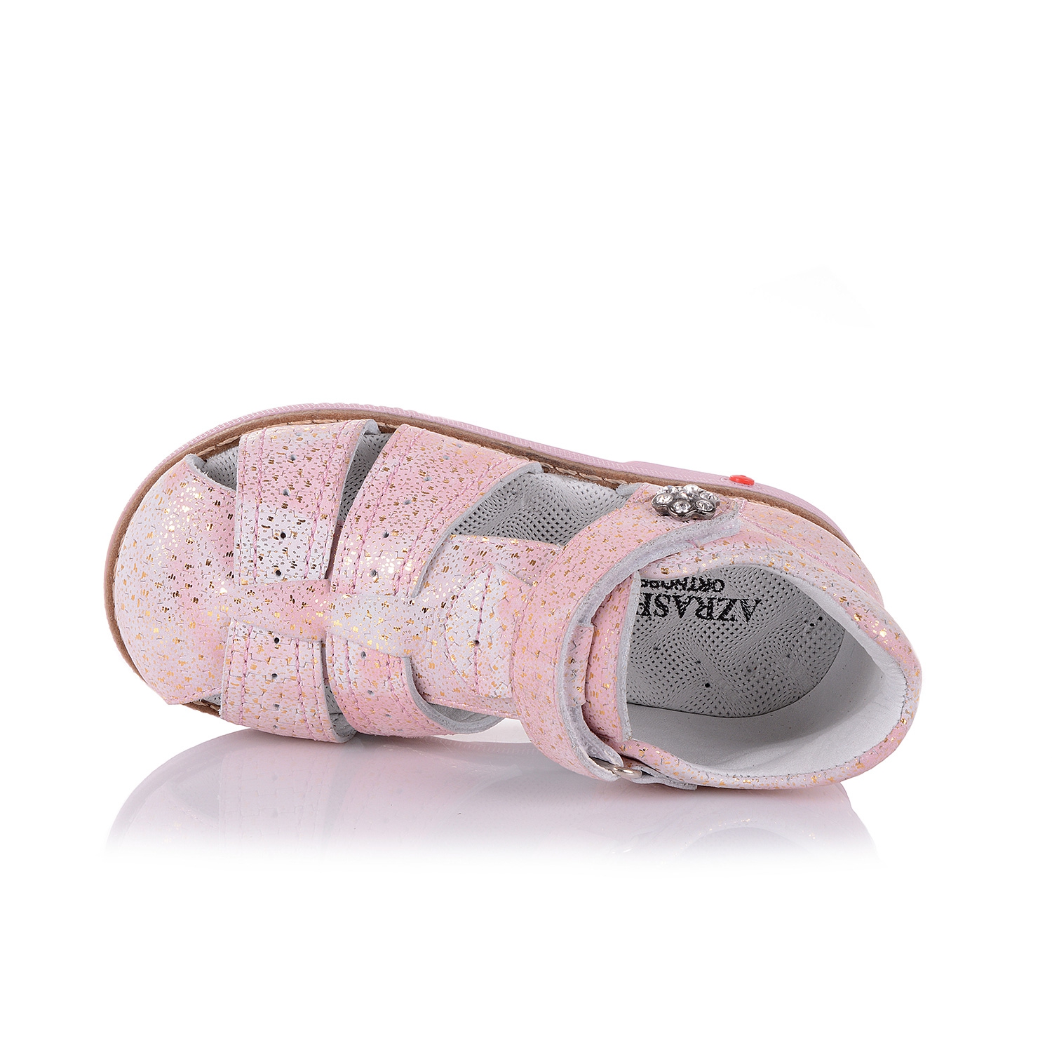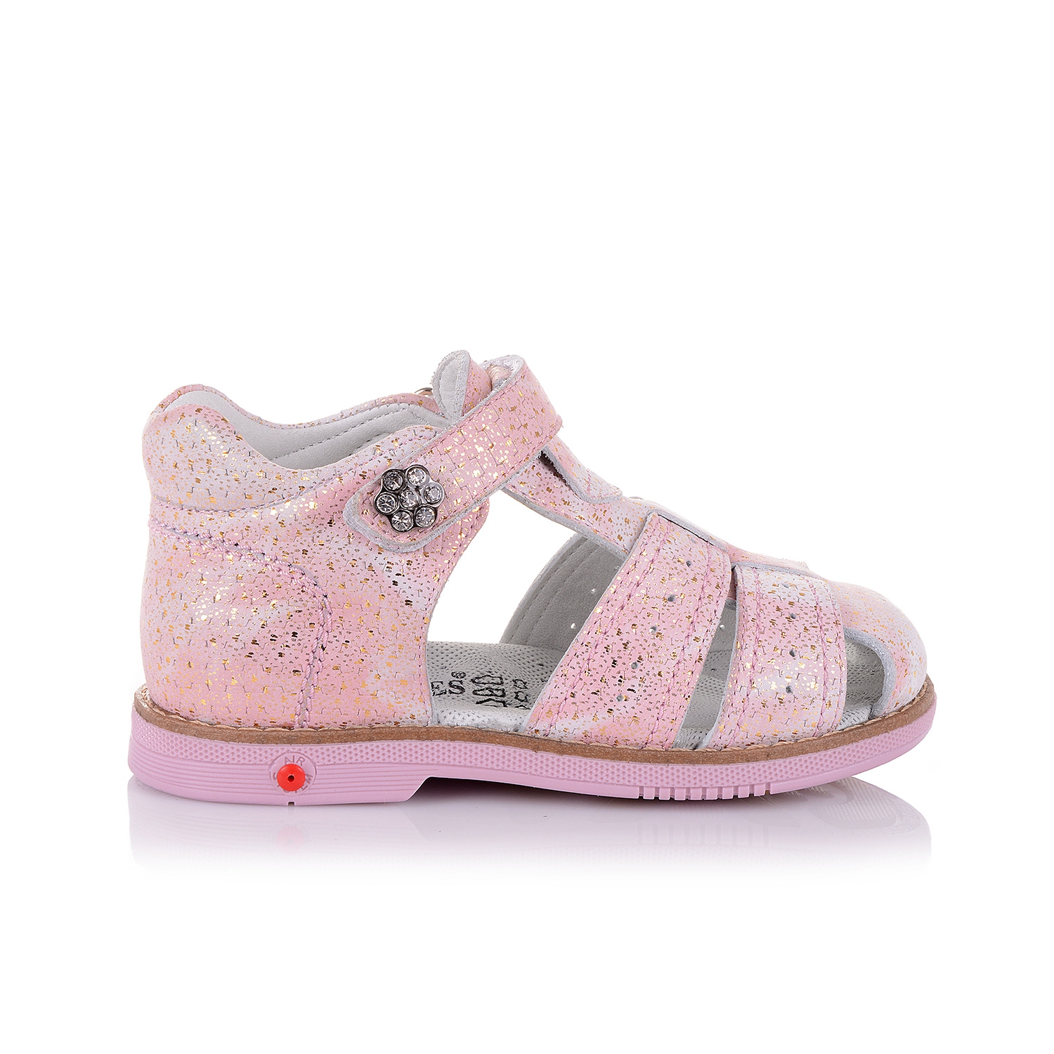Закрытые ортопедические босоножки из натурального нубука - практичная и ультрамодная модель. Удобная фиксация липучкой позволяет подобрать босоножки на ногу разной полноты и высоты свода. Кожаная стелька с супинатором и твердый задник обеспечивают физиологически правильное положение ножки. Подошва, износостойкая из термокаучука, со скошенным каблуком Томаса и антишоковыми вставками, которые снимают ударную нагрузку на пяточную кость. В обуви такого качества ваш ребенок будет чувствовать себя уверенно и комфортно!