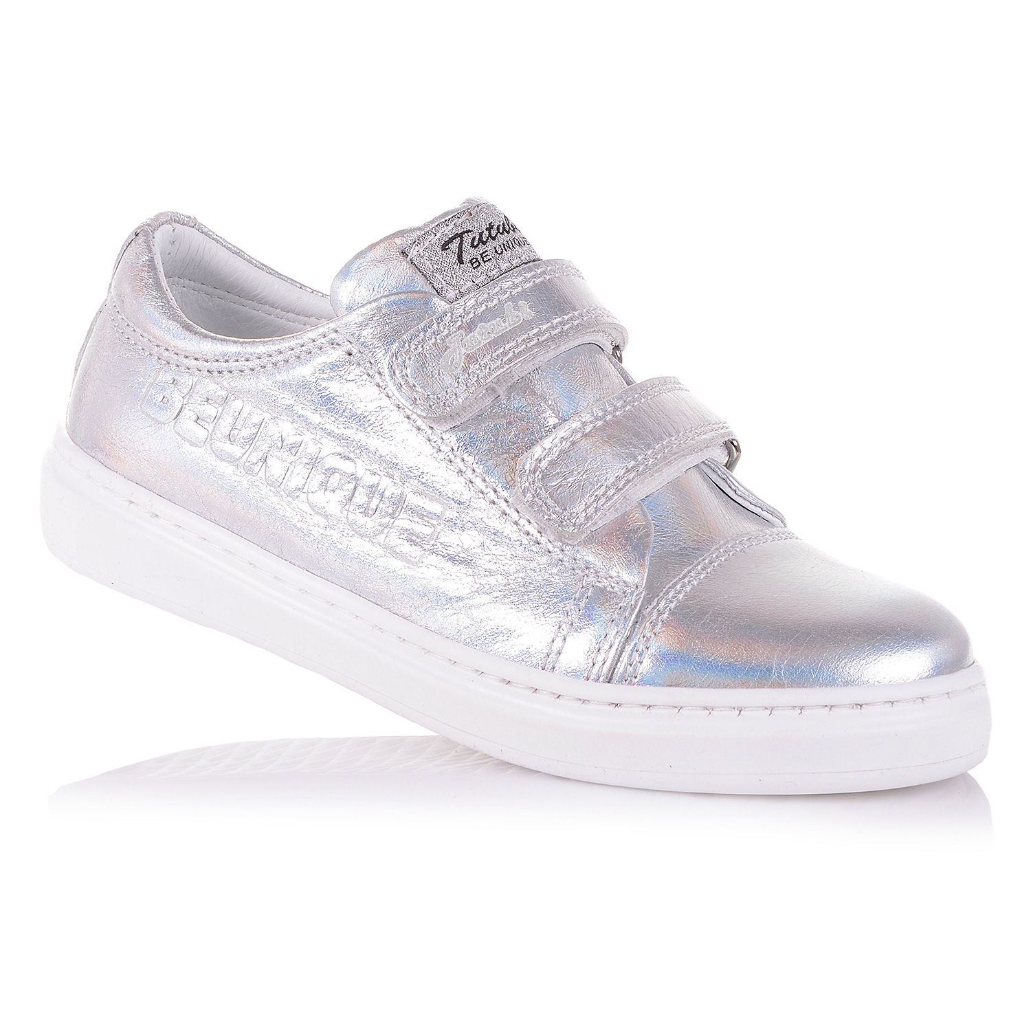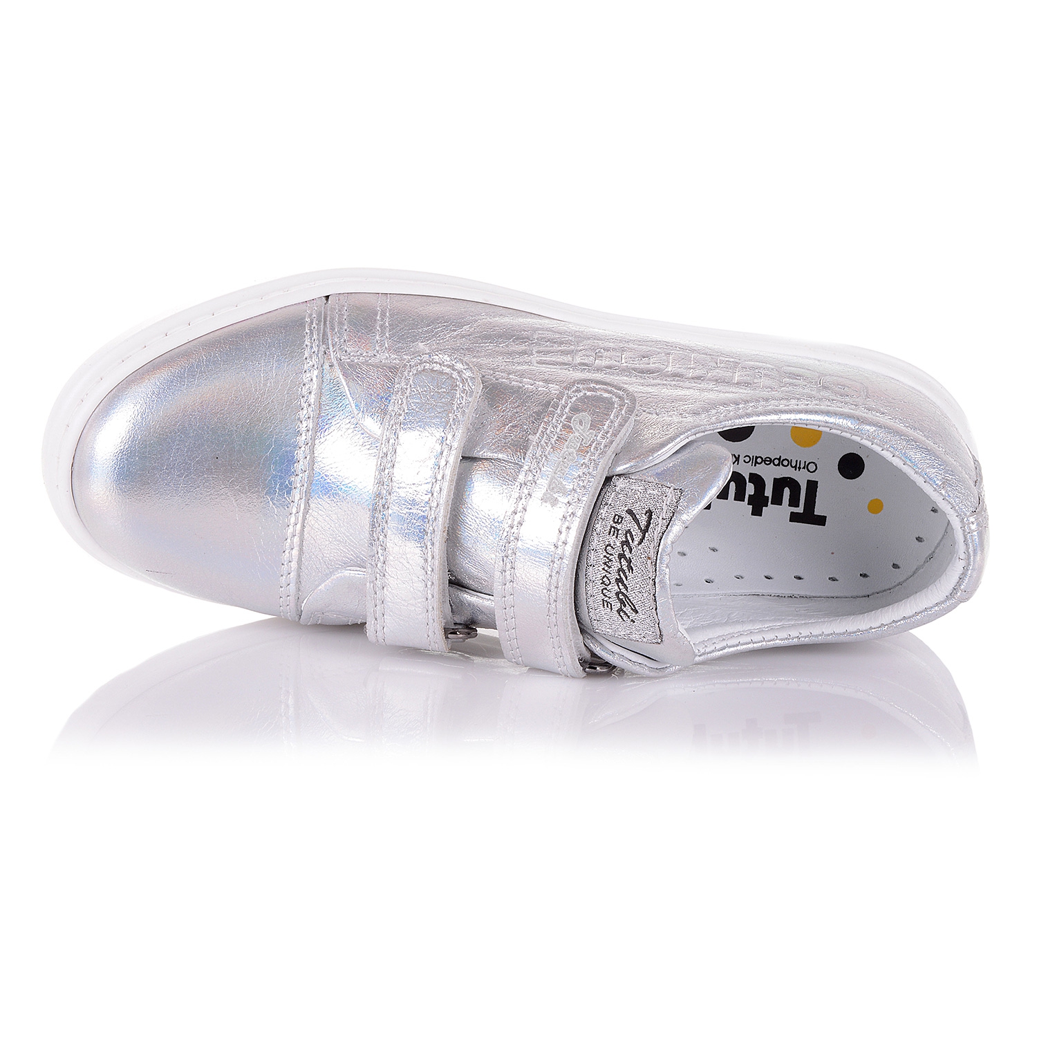 Супер-стильные слипоны, великолепный образ классического стиля с вплетением модных тенденций. Обувь выполнена из натуральной кожи серебристого цвета с радужным переливом. Нога фиксируется двумя липучками. Кожаная анатомическая стелька с твердым супинатором и мягкой прослойкой в пяточной части, поддержит свод стопы и поспособствует здоровому развитию мышц и мягкой походке. О фиксации щиколотки позаботится жесткий задник. Подошва плотная из термокаучука. Позвольте вашему ребенку роскошь носить качественную ортопедическую обувь, привлекая восторженные взгляды окружающих.