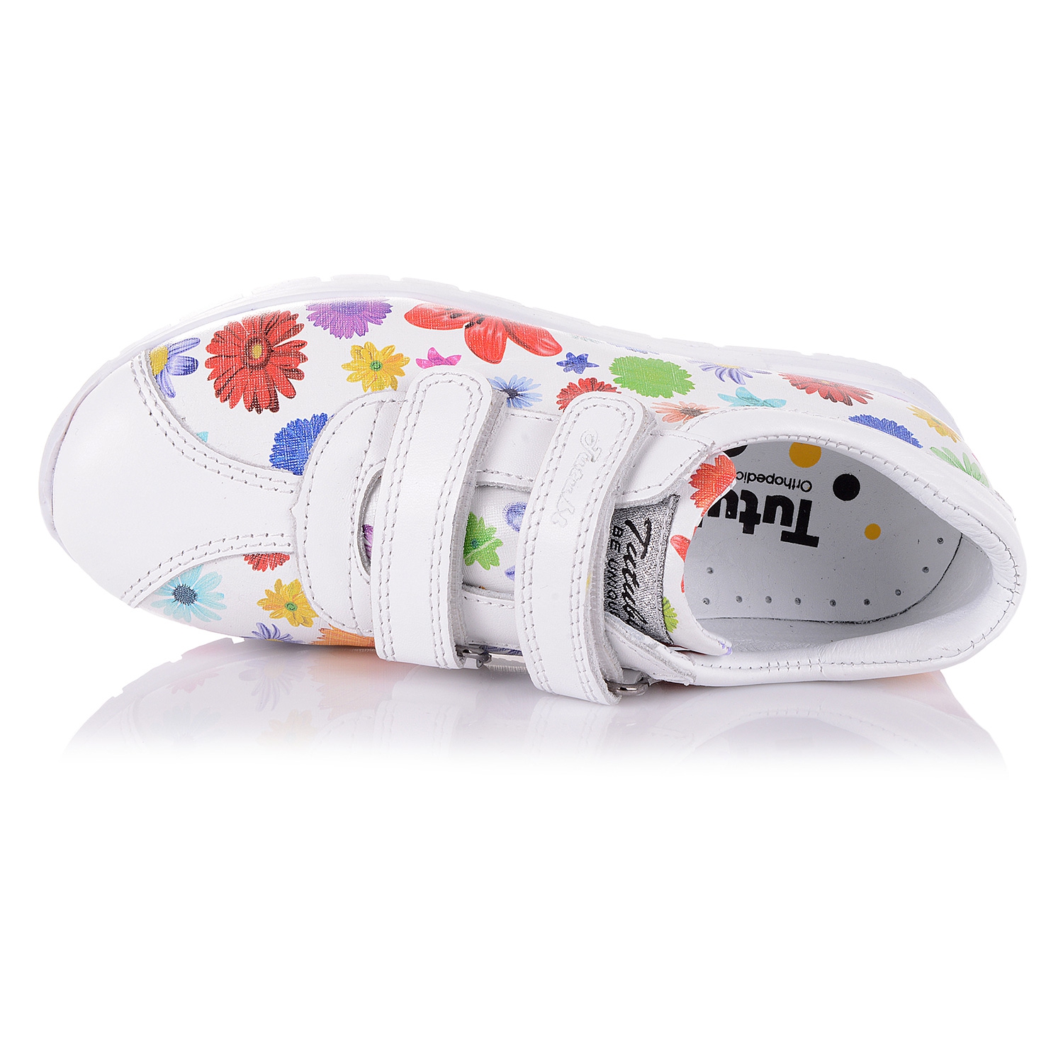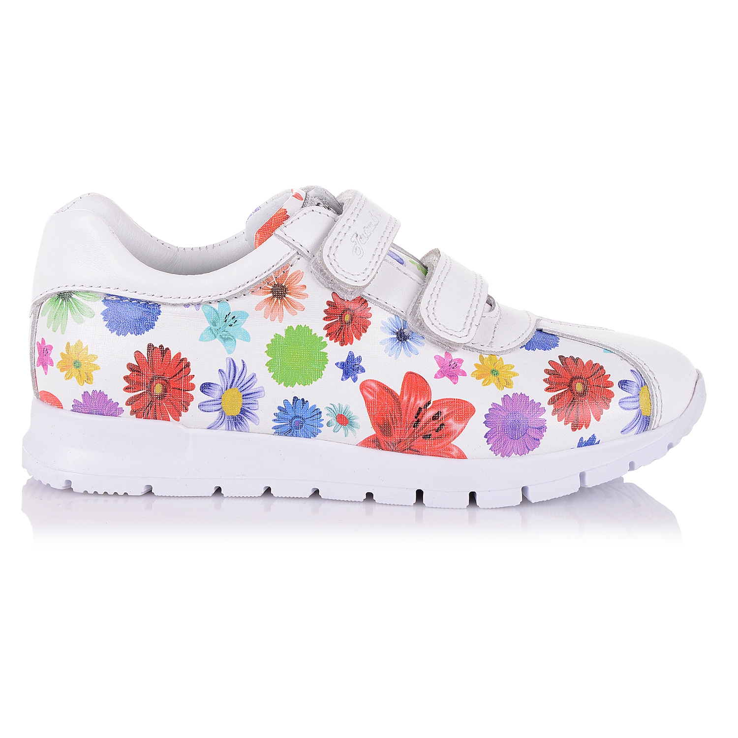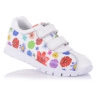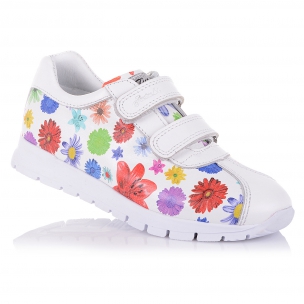Яркие кроссовки на ребристой подошве из натуральной кожи белого цвета с цветочным принтом. Внутренняя мягкая кожаная стелька "SOFT EFFECT" с супинатором и твердый задник обеспечивают физиологически правильное положение ноги, а удобная фиксация на две липучки позволит выбрать обувь на ногу разной полноты и высоты свода. Подошва, износостойкая из термокаучука- мягкая, при ходьбе амортизирует. Шикарный выбор как для спорта, так и для ежедневных прогулок. Ваш ребенок останется доволен.