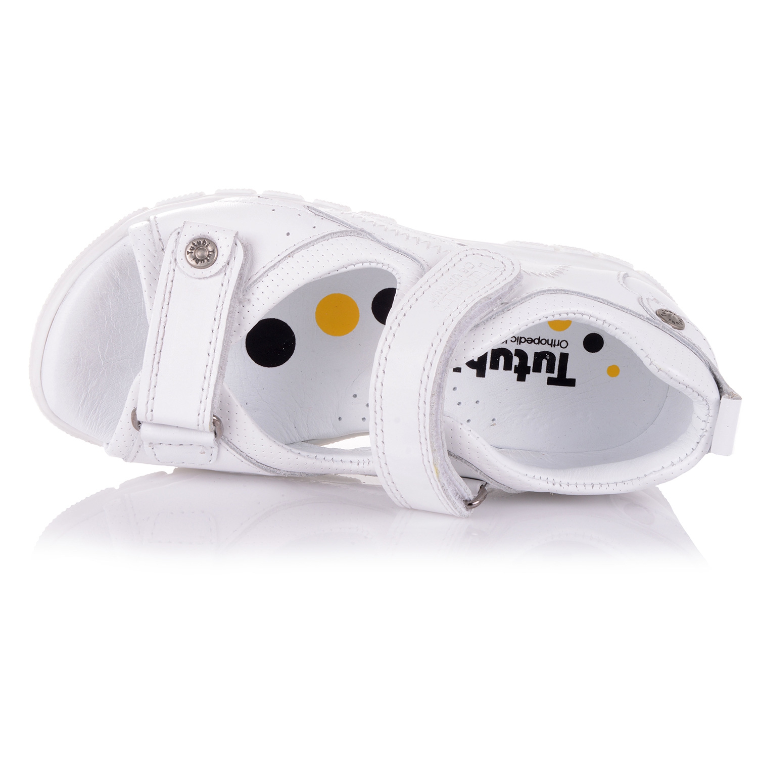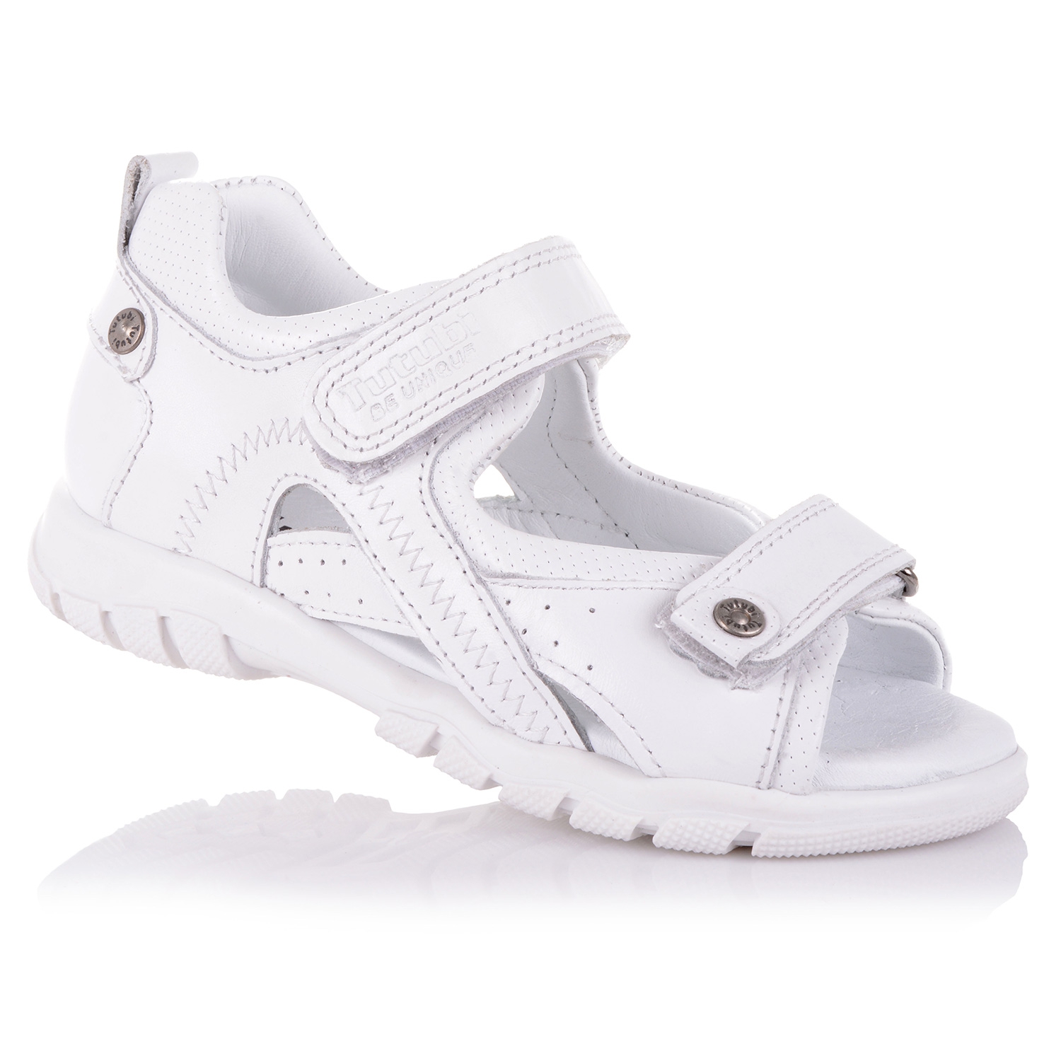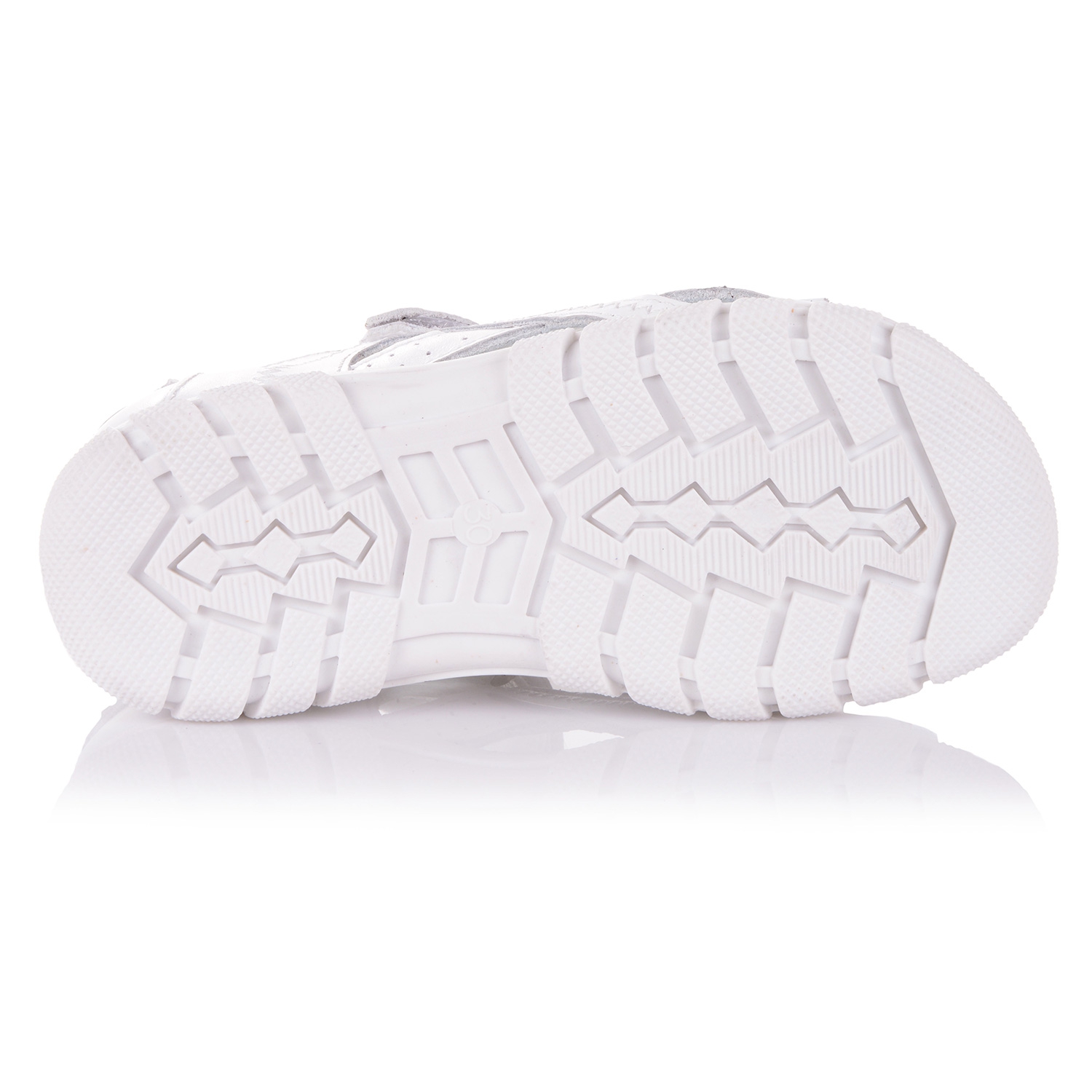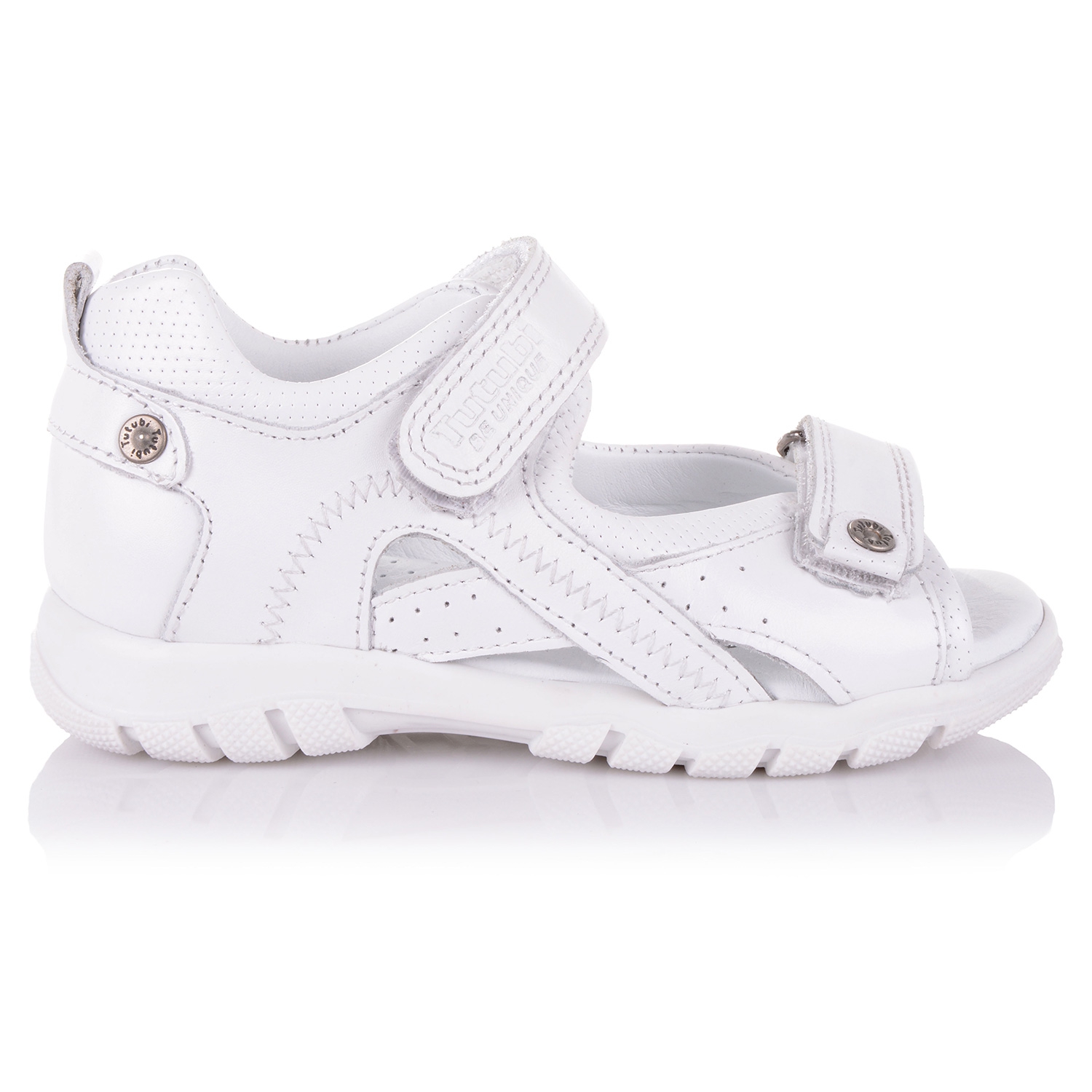 Супер-модные босоножки белого цвета- ультрамодная модель этого сезона. Внутренняя и внешняя часть изделия выполнена из натуральной кожи. Удобная фиксация на две липучки позволяет подобрать обувь на ногу разной полноты и высоты свода. Стелька с супинатором и твердый задник обеспечивают физиологически правильное положение ножки. Легкая анатомическая износостойкая подошва из термокаучука с антишоковыми вставками, которые снимают ударную нагрузку на пяточную кость. Такая модель идеально подойдет для ежедневных прогулок.