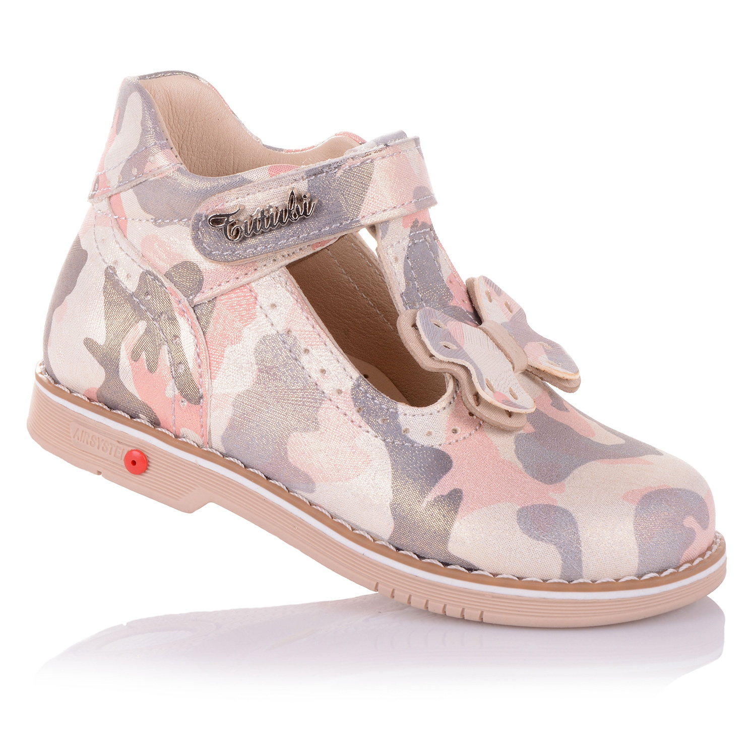 Шикарные ортопедические туфельки для девочки из натурального нубука с тиснененным принтом. Удобная фиксация на липучку позволяет подобрать обувь на ногу разной полноты и высоты свода. Дышащая стелька с супинатором и твердый задник обеспечивают физиологически правильное положение ножки. Подошва, износостойкая из термокаучука, со скошенным каблуком Томаса и антишоковыми вставками, которые снимают ударную нагрузку на пяточную кость. Одевая такую пару обуви, Ваш ребенок будет чувствовать себя комфортно и эксклюзивно.