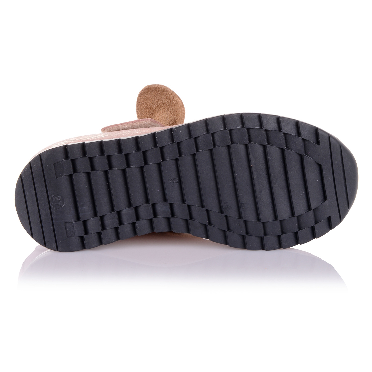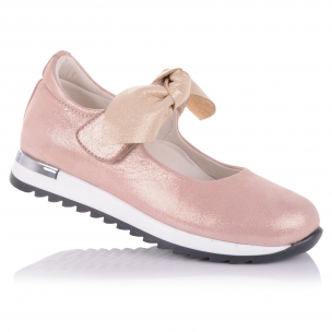 Супер-стильные туфли на кроссовочной подошве- оригинальный симбиоз удобства и красоты! Туфли выполнены из натурального нубука пудрово-розового цвета с большим золотистым бантом, подойдут практически под любой гардероб. Нога фиксируется липучкой. Внутренняя мягкая кожаная стелька "SOFT EFFECT" с супинатором и твердый задник обеспечивают физиологически правильное положение ножки. Подошва износостойкая из термокаучука, обеспечивает амортизацию, комфортную походку и хорошее сцепление с твердой поверхностью. Обувь такого качества и дизайна приковывает взгляды!