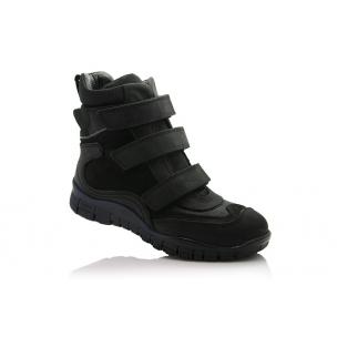 Зимние ботинки Tiflani черного цвета, на 3-х липучках. Снаружи кожаные, внутри на цигейке. Высокая твердая пятка. Высота ботинка от 16 см - 17,5см ( в зависимости от размера).