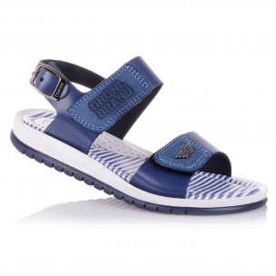 Супер-модные босоножки из мягкой кожи синего цвета. Удобная фиксация на ремешок и две липучки поможет подобрать обувь на ногу разной полноты и высоты свода. Кожаная стелька с супинатором обеспечивают физиологически правильное положение ножки. Анатомическая подошва, износостойкая из термокаучука, с имитацией пробкового материала. В такой паре обуви ребёнок будет себя чувствовать легко и непринуждённо.