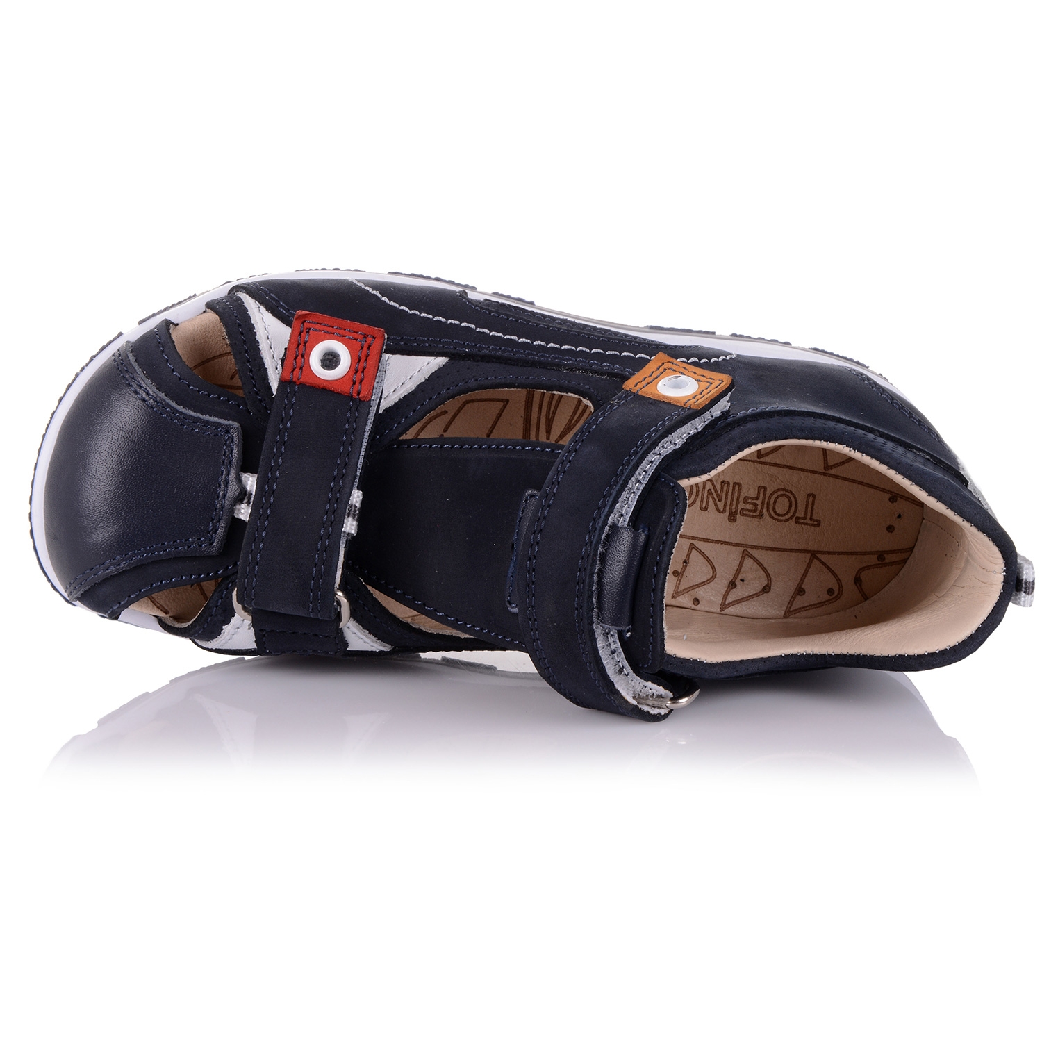 Закрытые ортопедические босоножки темно-синего цвета практичная и ультрамодная модель. Удобная фиксация двумя липучками позволяет подобрать босоножки на ногу разной полноты и высоты свода. Кожаная стелька с супинатором и твердый задник обеспечивают физиологически правильное положение ножки. Анатомическая износостойкая подошва из термокаучука имеет ребристую поверхность которая снимает ударную нагрузку на пяточную кость. В обуви такого качества ваш ребенок будет чувствовать себя уверенно и комфортно!
