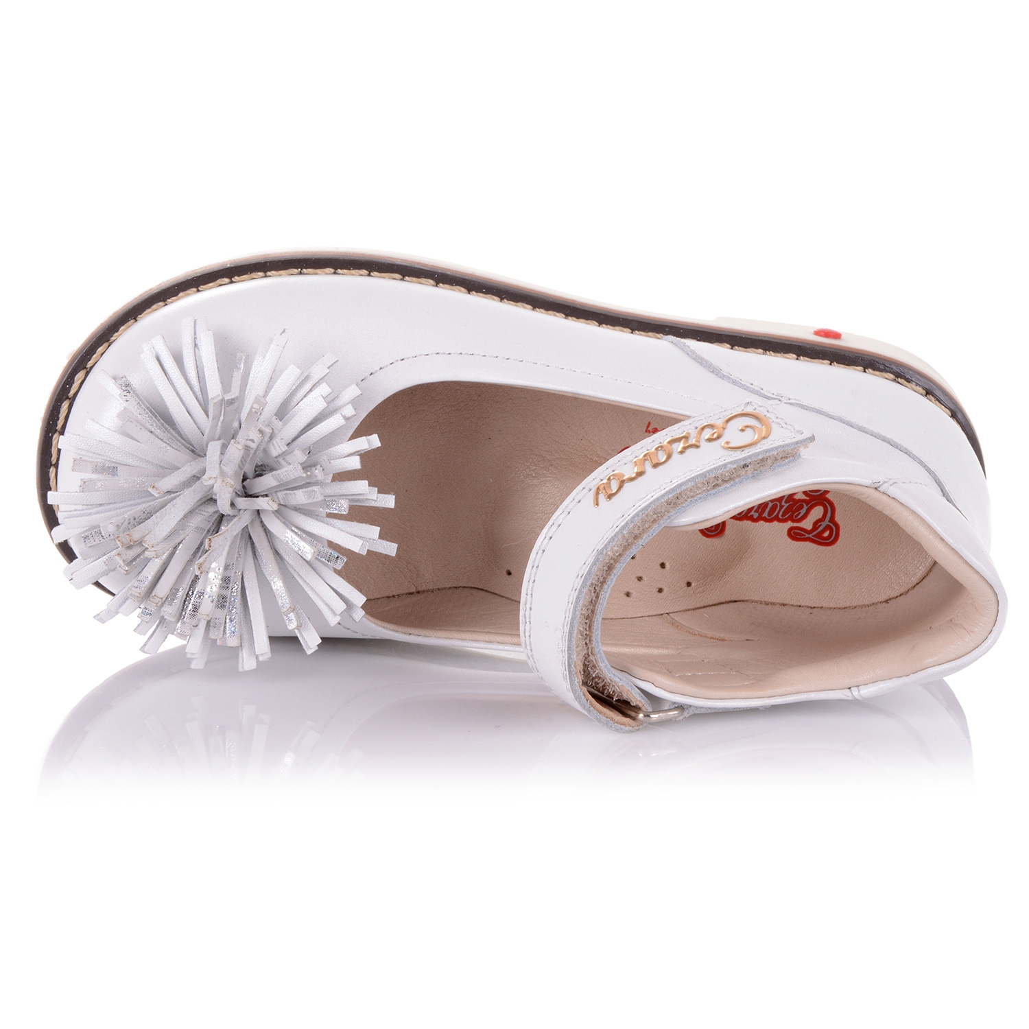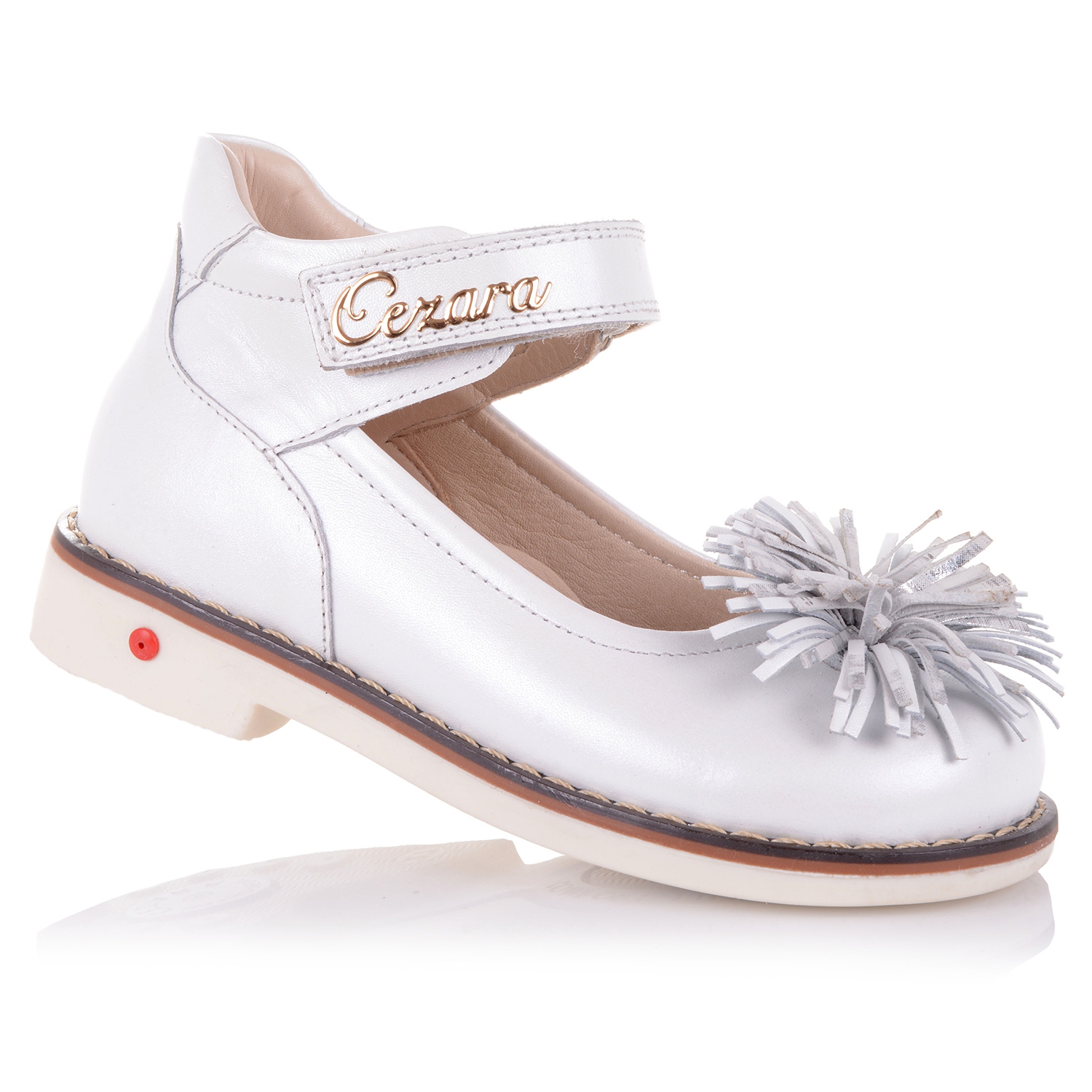 Шикарные ортопедические туфли турецкой фирмы Цезара из натуральной кожи белого цвета с оригинальным цветком лапша станут идеальным дополнением к образу вашей модницы! Удобная фиксация на липучку позволяет подобрать туфли на ногу разной полноты и высоты свода. Каблук Томаса с удлиненным внутренним краем обеспечит правильную постановку ноги. Анатомическая кожаная стелька с супинатором поддержит свод стопы и поспособствует здоровому развитию мышц. О фиксации голенища и щиколотки позаботятся укрепленные берцы и жесткий задник. А хрупкие суставы будут защищены от чрезмерных нагрузок благодаря амортизационной вставке. Одевая пару обуви такого качества, Ваш ребенок будет чувствовать себя комфортно и эксклюзивно. Соответствие размера: большемерят (возьмите на размер меньше).