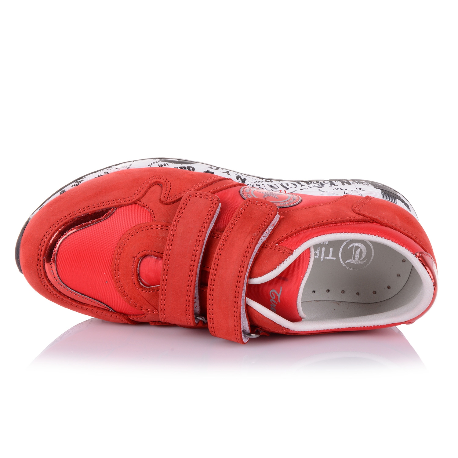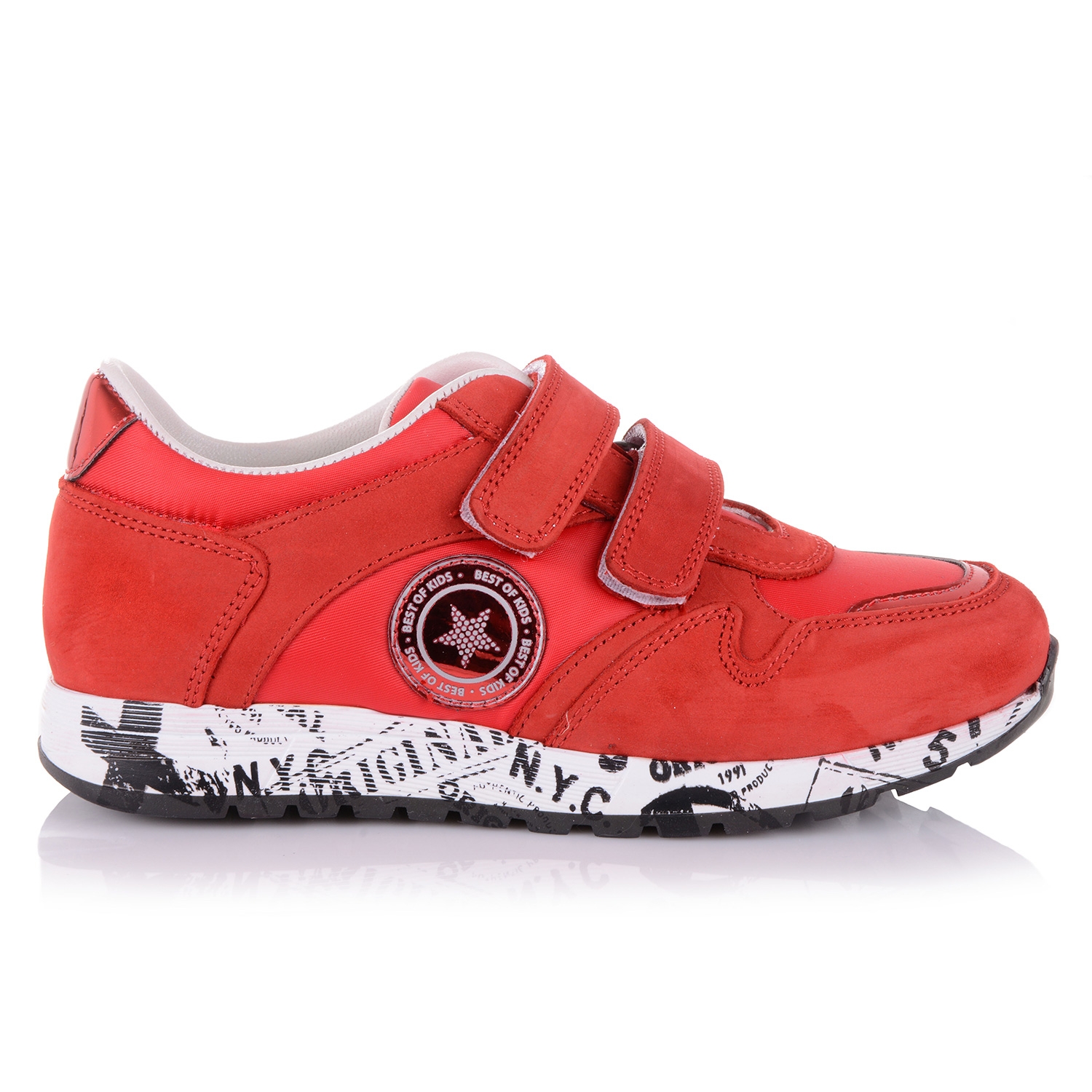 Яркие кроссовки из натурального нубука и текстиля красного цвета. Внутренняя мягкая кожаная стелька "SOFT EFFECT" с супинатором и твердый задник обеспечивают физиологически правильное положение ноги, а удобная фиксация на две липучки позволит выбрать обувь на ногу разной полноты и высоты свода. Подошва, износостойкая из термокаучука- мягкая, при ходьбе амортизирует. Шикарный выбор как для спорта, так и для ежедневных прогулок. Ваш ребенок останется доволен.